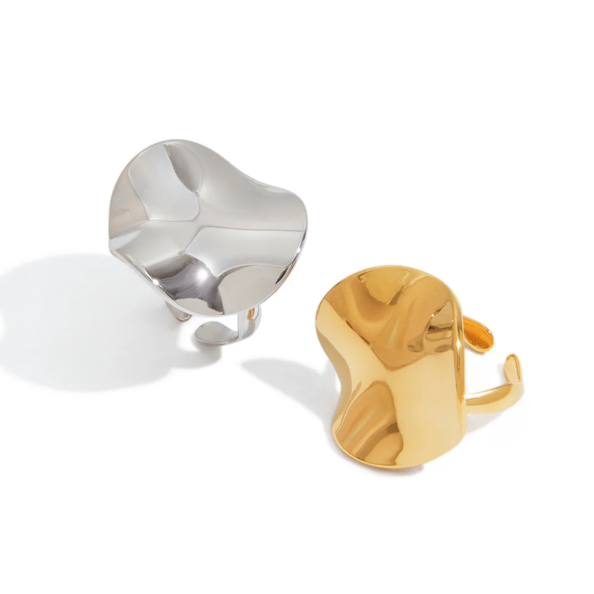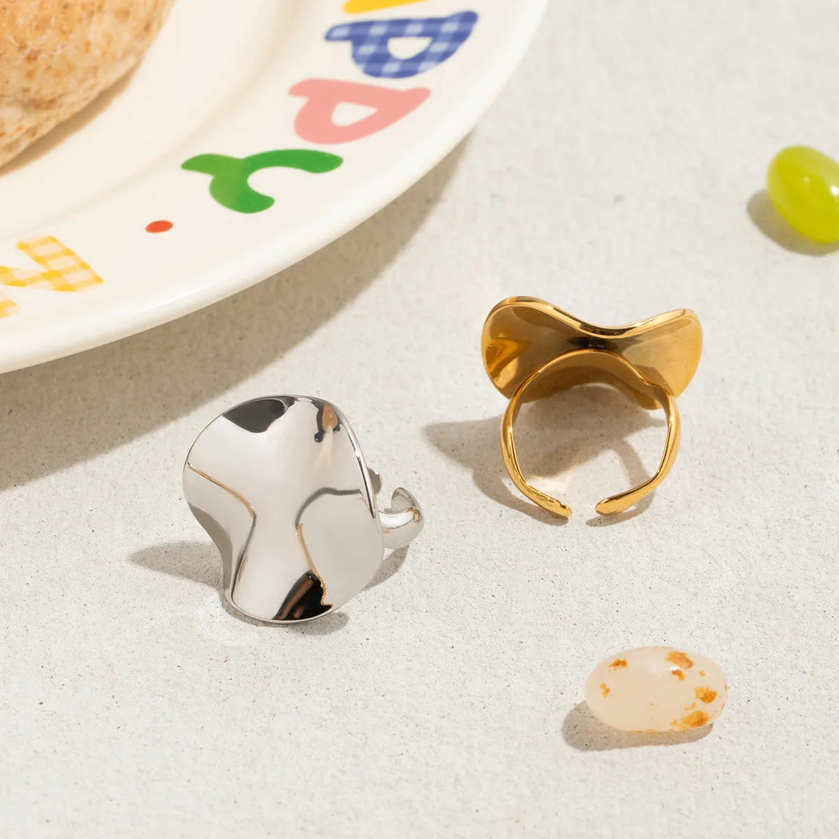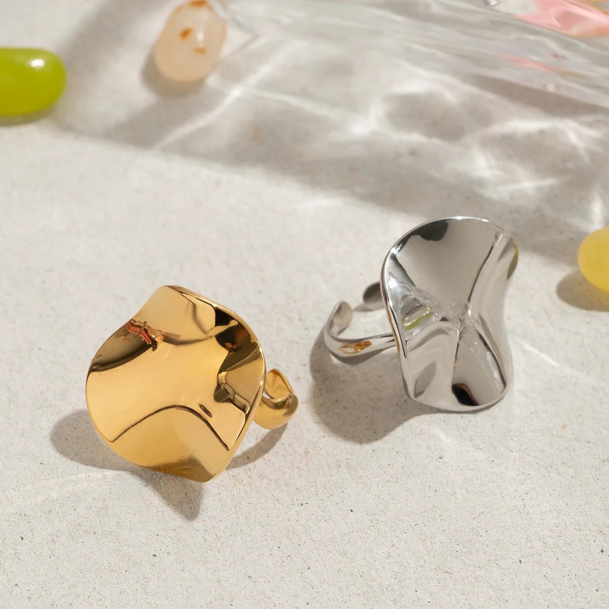 MW Women's European and American Style Waterproof 18K Gold-Plated Stainless Steel Geometric Crinkled Minimalist Open Ring