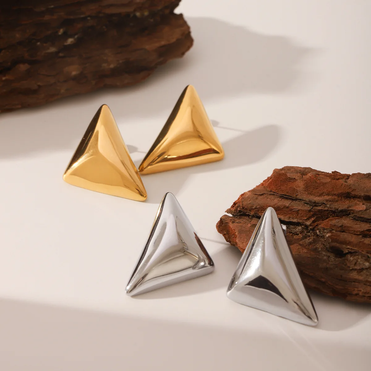 MW Clean Fit Waterproof 18K Gold Small Earrings Stainless Steel Chunky Jewelry Smooth Triangle Shaped Earring Women