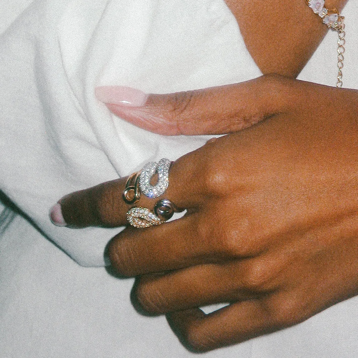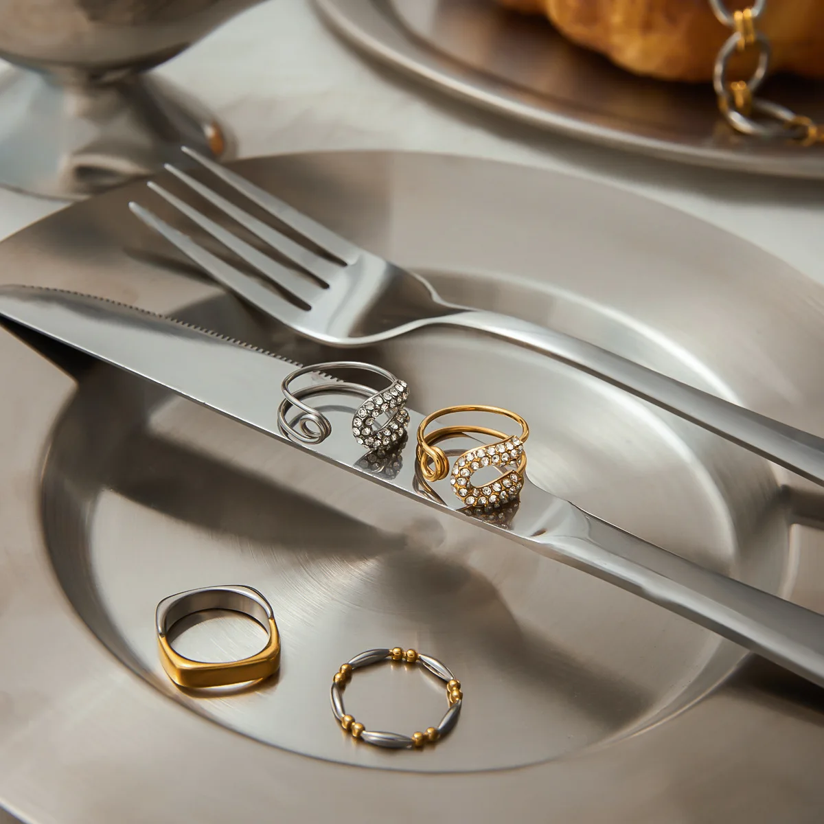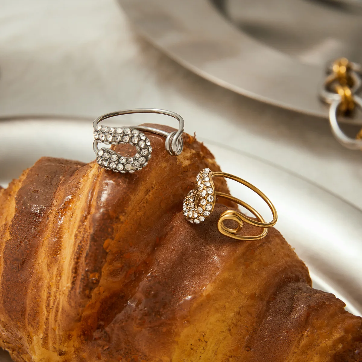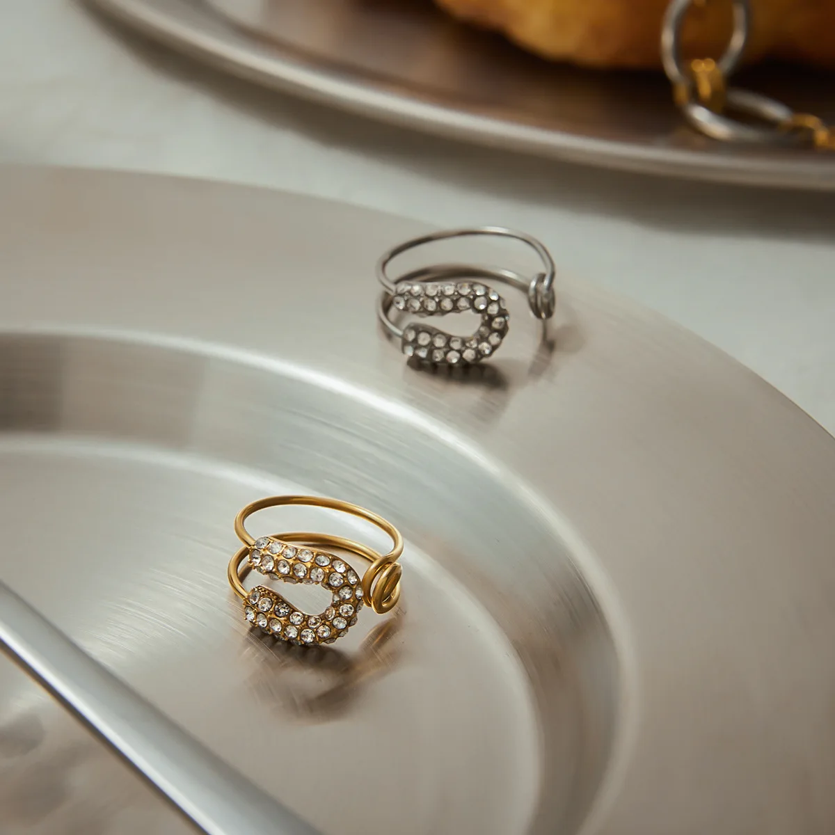 MW Women's 18K Gold-Plated Stainless Steel Paperclip-Designed Rhinestones 316l Stainless Steel 18k Adjustable Ring