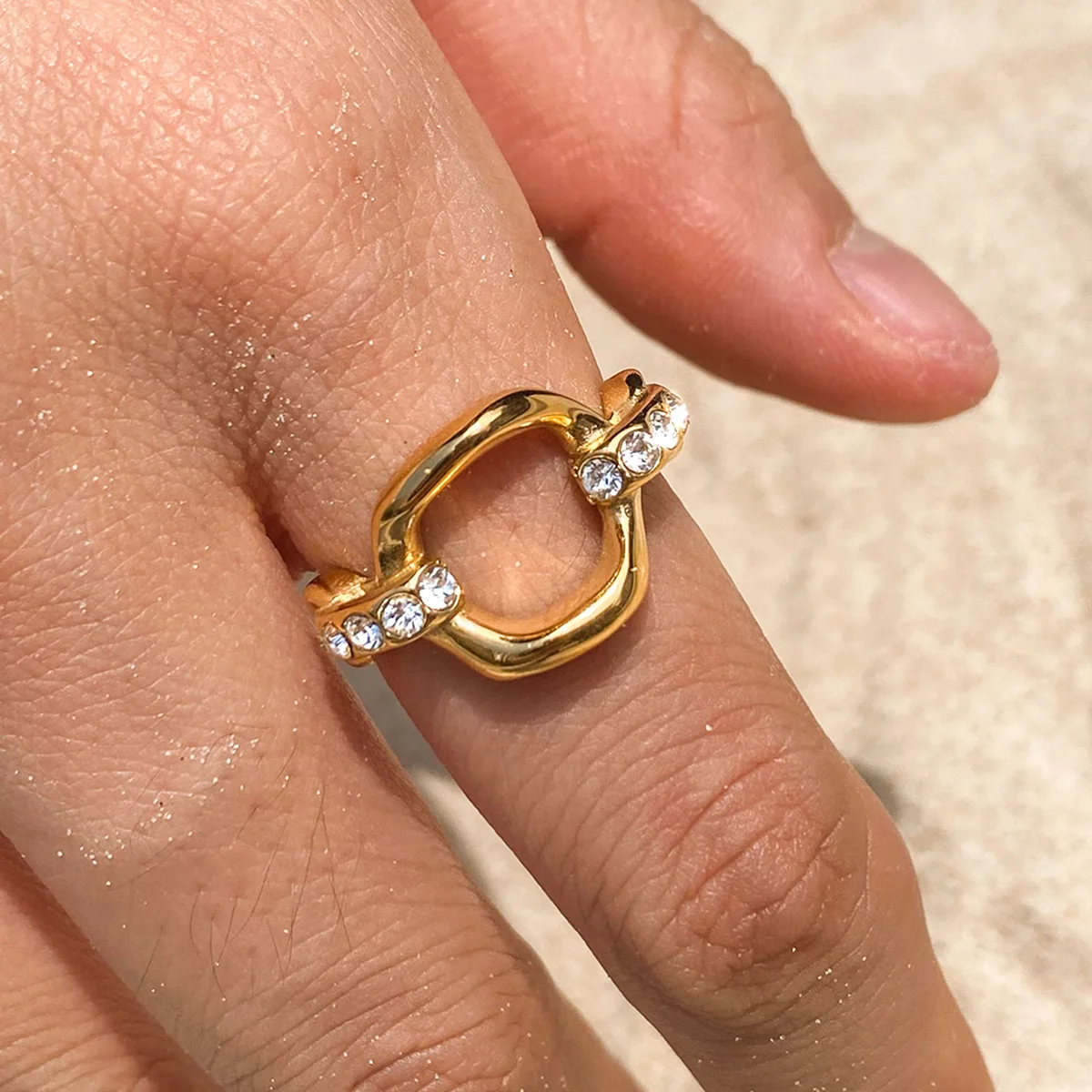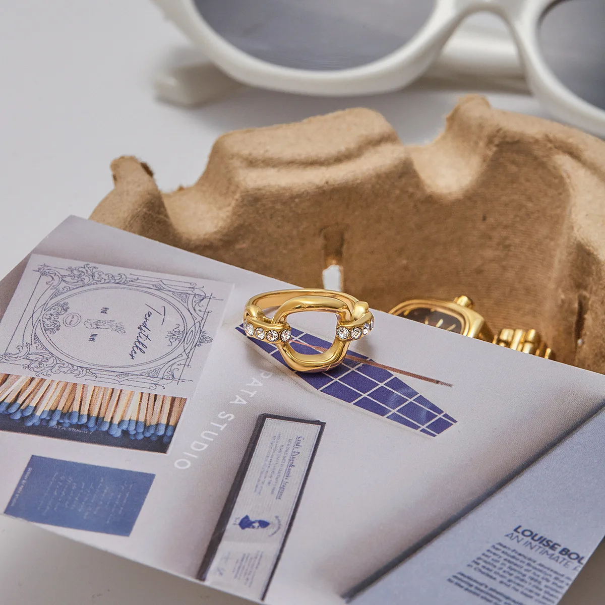 MW Women's New Style Fashion Classic Minimalist 18K Gold-plated Crystal-embedded Ring, Non-fading and Suitable for Daily Wear