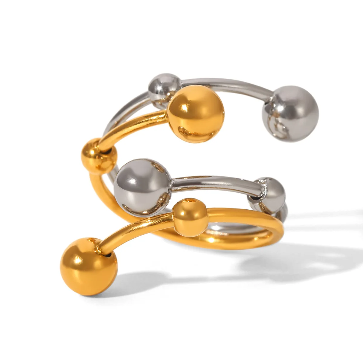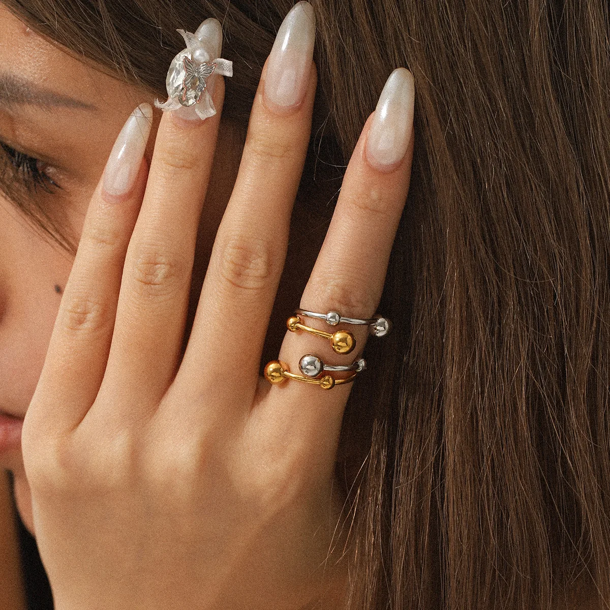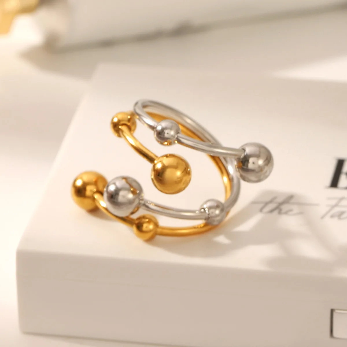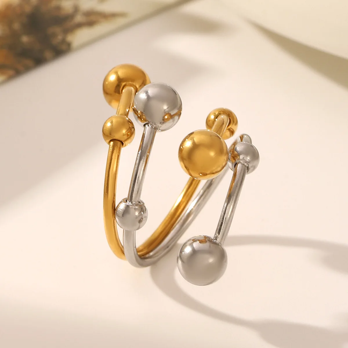 MW Fashionable Ladies 18k Gold Stainless Steel Gold and Silver Color Matching Personalized Double Layer Adjustable Rings
