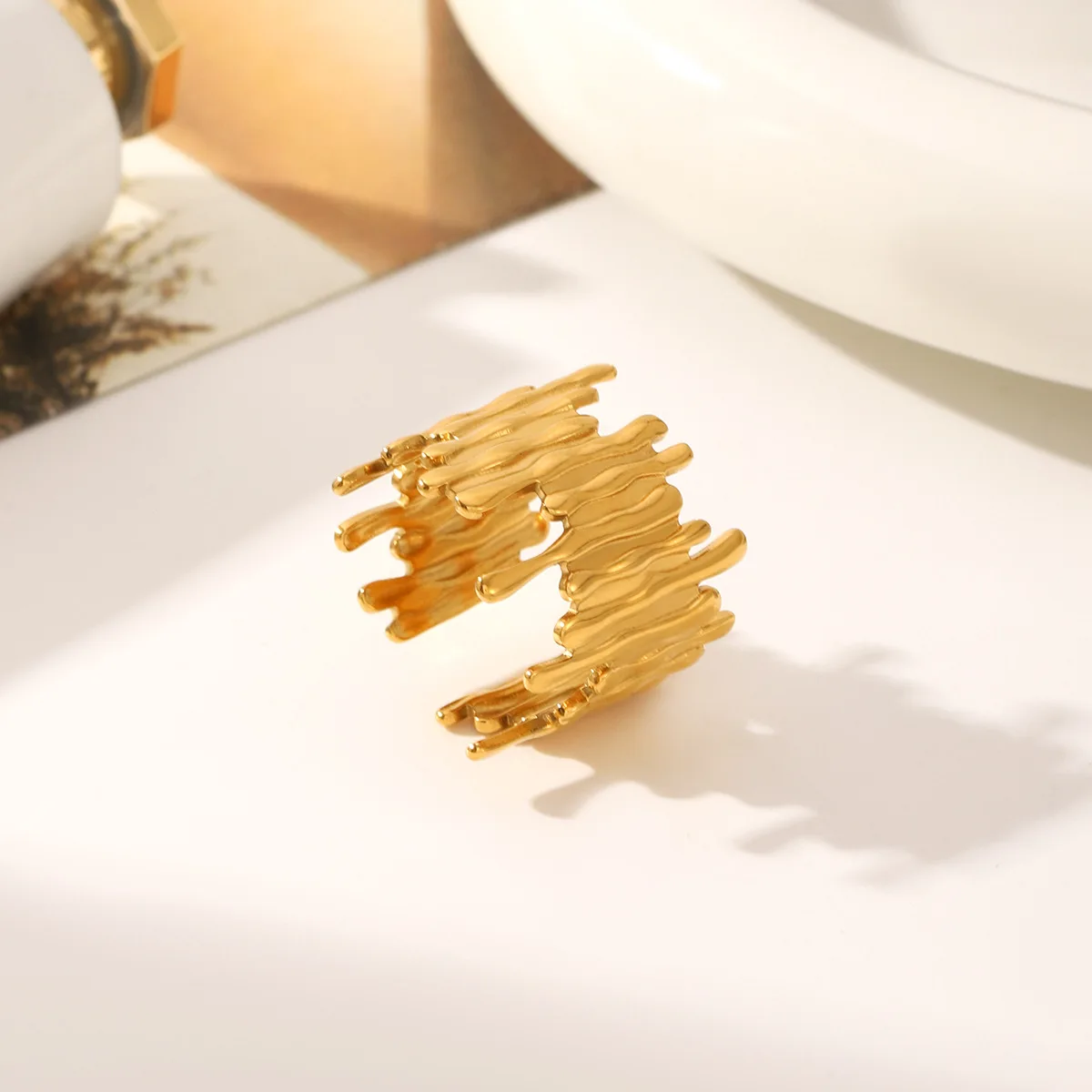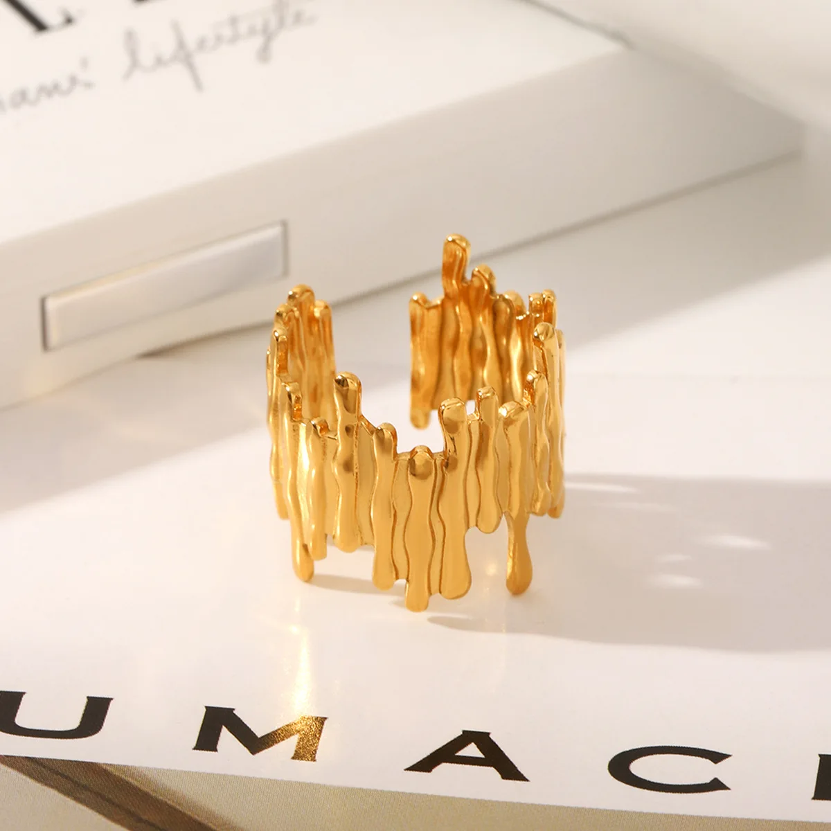 MW Textured Stainless Steel Irregular Open Ring Fine Jewelry Rings 18K Gold Plated Vintage Statement Open Rings for Women