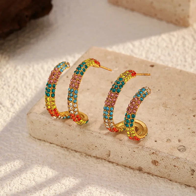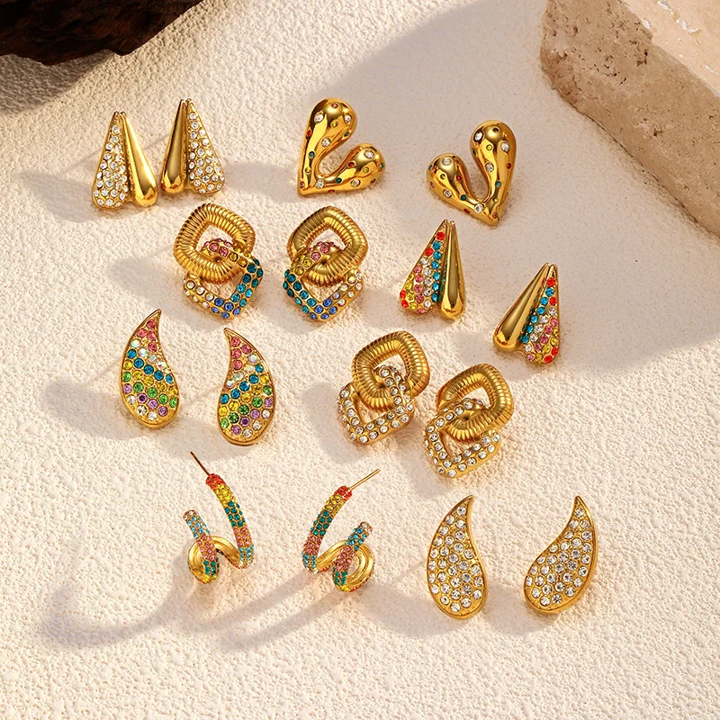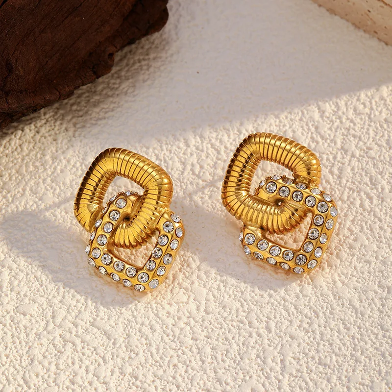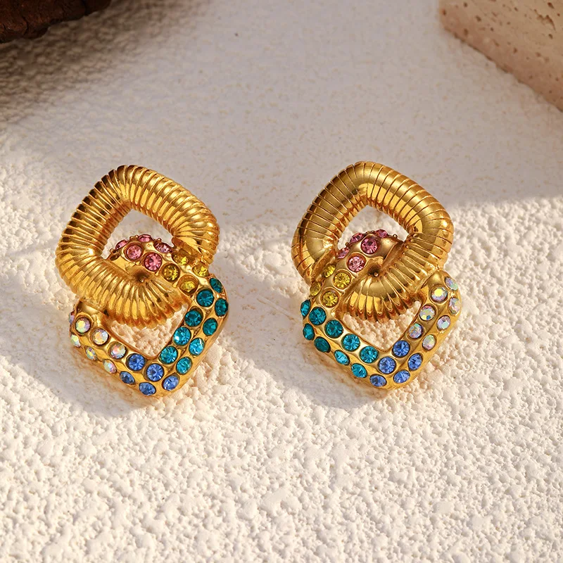 MW Vintage Zircon Geometric Hypoallergenic Trendy Stainless Steel 18K Gold Plated Fashion Jewelry Earrings Women Wholesale