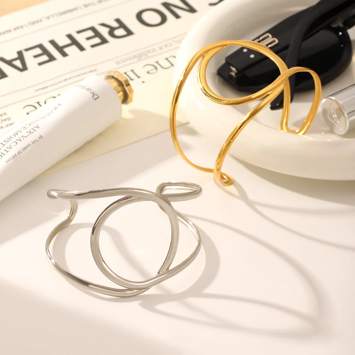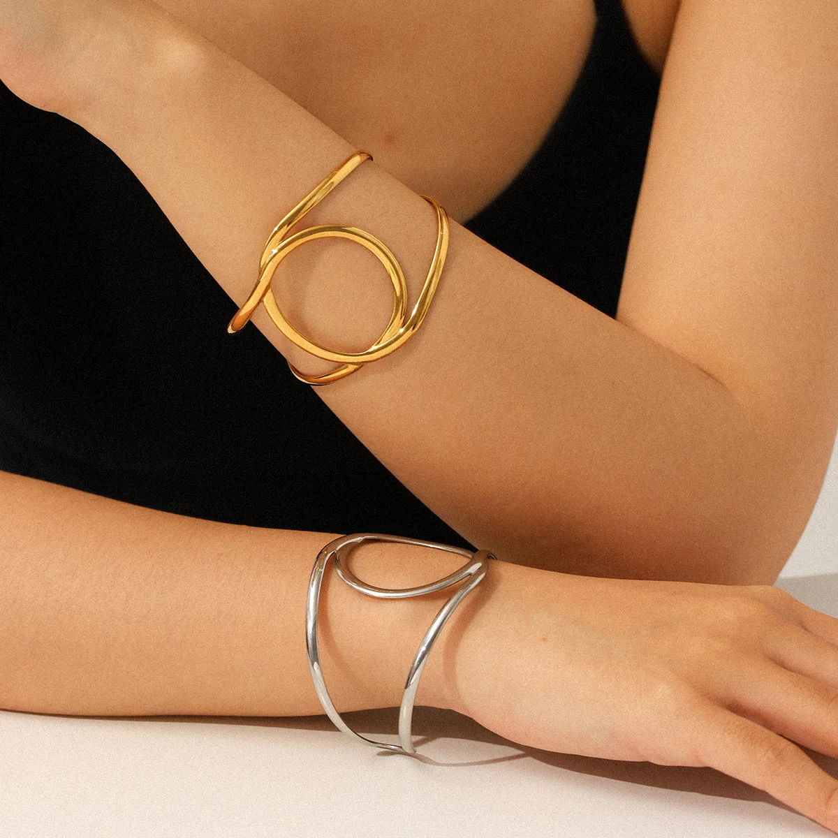 MW New Arrival 18k Gold Plated Open Bracelets Bangles PVD Waterproof Minimalist Geometric Hollow Bracelet Bangle Stainless Steel