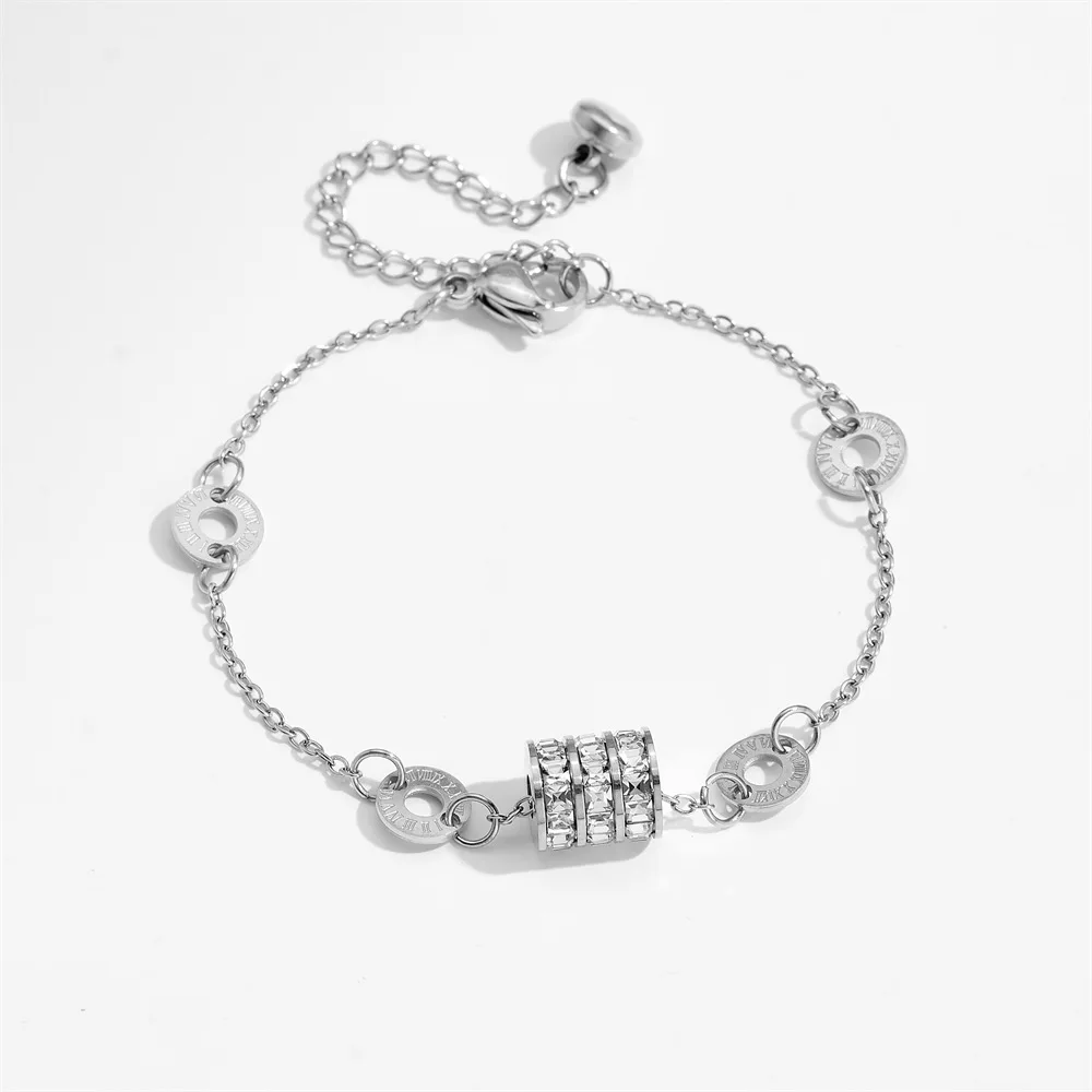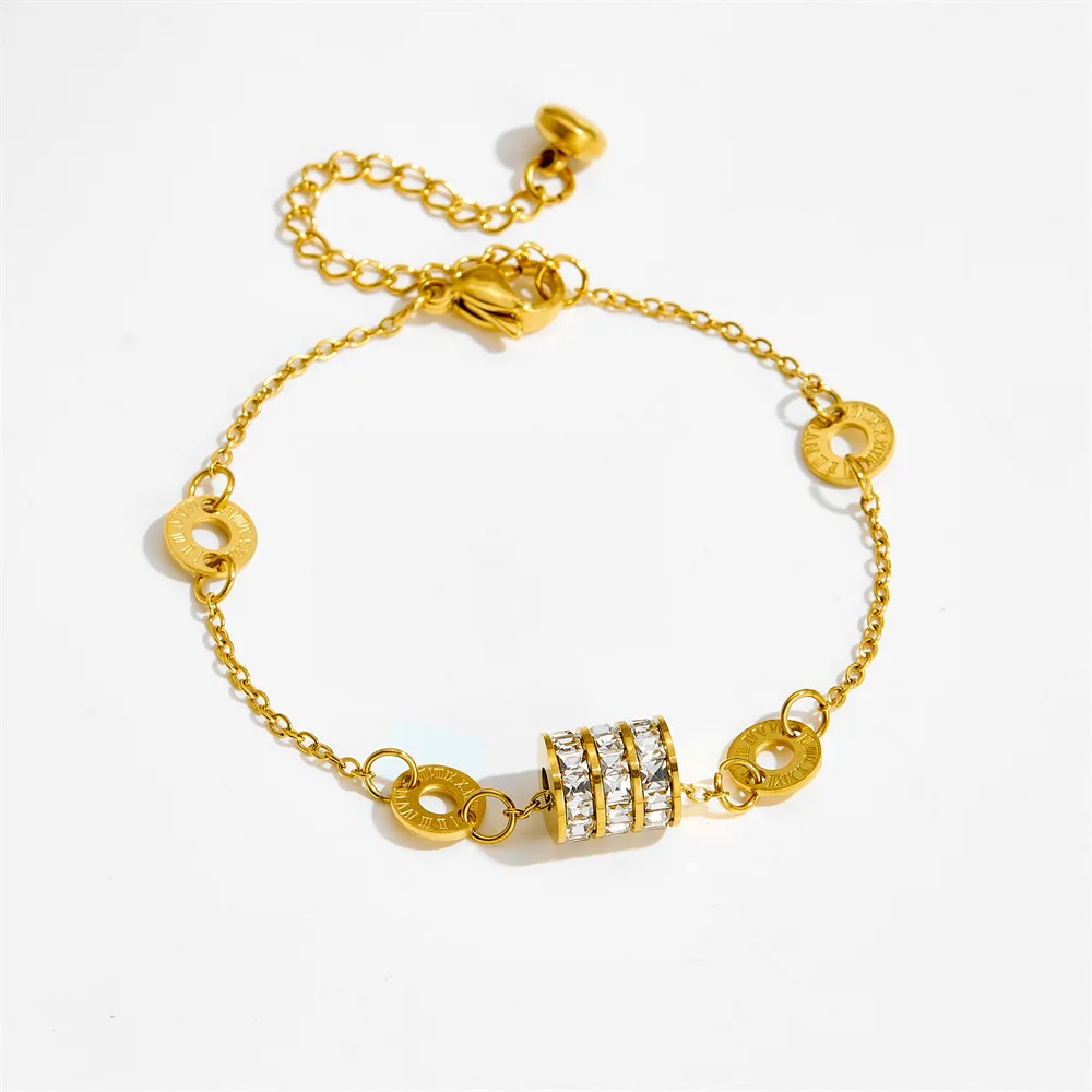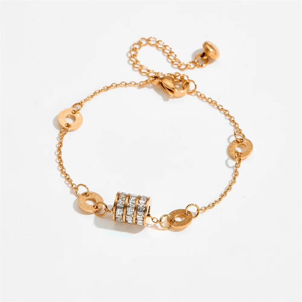 MW Women's Stainless Steel Bracelet Gold Rose Roman Numerals Durable Zircon Trendy Small Waist Fashion Chain Great for Gift