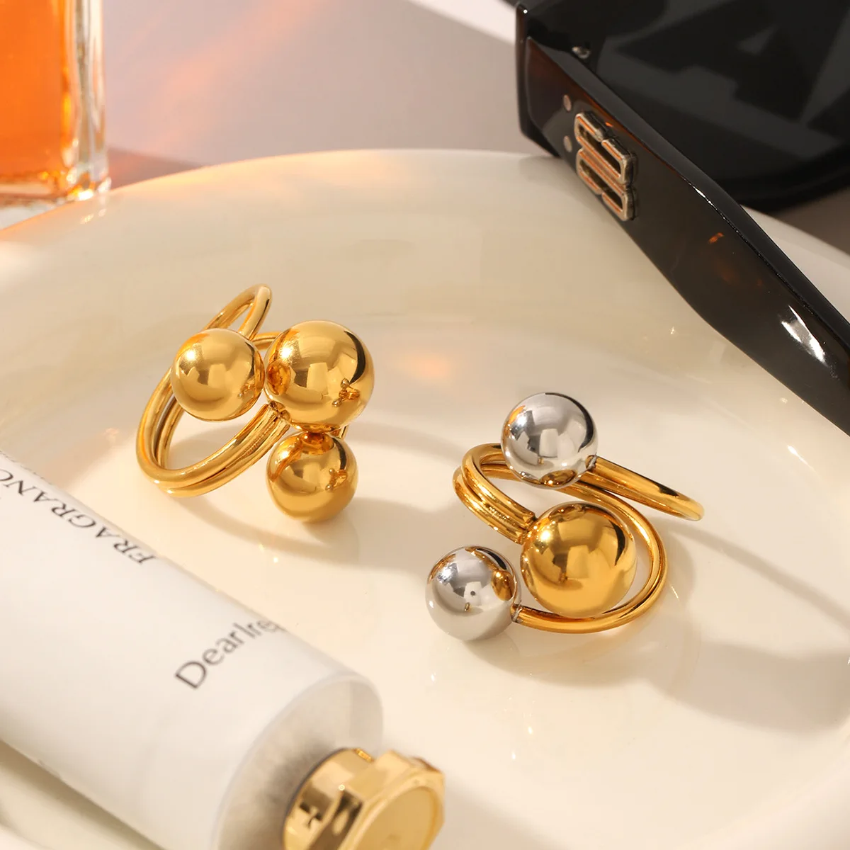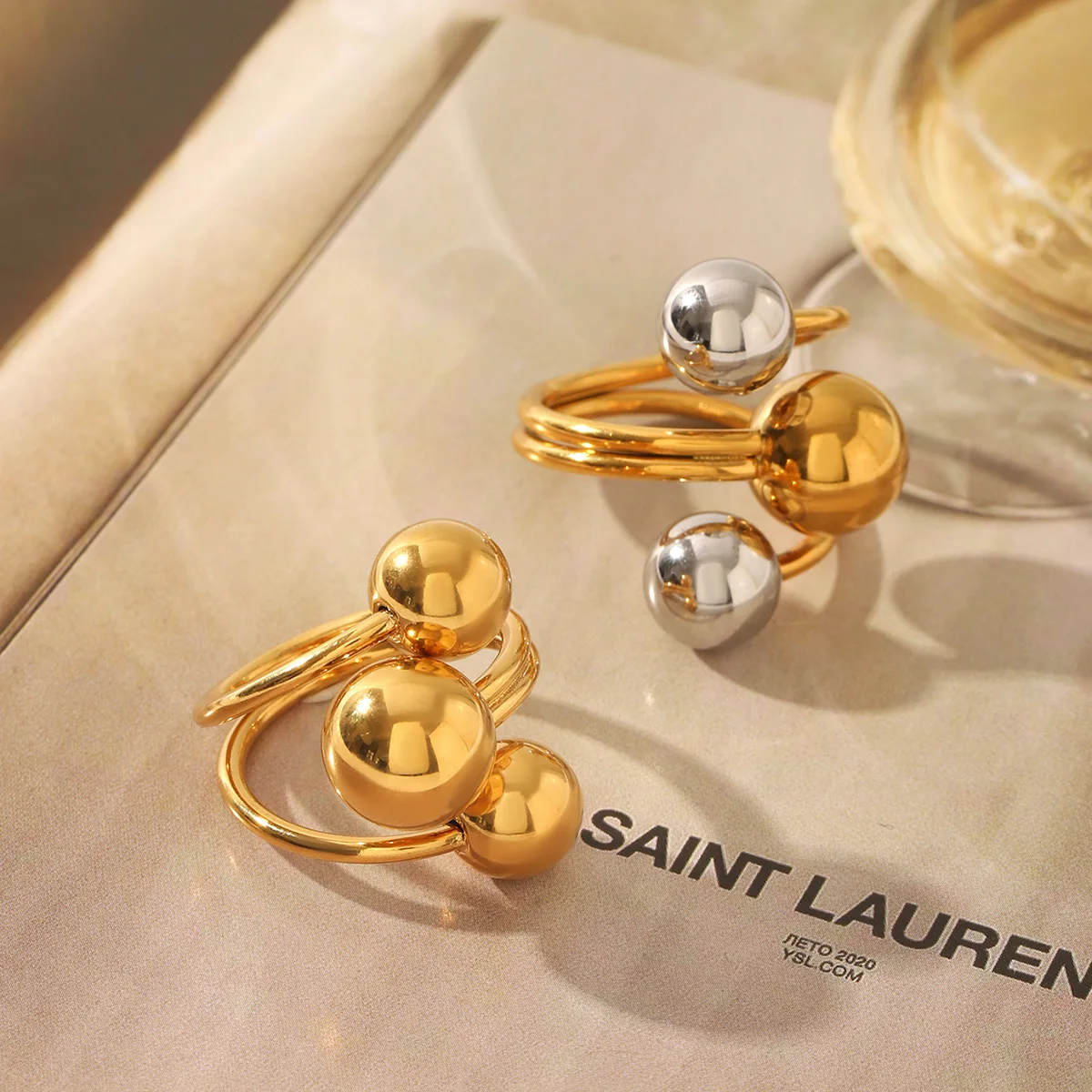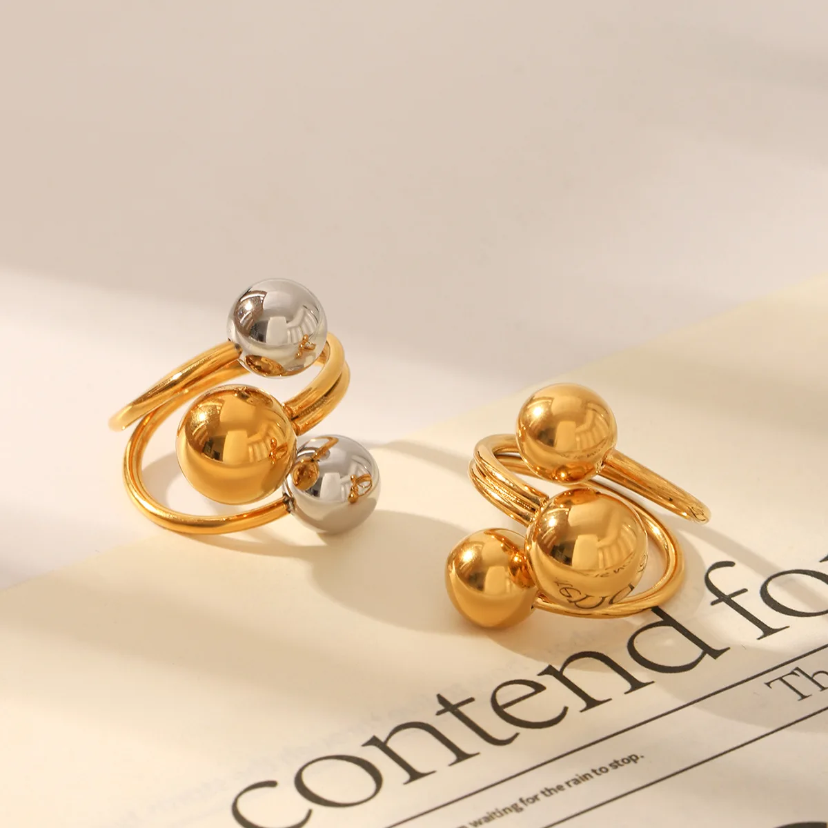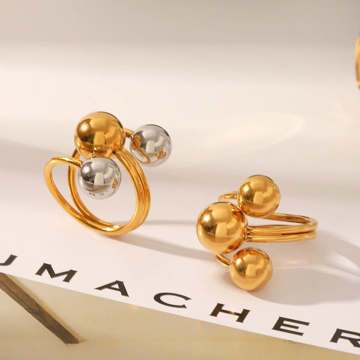 MW Minimalist 18k PVD Gold Plated Statement Bead Ring Stainless Steel Three Ball Open Ring Stainless Steel Gold Rings