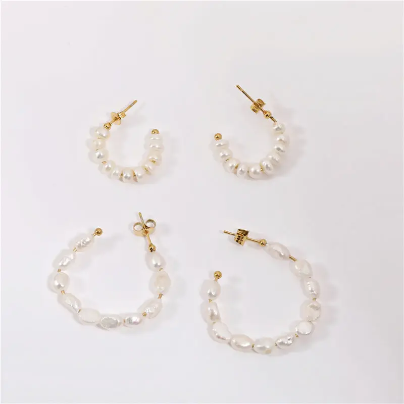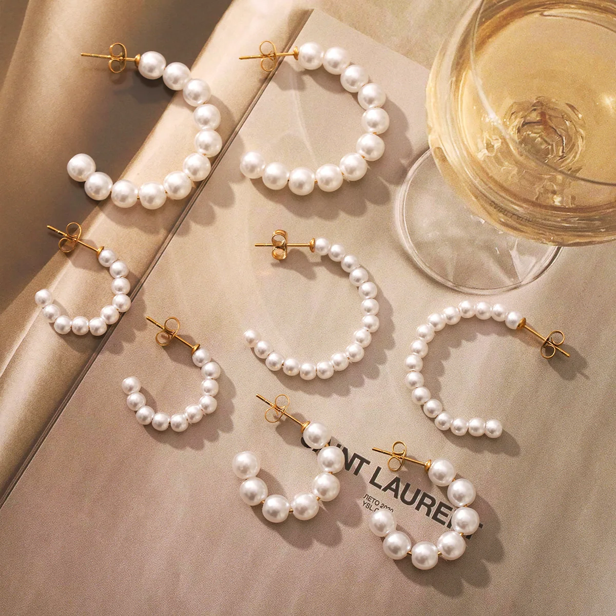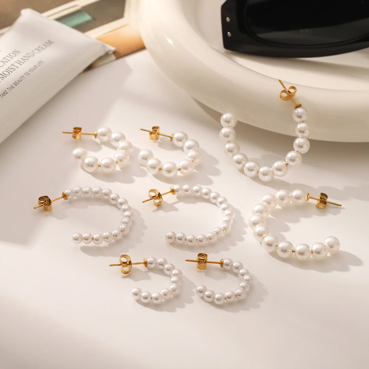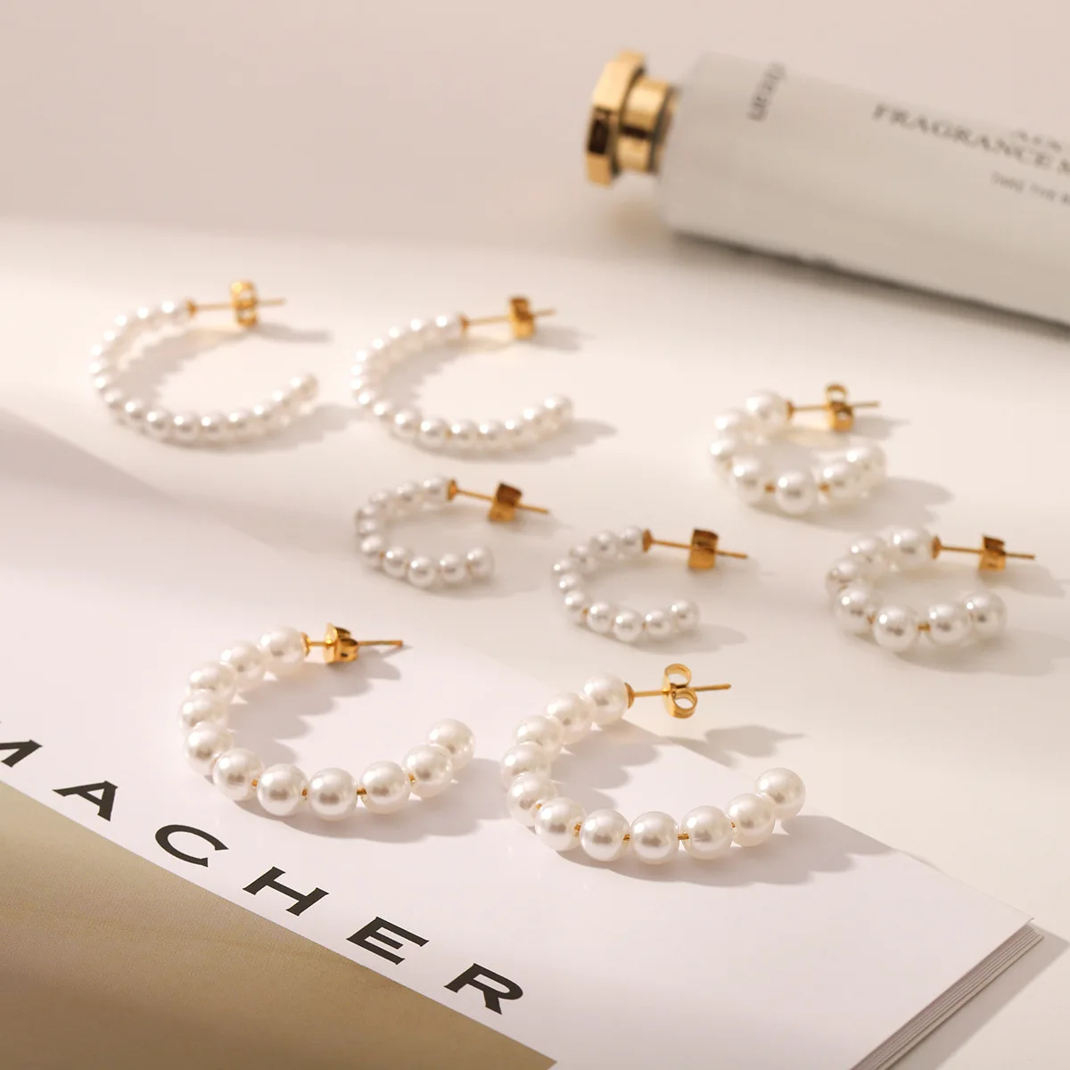 MW French Style Pearl C-shaped Jewelry Earrings Stainless Steel Gold-plated Mini Pearl Women's Gift Hoop Earrings
