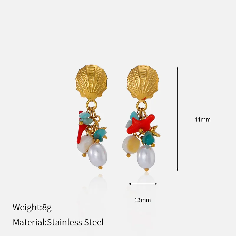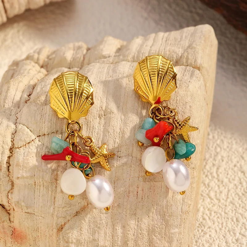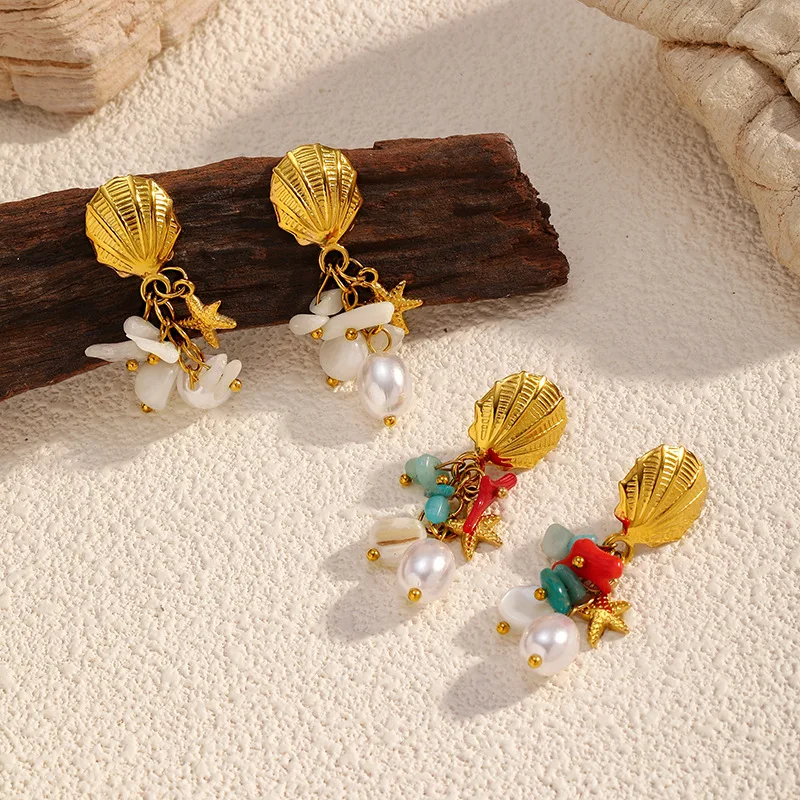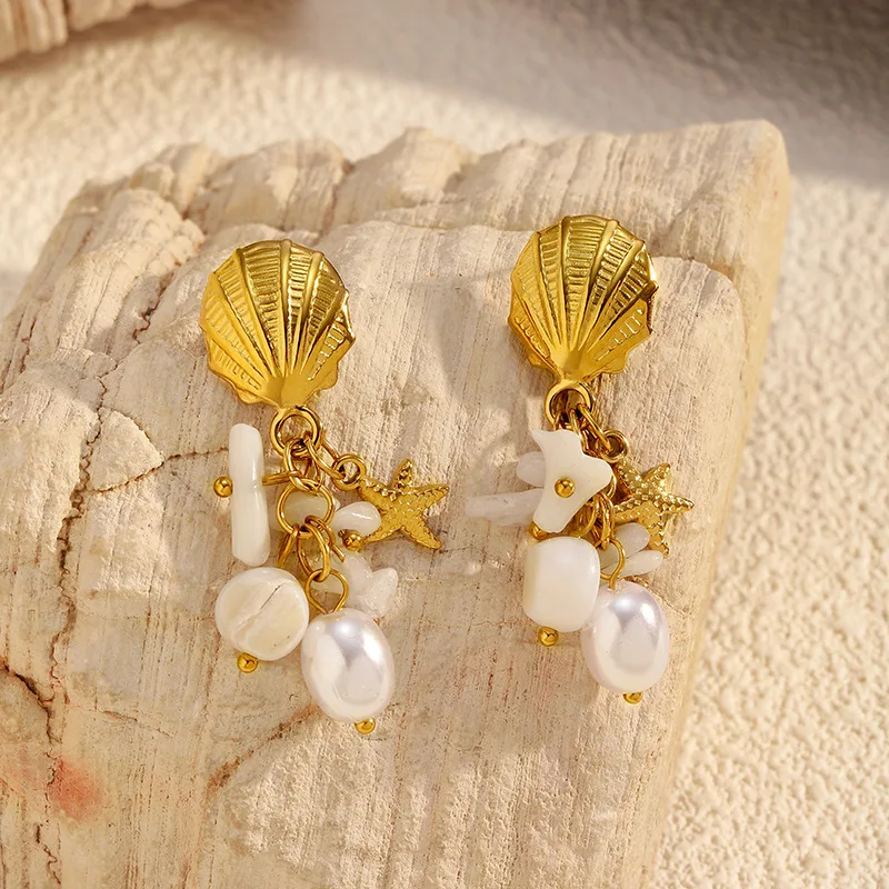 MW New Product Starfish Earrings Premium Retro Shell Pearl Earrings Wholesale Anti Tarnish Stainless Steel Jewelry for Woman
