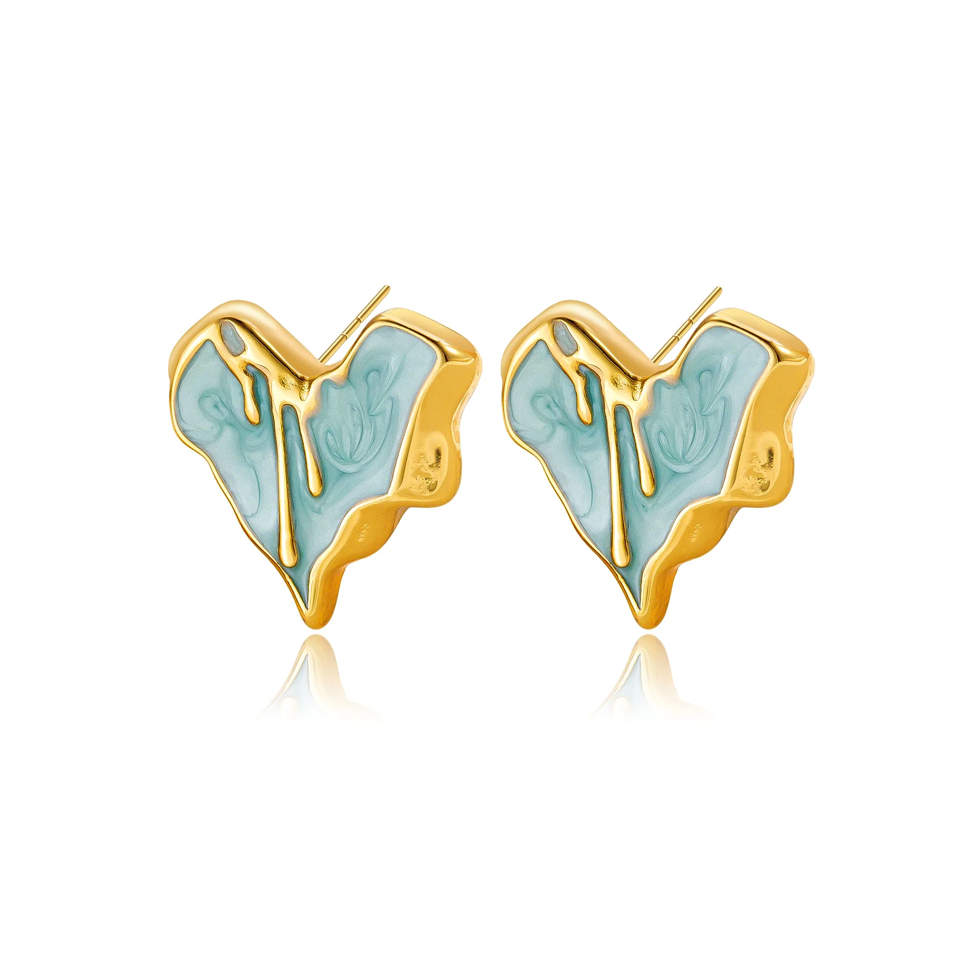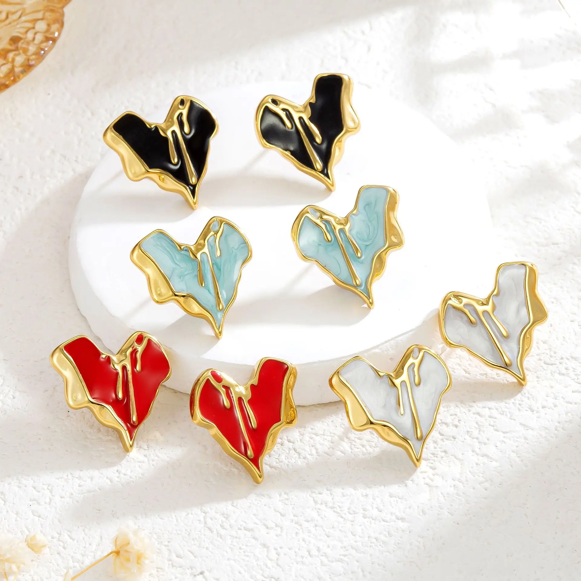 MW Wholesale Trendy Unisex Earrings Irregular Stainless Steel Drip Oil Heart Enamel Stud Earrings Jewelry for Anniversary
