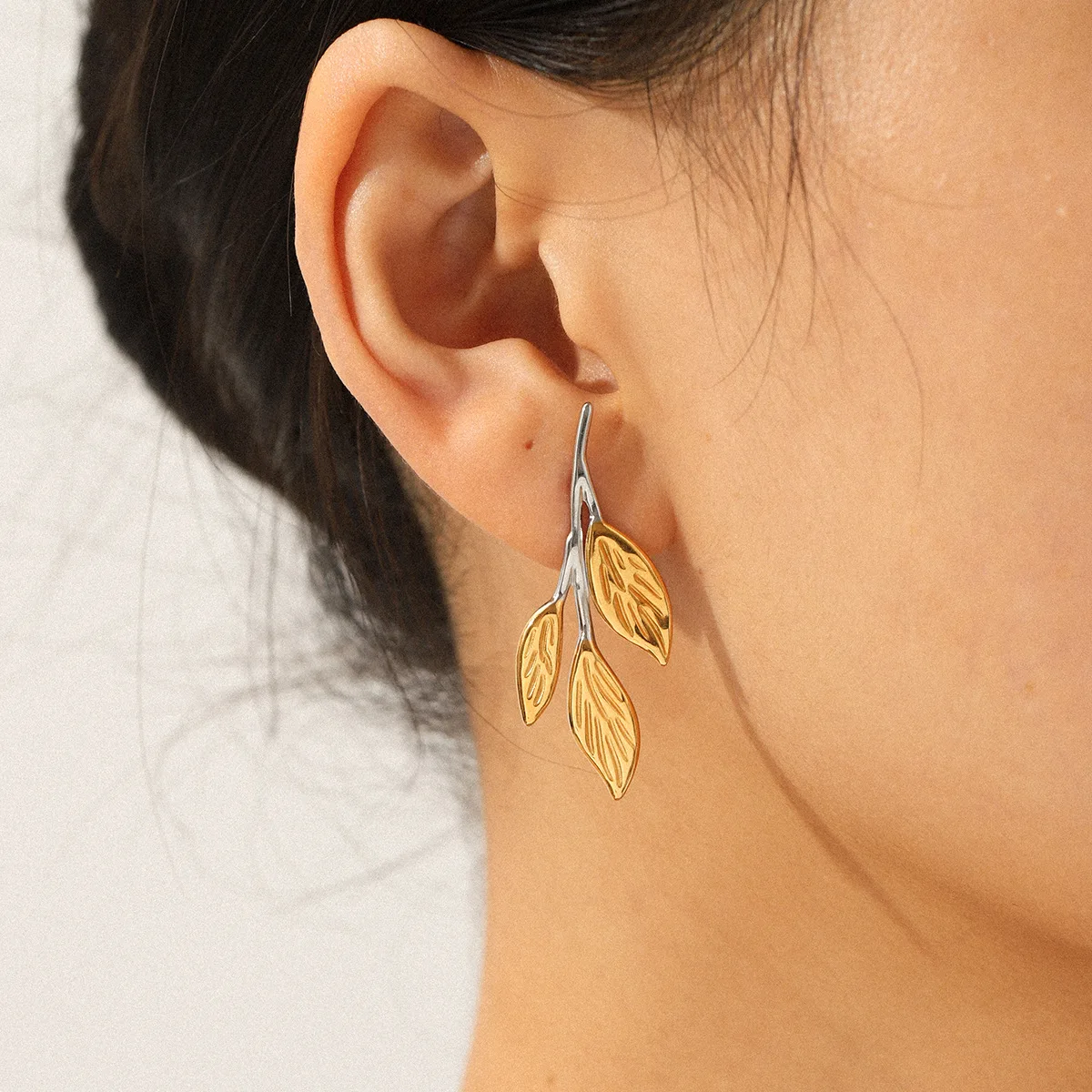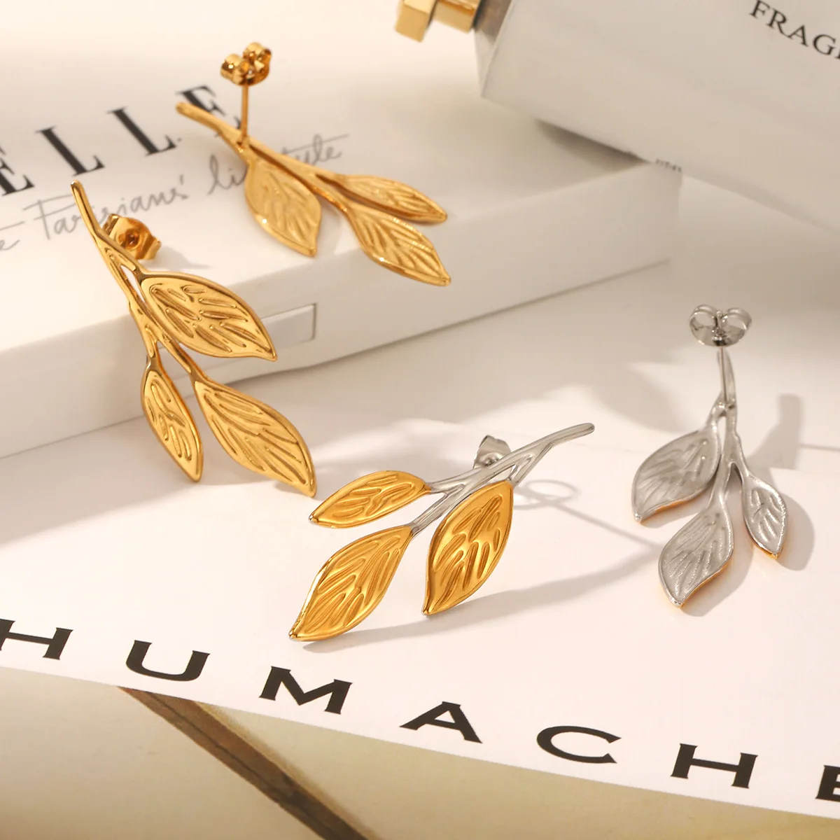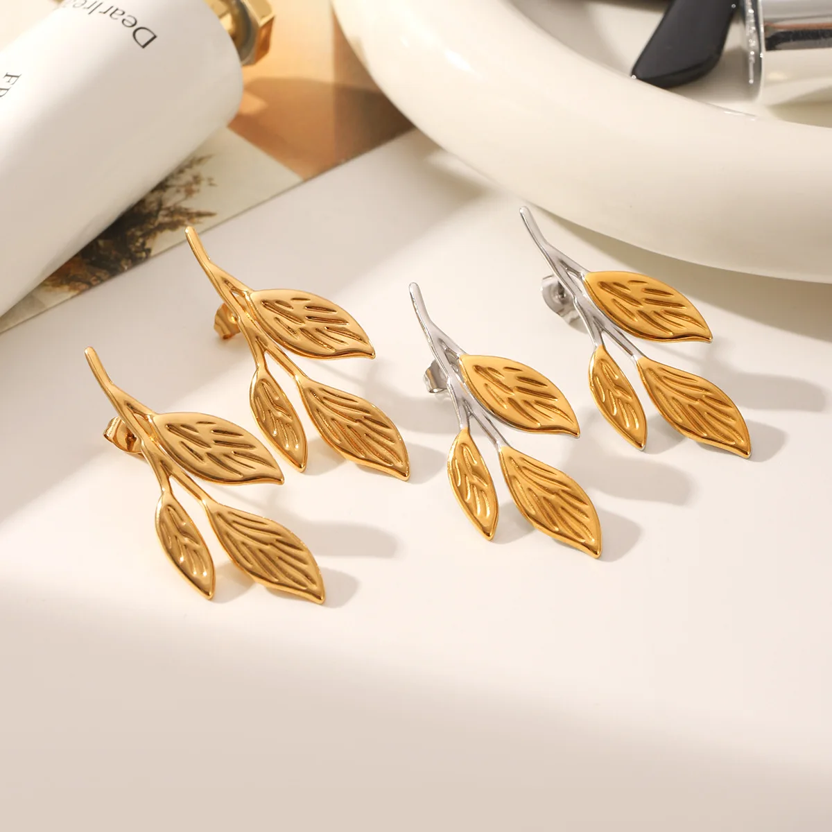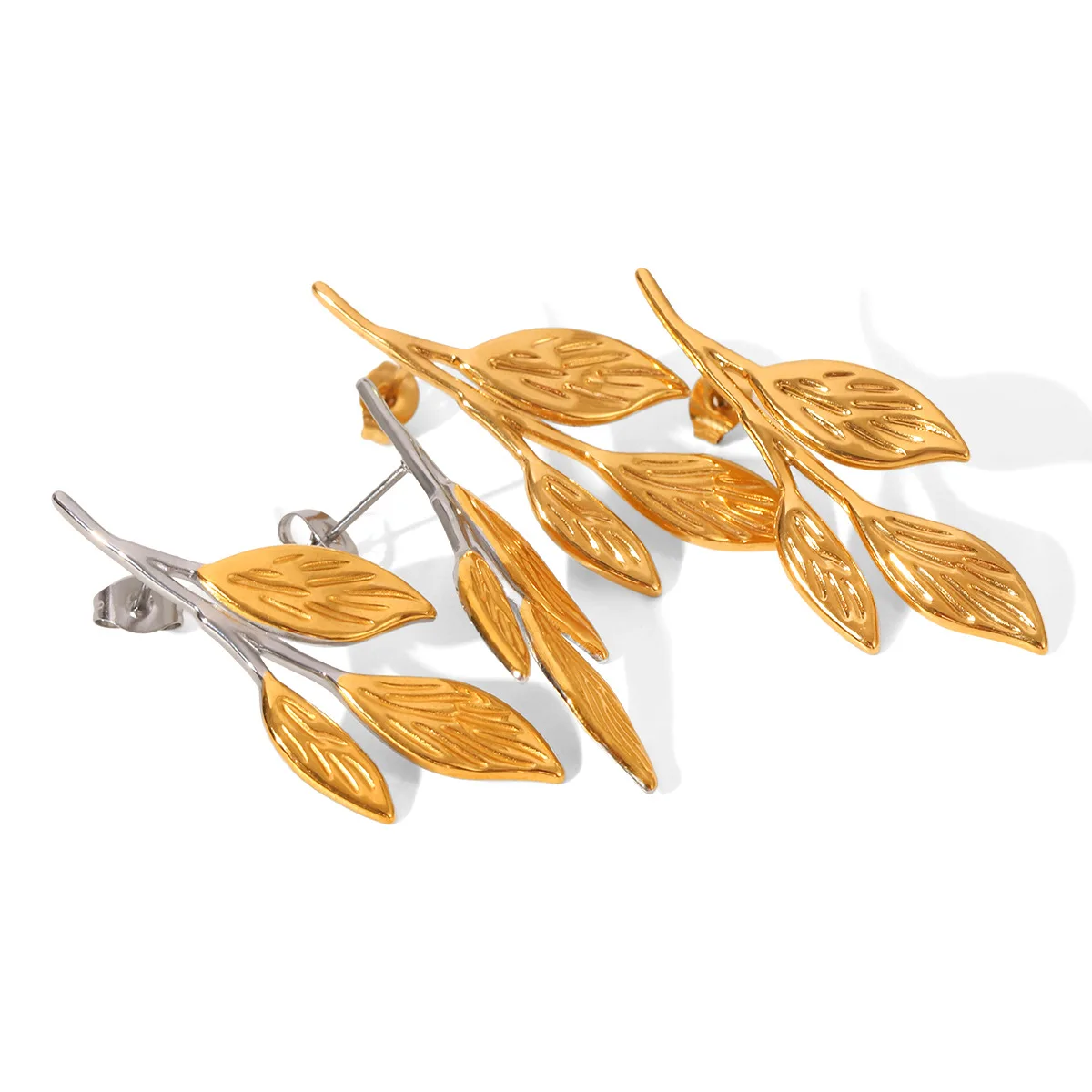 MW Wholesale Summer Beach Vacation Style 18K Gold Women Earrings Pattern Leaf Earrings Stainless Steel PVD Plate Earring