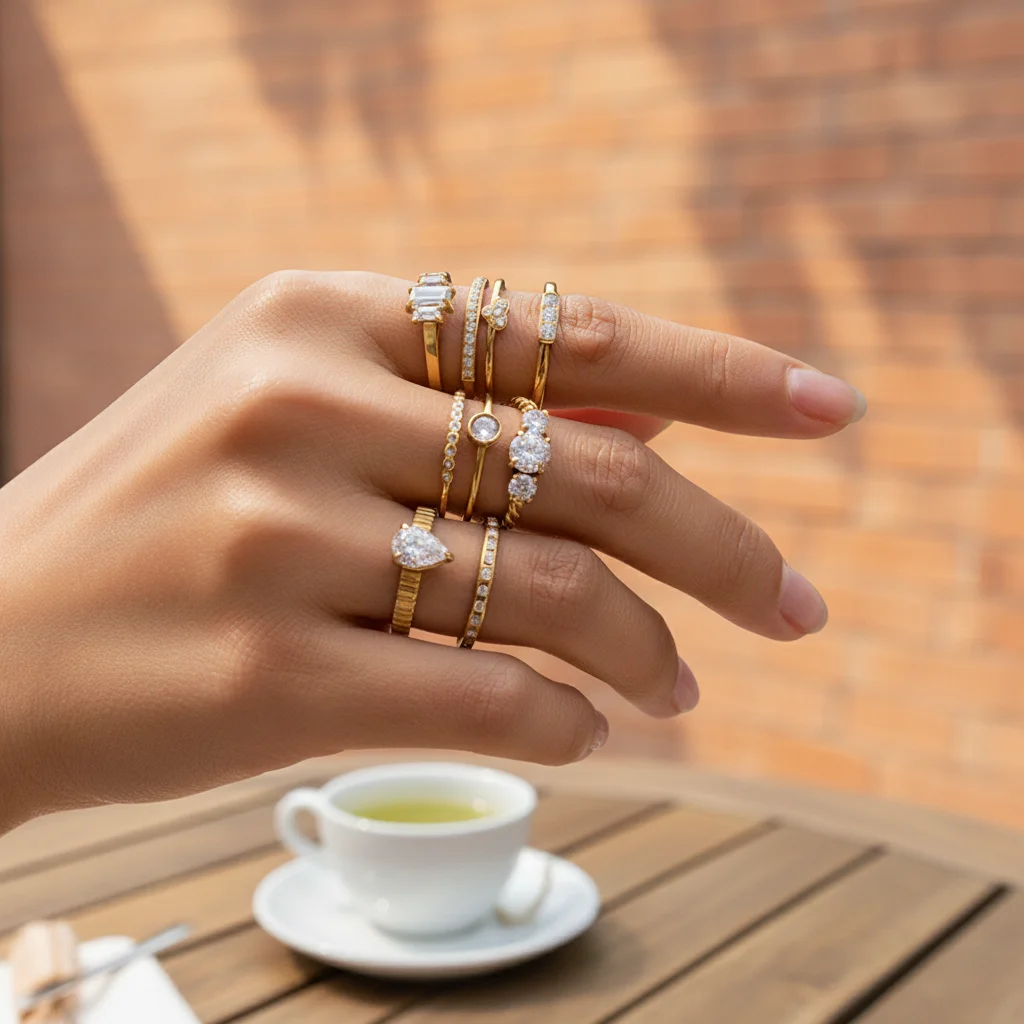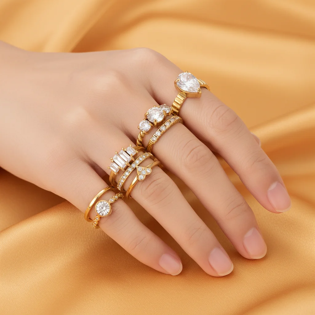 MW Women's Non Tarnish Jewelry 18K Stainless Steel Dainty Zircon Eternity Thin Stackable Ring Stainless Steel Solitaire Ring