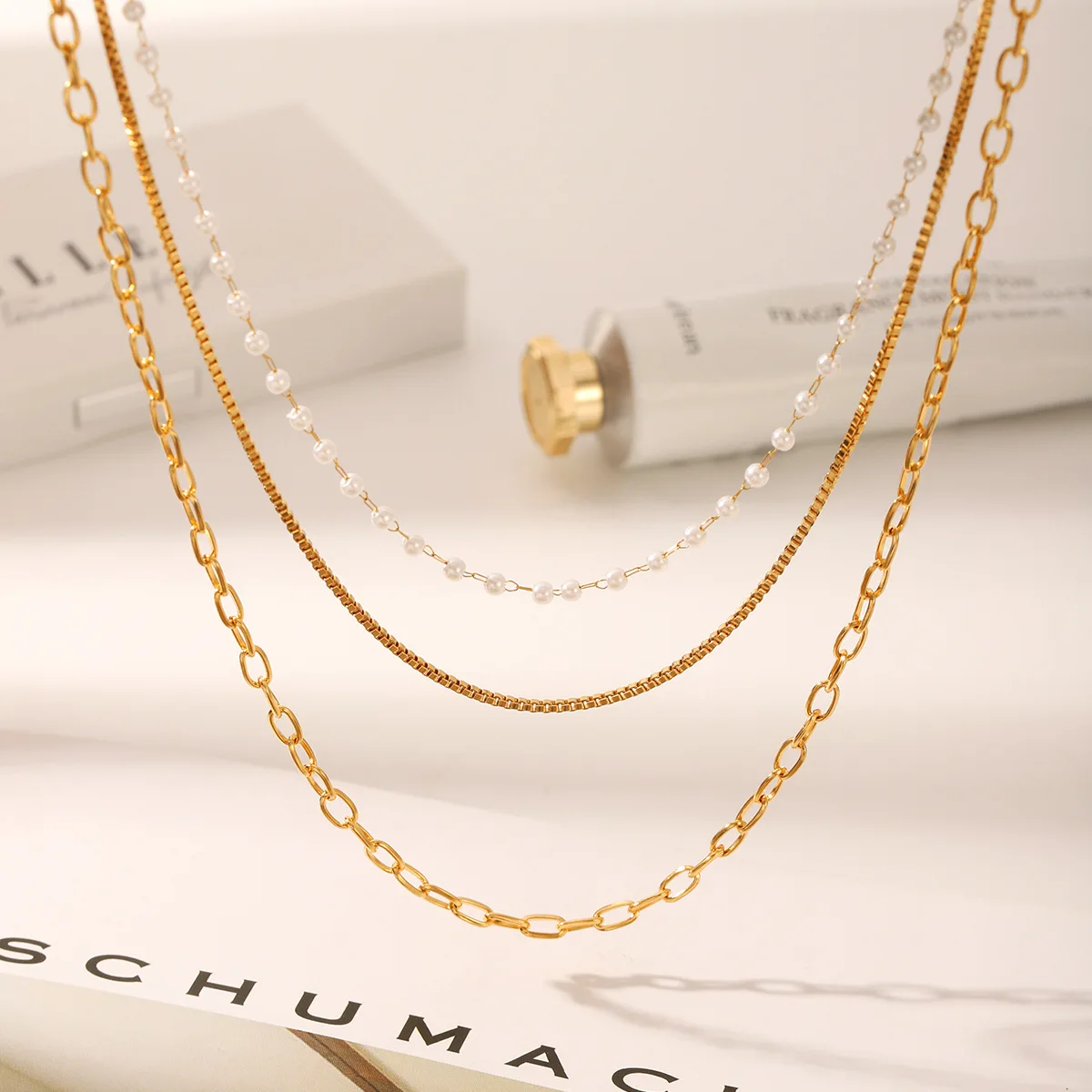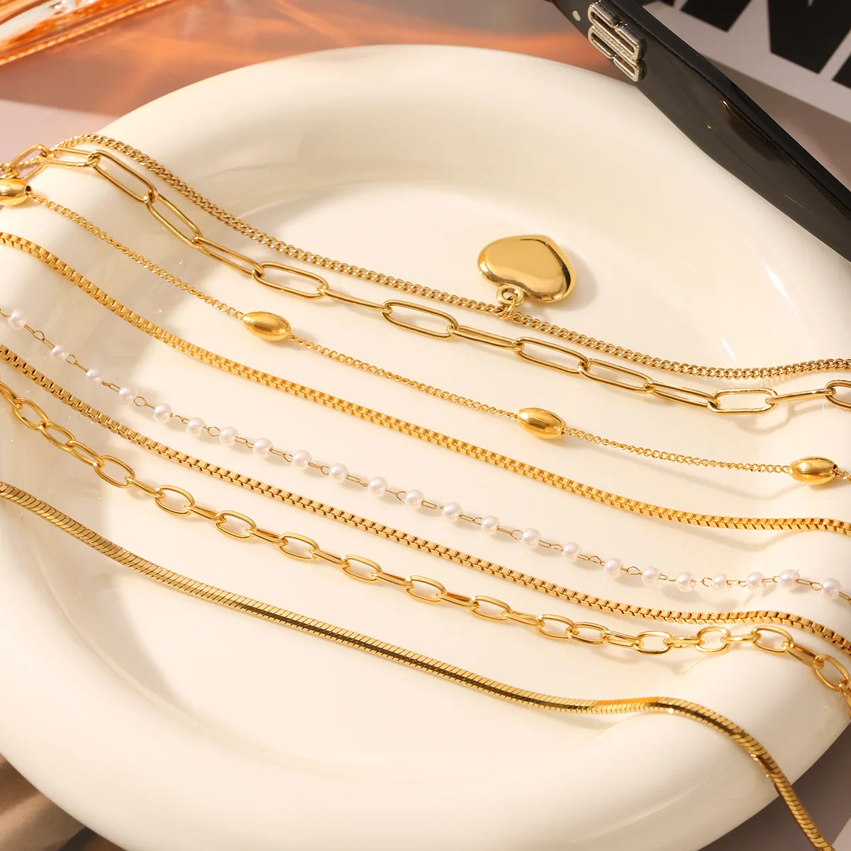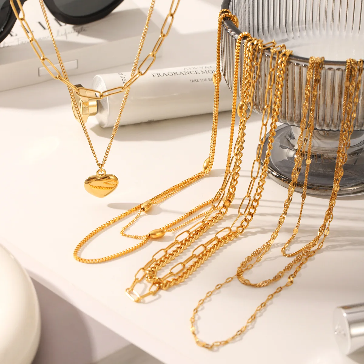MW Wholesale Stainless Steel Necklace Stacked Heart Paper Clip Snake Bone Pendant Gold Plated Fashion Jewelry Necklace for Women