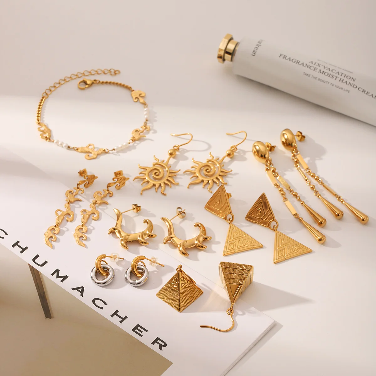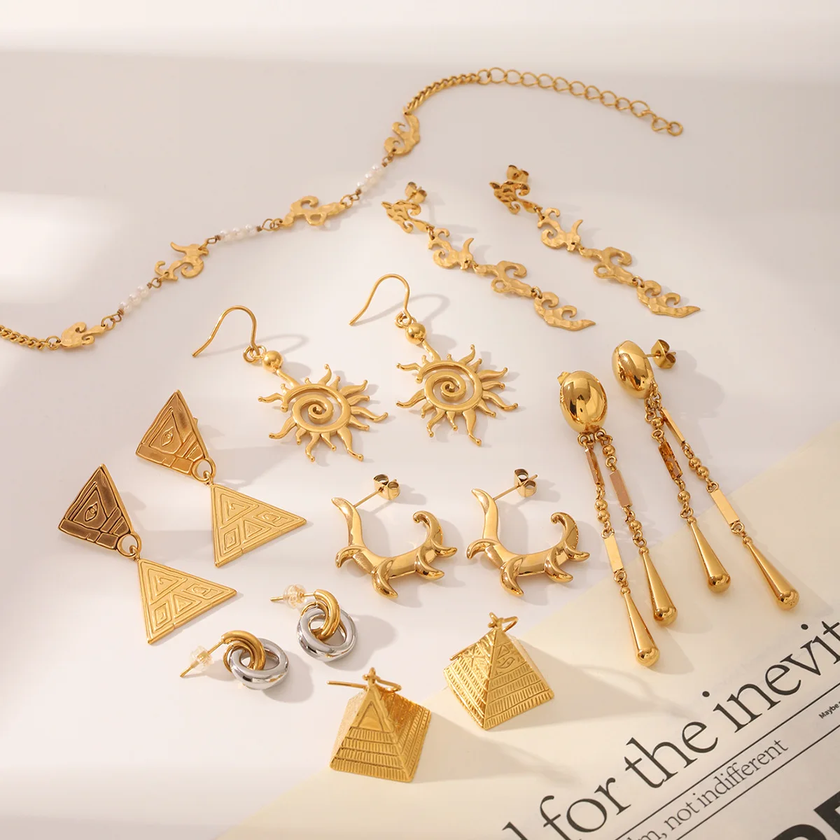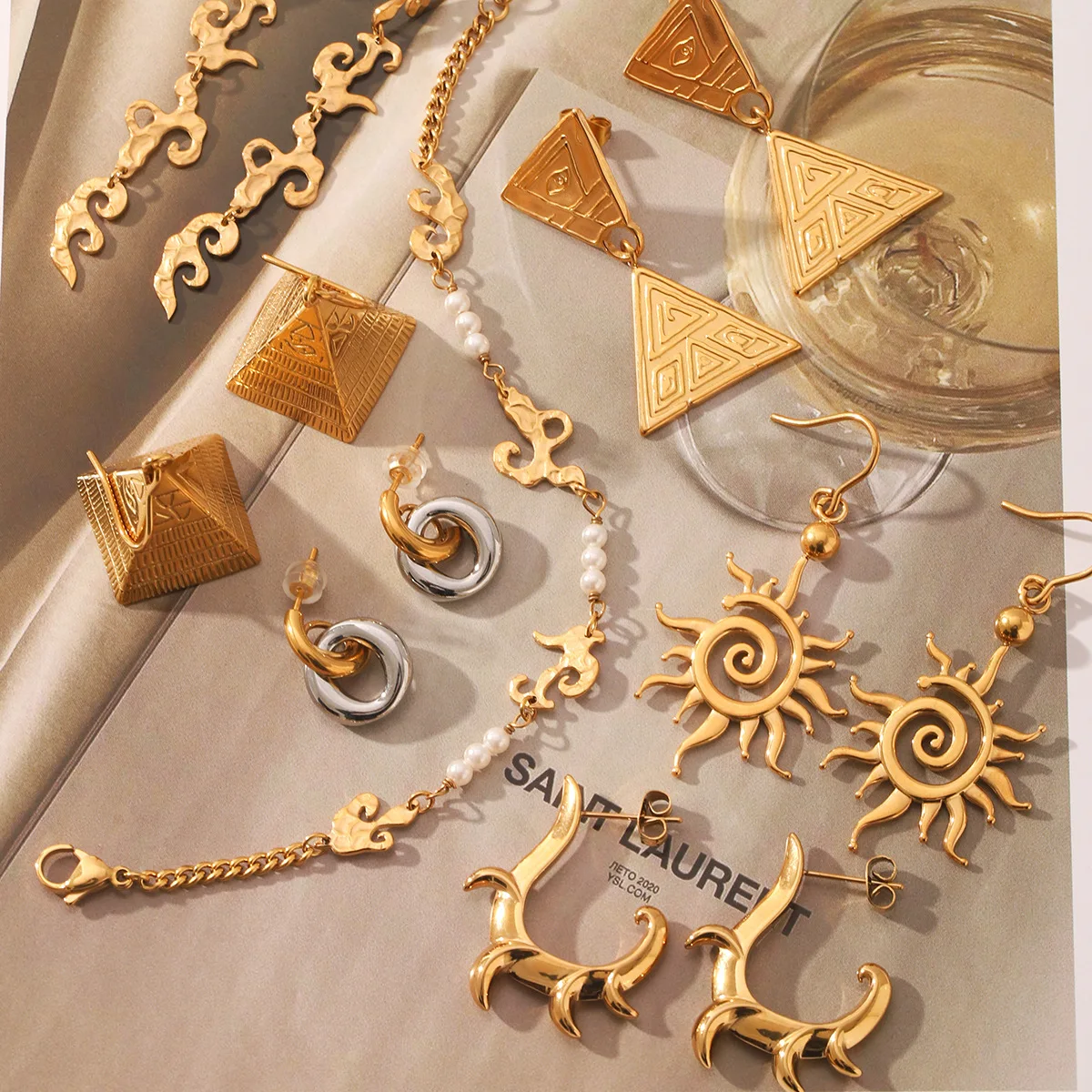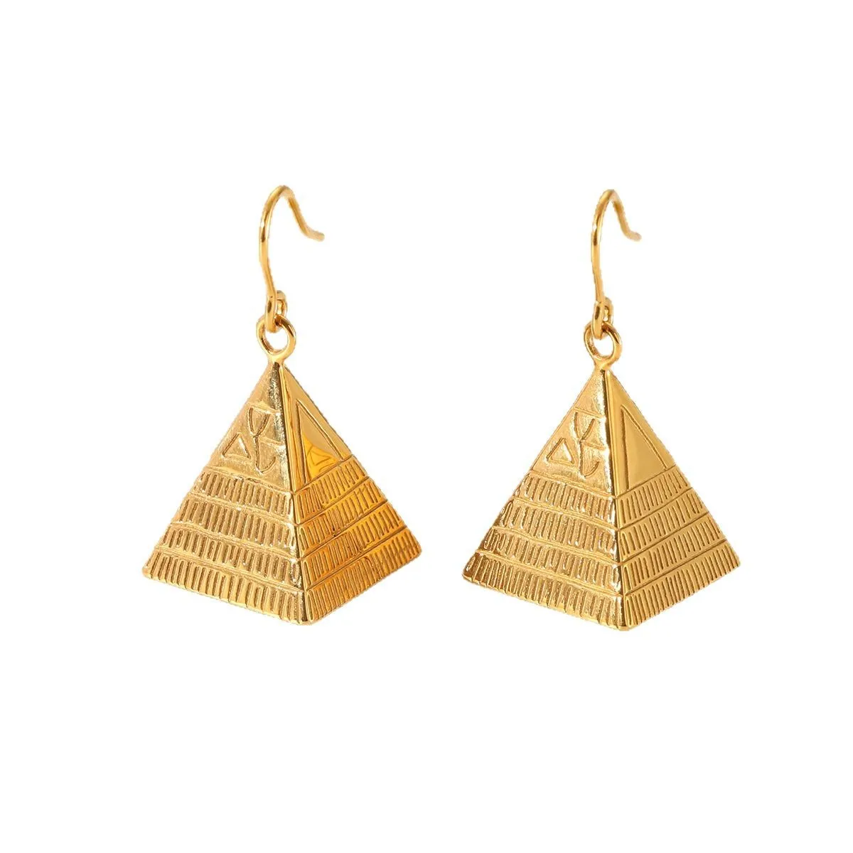 MW Hip Hop 18k Stainless Steel Earrings Exaggerated Triangle Pyramid Texture Pendant Earrings for Women's Daily Wearing Jewelry
