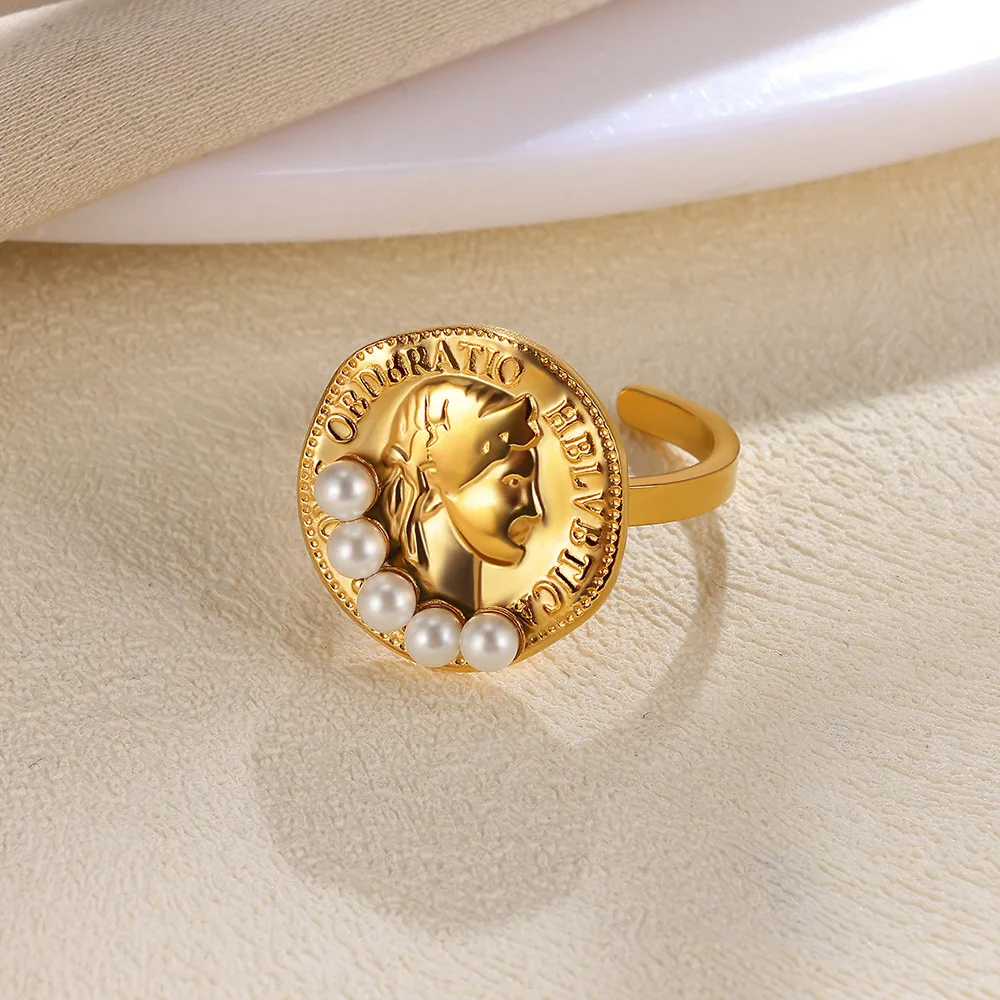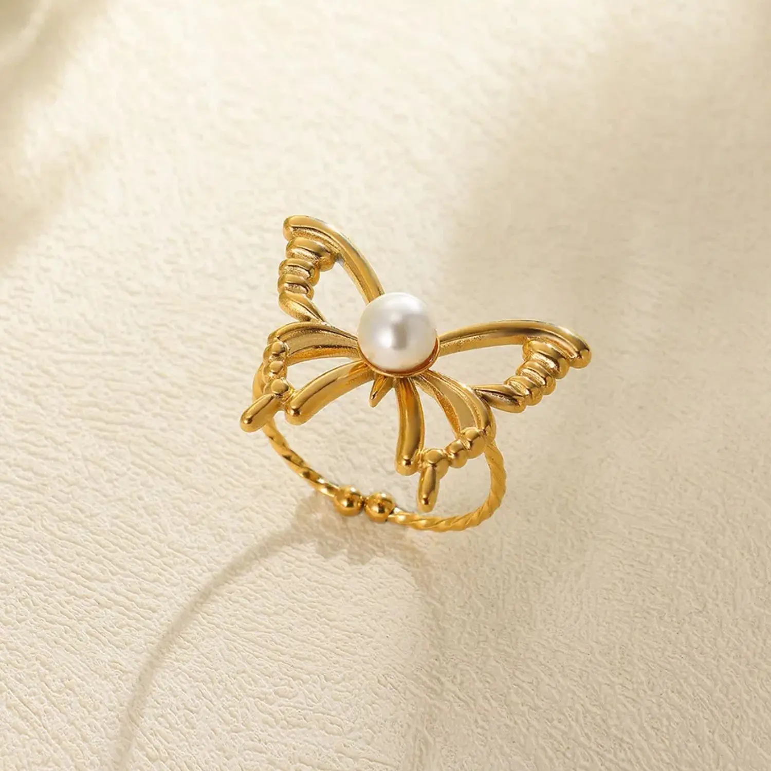 MW Vintage Stainless Steel with Imitation Pearl Stackable Shell/Butterfly Rings Nugget Rings for Open Ring Jewelry Women