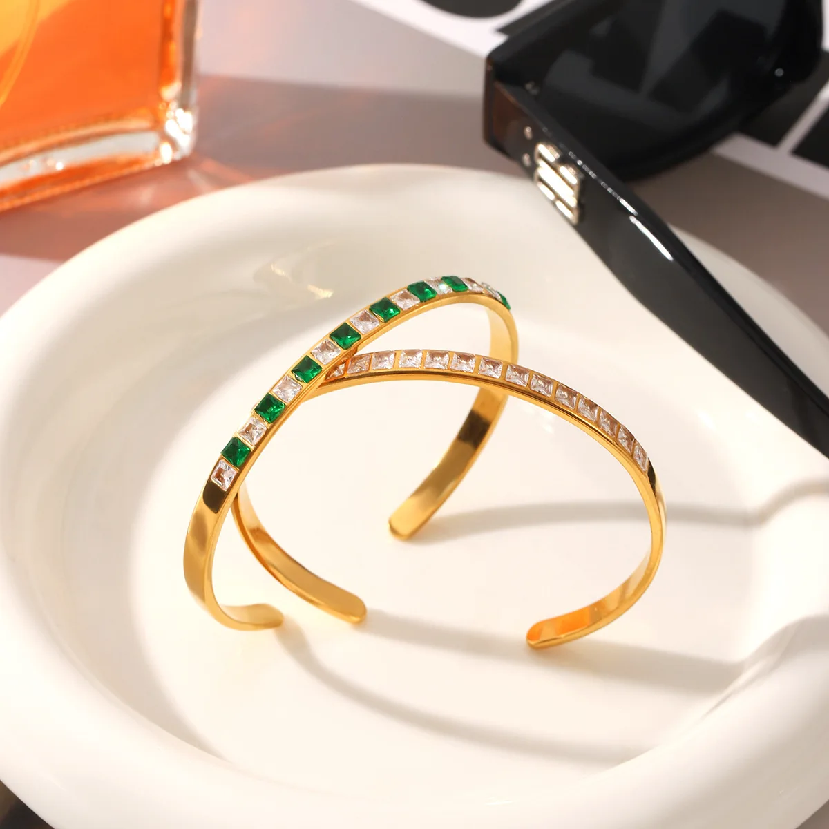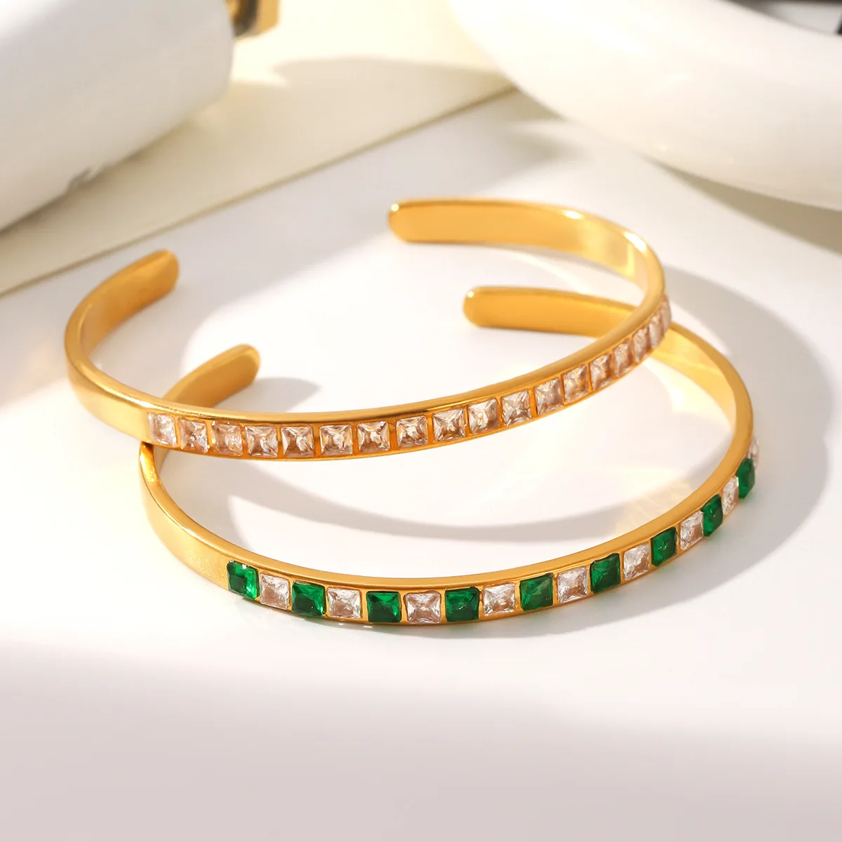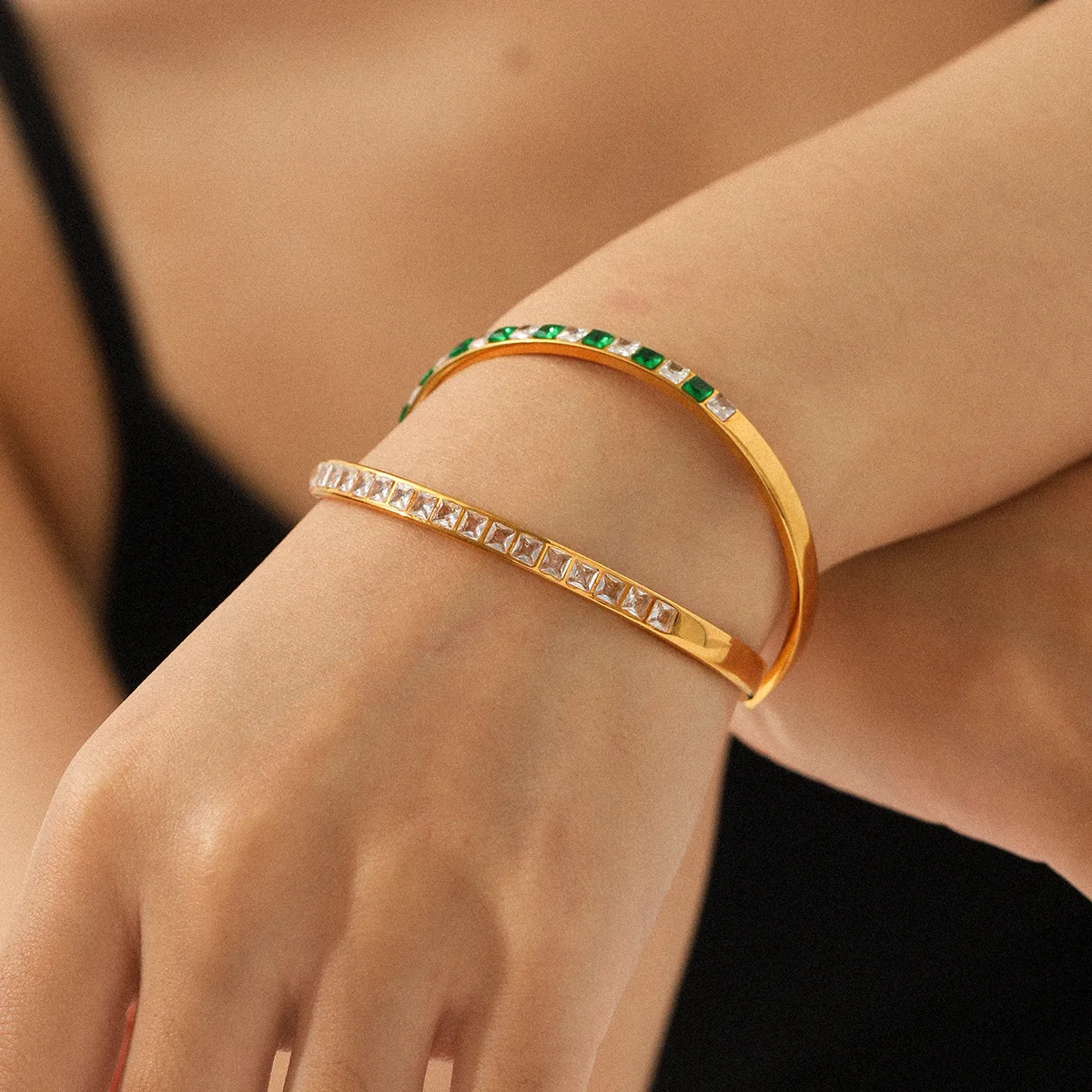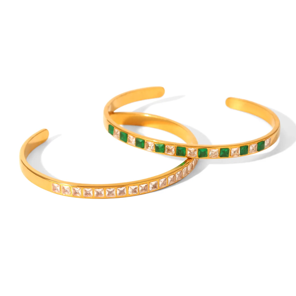 MW 18K Gold Luxury Iced Out Bling Geometric Round Square 5A Cubic Zirconia CZ Tennis Bracelet Stainless Steel Bangles for Women