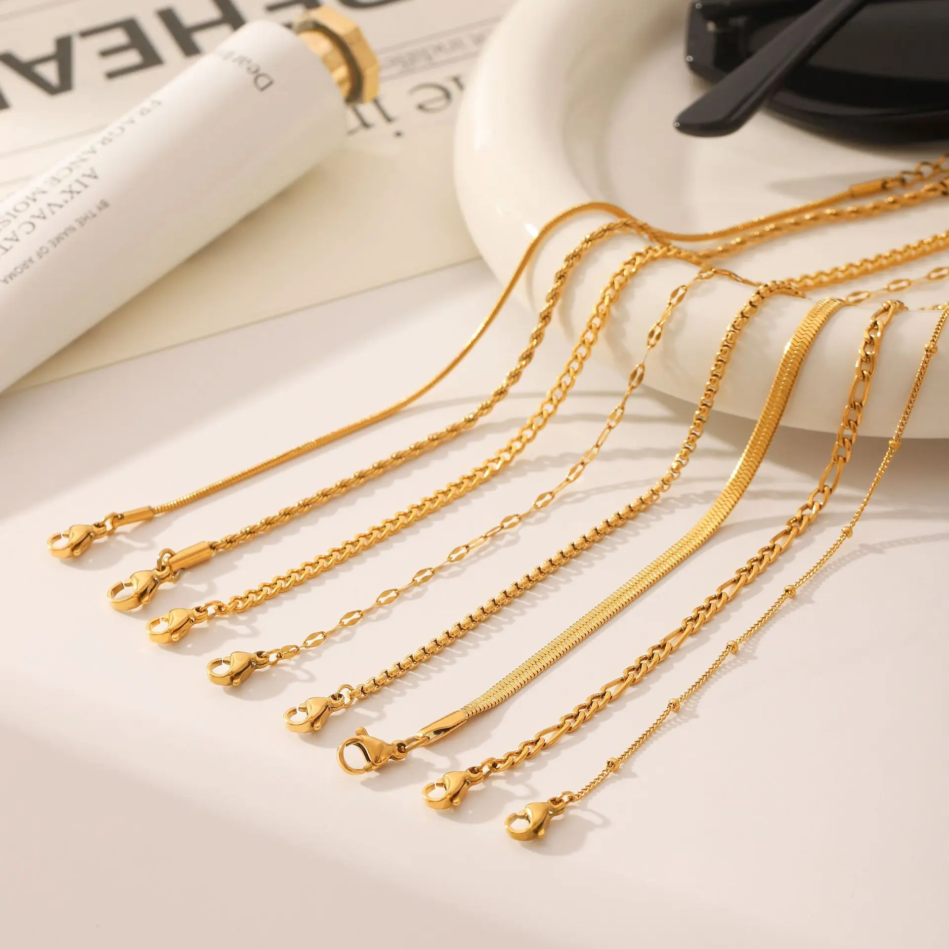 MW Women Men Non Tarnish Jewelry Fashion Thin Dainty Stackable Cuban Link Paperclip ChainStainless Steel Bracelets Wholesale
