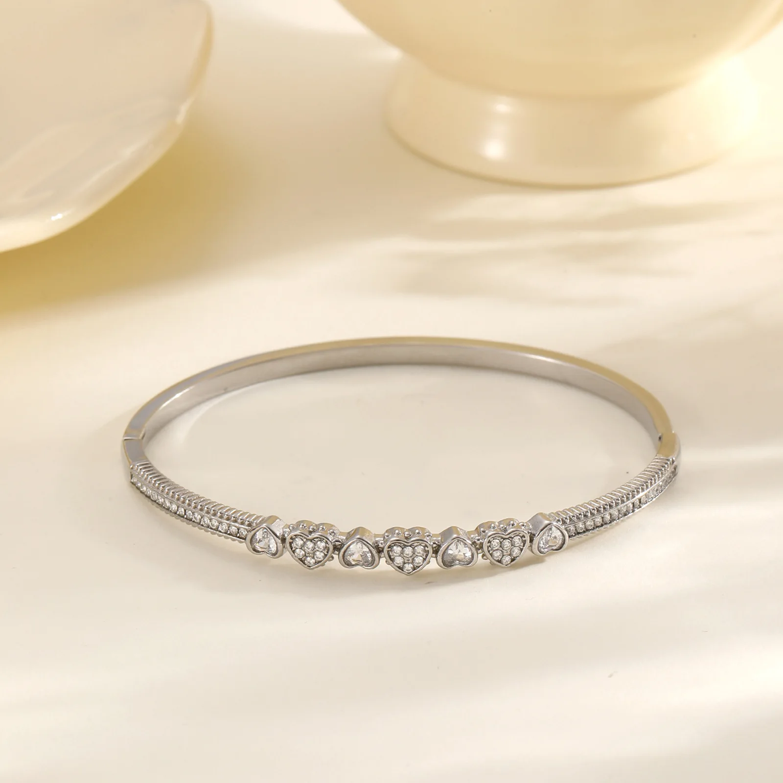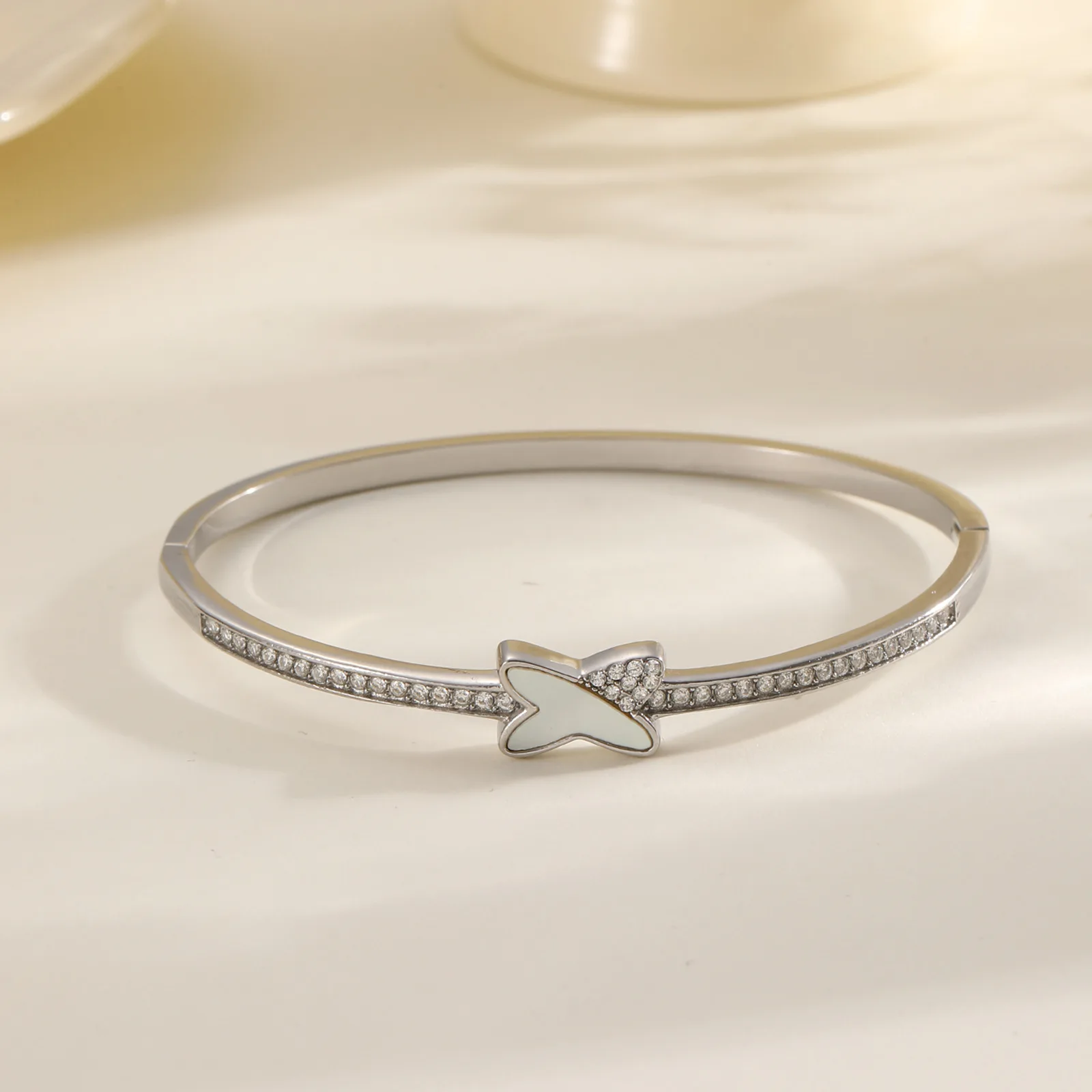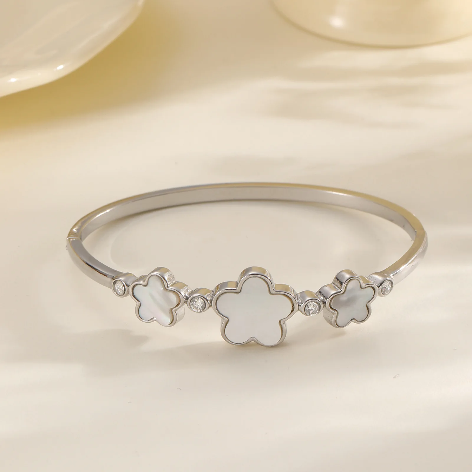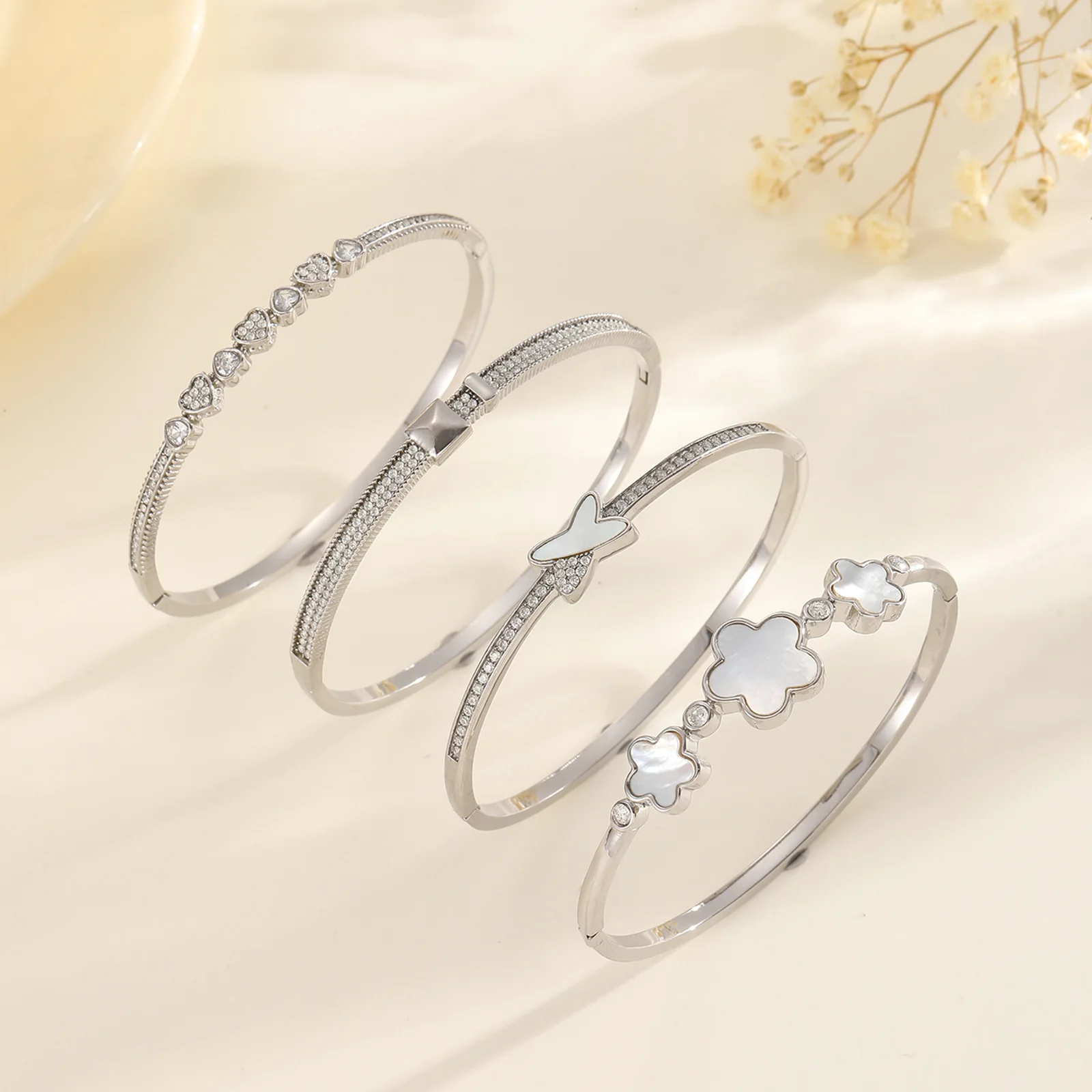 MW Four-leaf Clover love X-letter Geometric Inlaid Zircon Girl's High-end Light Fashion Small Fresh Design Stainless Bangle