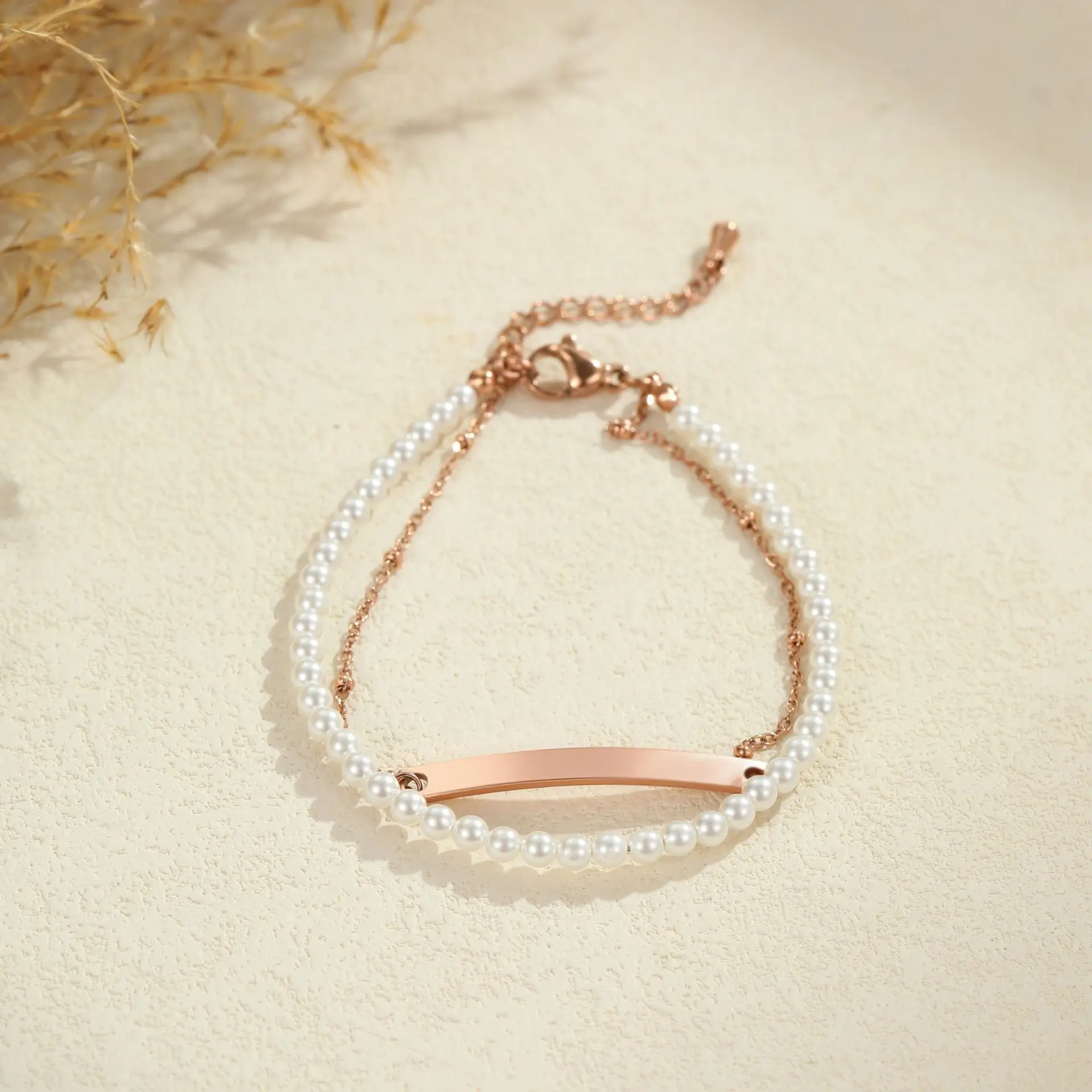 MW Stainless Steel New Design 18K PVD Polish Waterproof Pearl Mixed Bracelet Set in Gold Silver Pearl Bracelet Stainless Steel