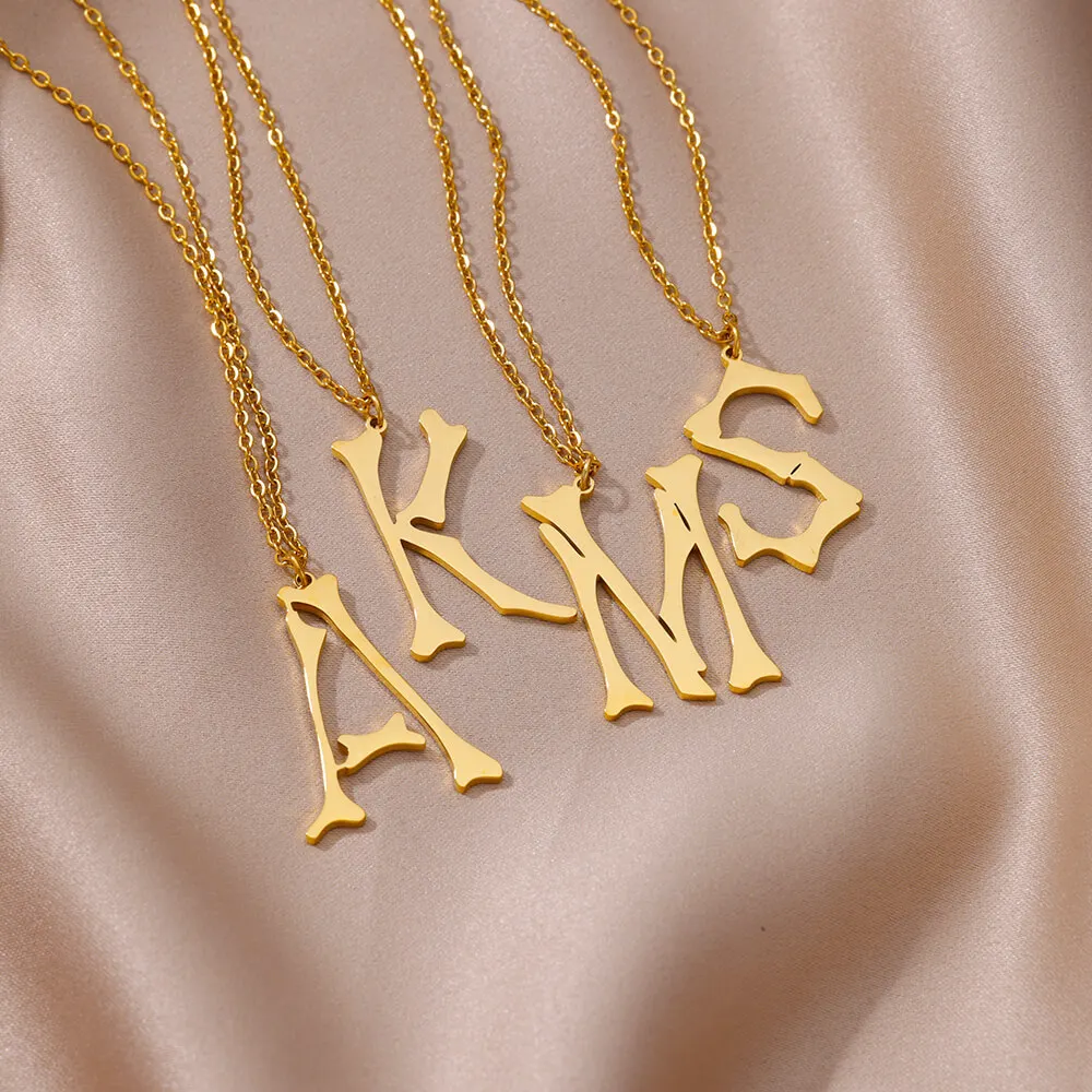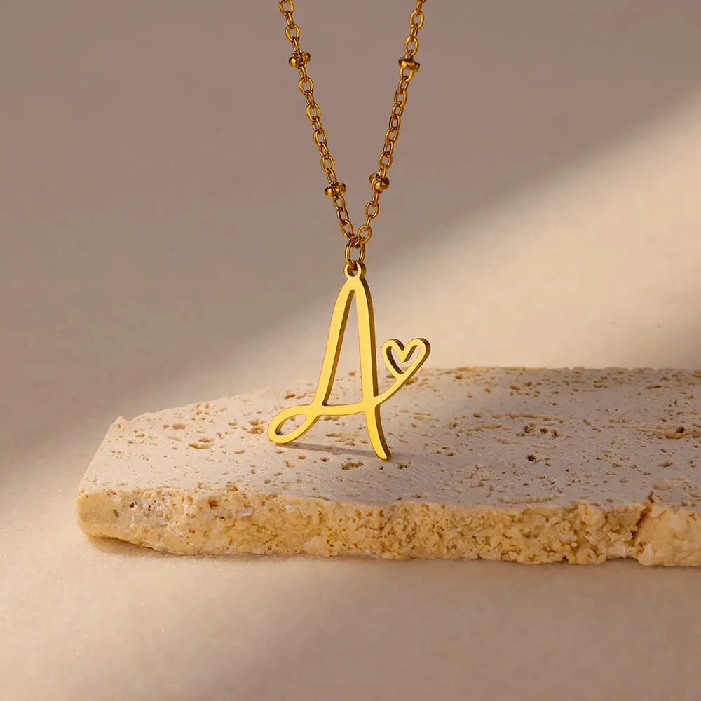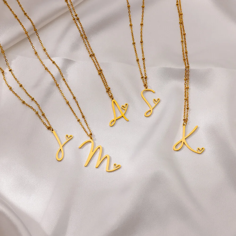MW Go Party 18K Gold-Plated Stainless Steel Necklace Waterproof Non-Tarnish A-Z 26 Letter Heart Pendant Fashion Jewelry
