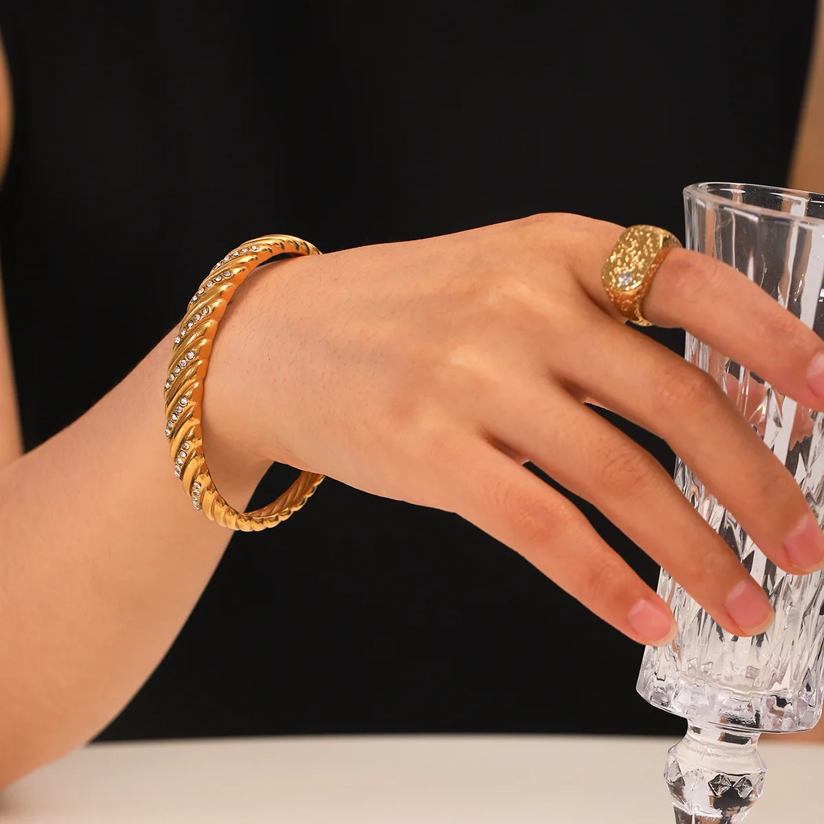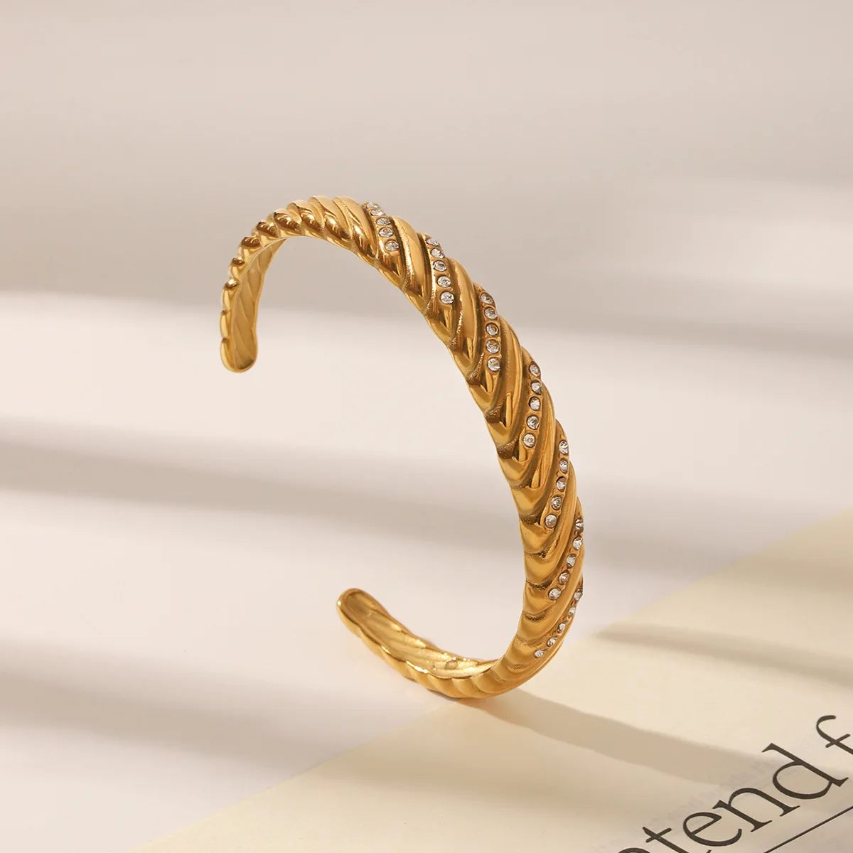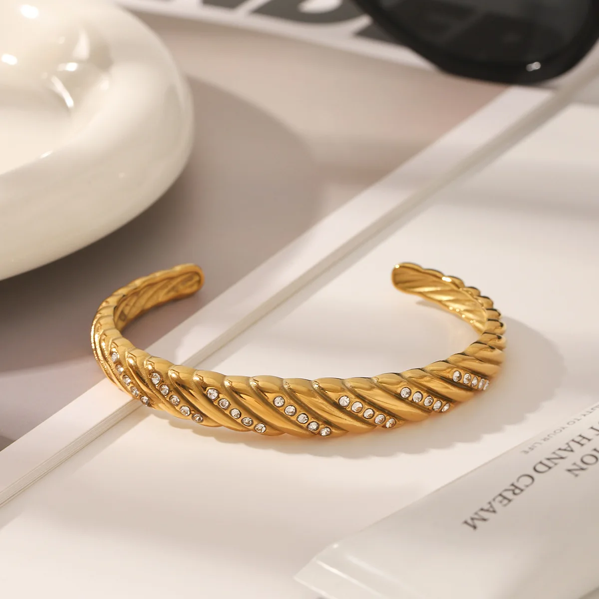 MW 18k Gold Plated Stackable Statement Jewelry Cz Zircon Twisted Fashion Cuff Bangles Bracelets Dubai Stainless Steel Bangles