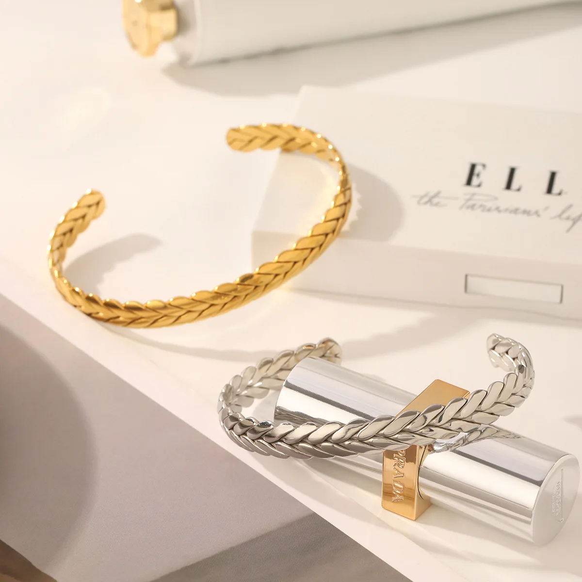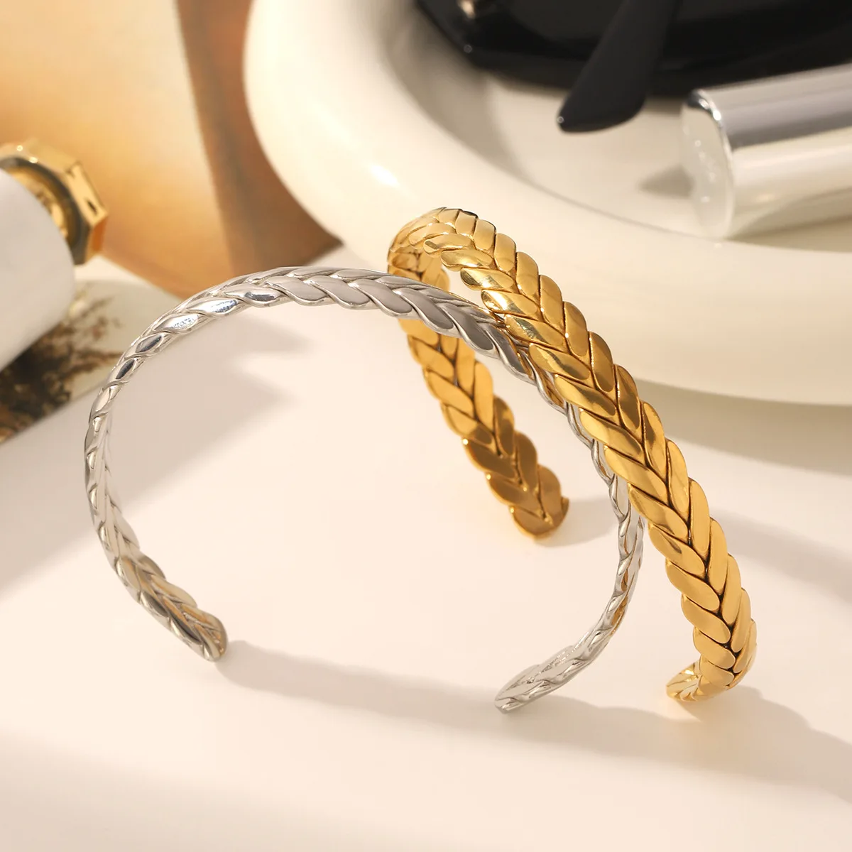 MW 18K Gold Plated Cuff Bangle Wheat Ear Twist Bangle Men Couples Love Bracelets Weave Braided Bangles Stainless Steel Bangle