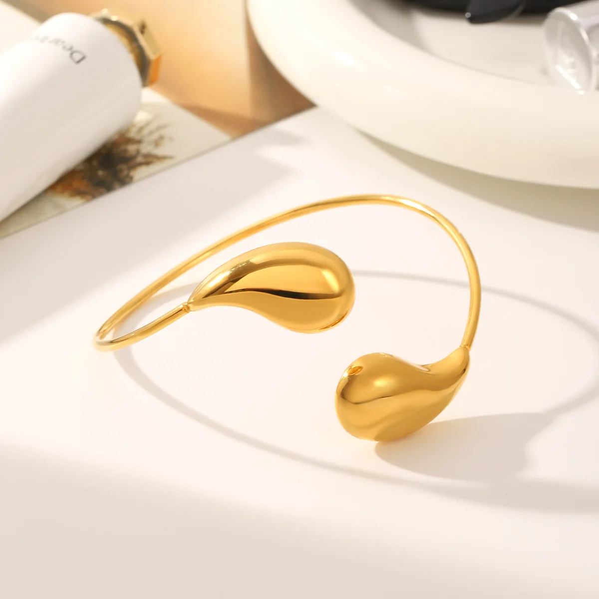 MW 18K Gold Heart Water Drop Pendant Jewelry Gift for Christmas Mother's Day Wedding Bridal Stainless Steel Unique Cuff Bangle