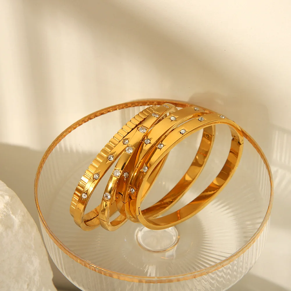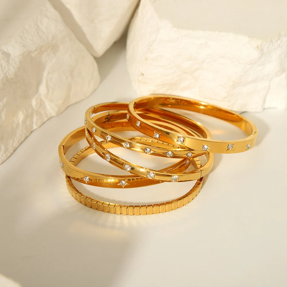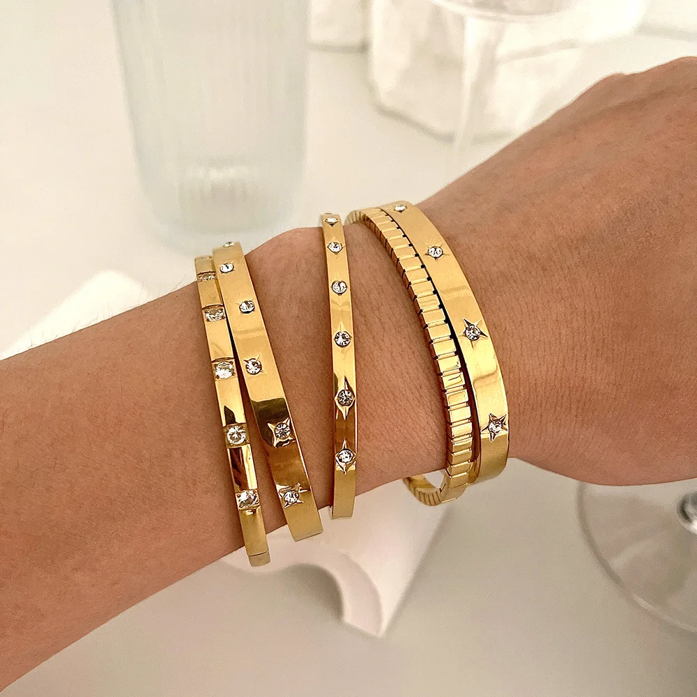 MW Wholesale New Arrival High Quality Women's 18K Gold-Plated Stainless Steel Bangle Cubic Zirconia Geometric Trendy