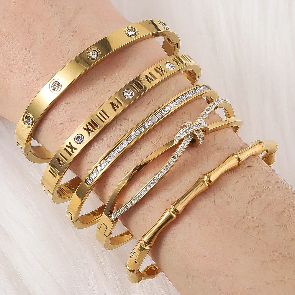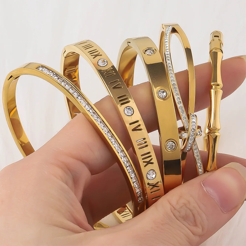 MW Wholesale Luxury 18K Gold-Plated Stainless Steel Bracelet: Crystal Rhinestone Pulseiras Pulseras Mujer for Women