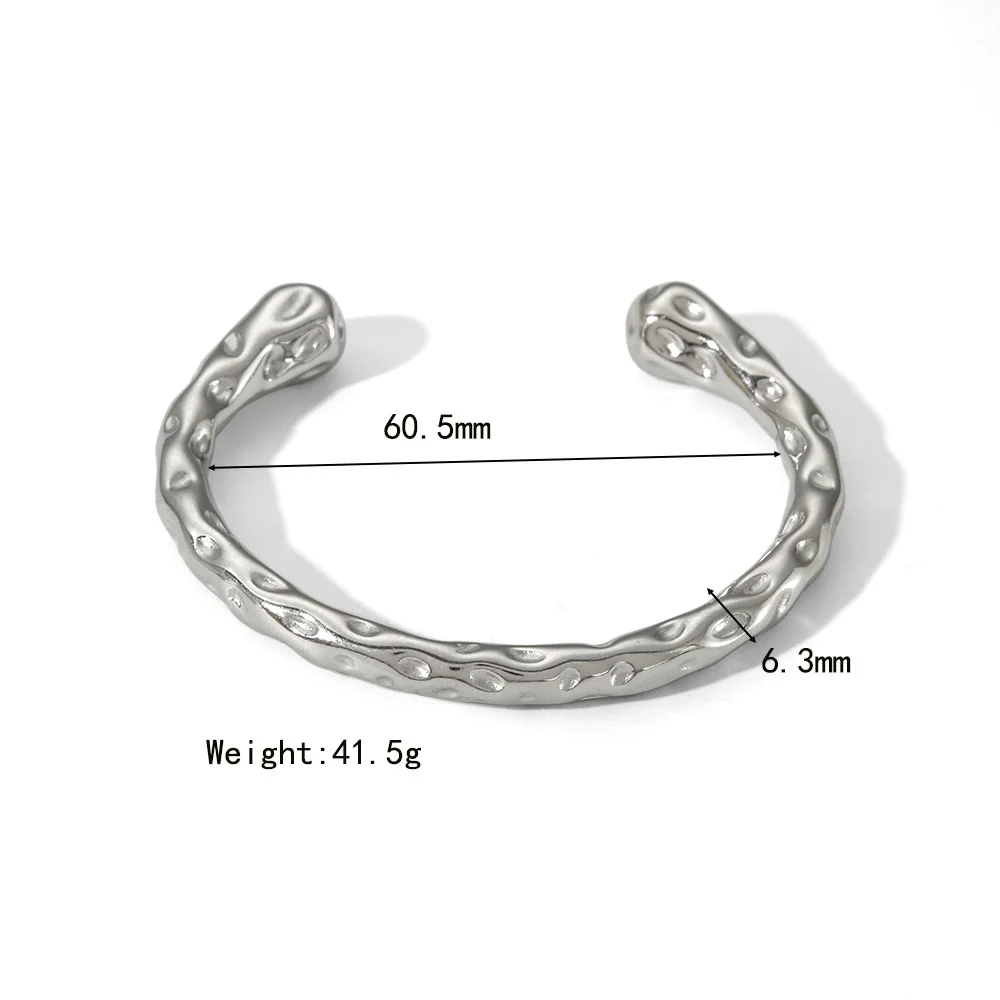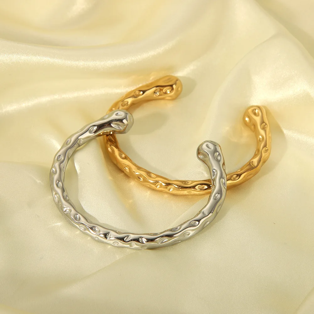 MW Women's Minimalist Fashion 18K Gold-Plated Stainless Steel Irregular Hammered Texture Bracelet