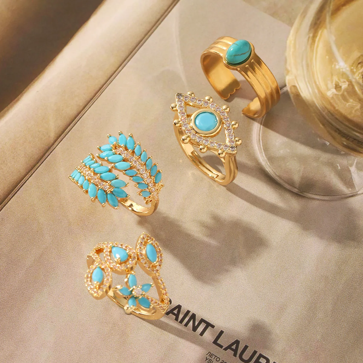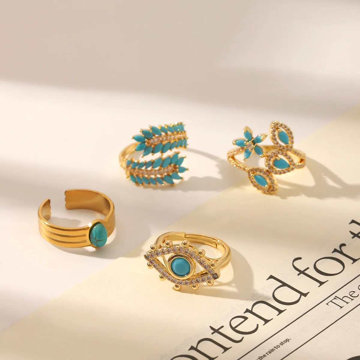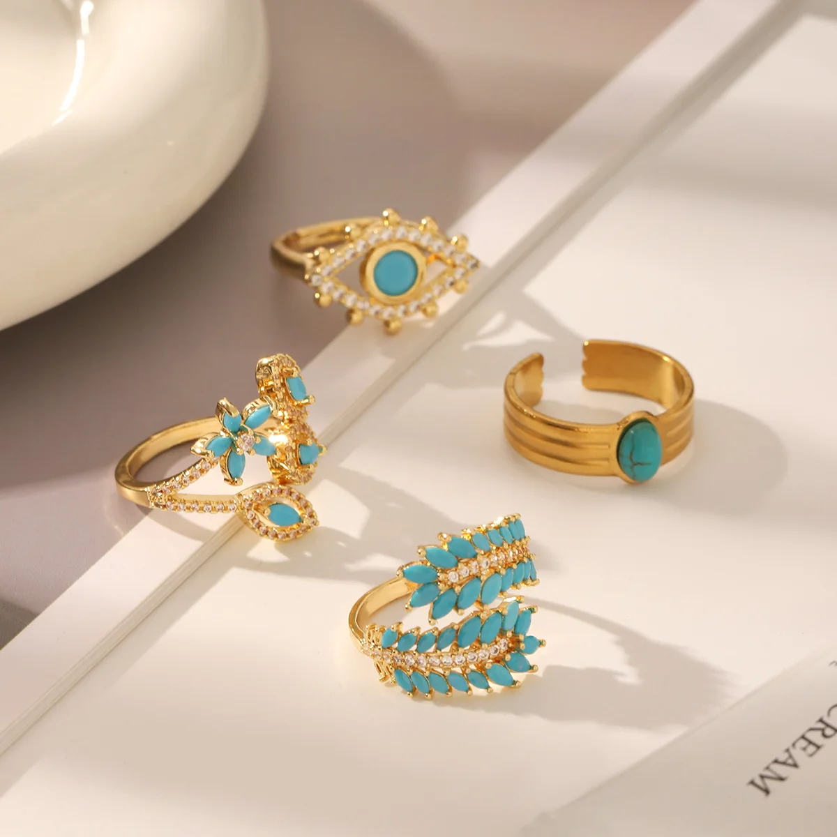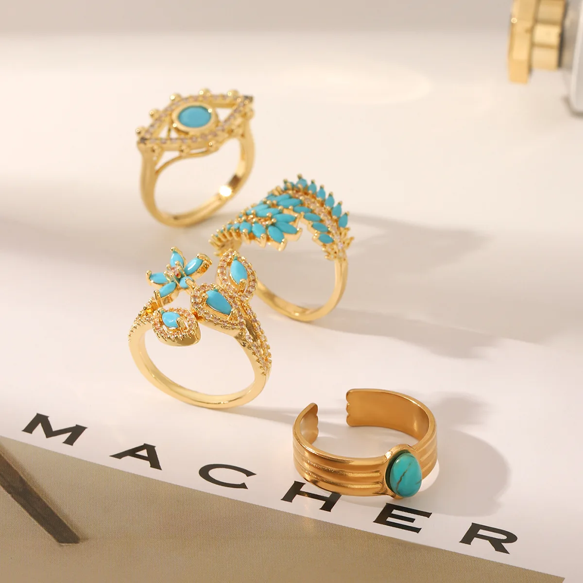 MW Simple INS Style Natural Stone Gemstone Hollow Electroplated Ring 18K Gold Electroplated Stainless Steel Adjustable Rings