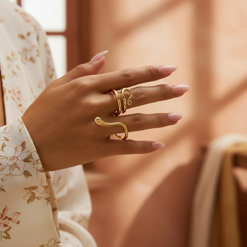 MW Women's 18K Gold-Plated Vintage Snake-Shaped Lines Minimalist Adjustable Rings Stainless Steel Simple Stainless Steel Ring
