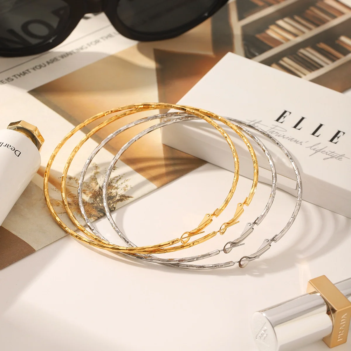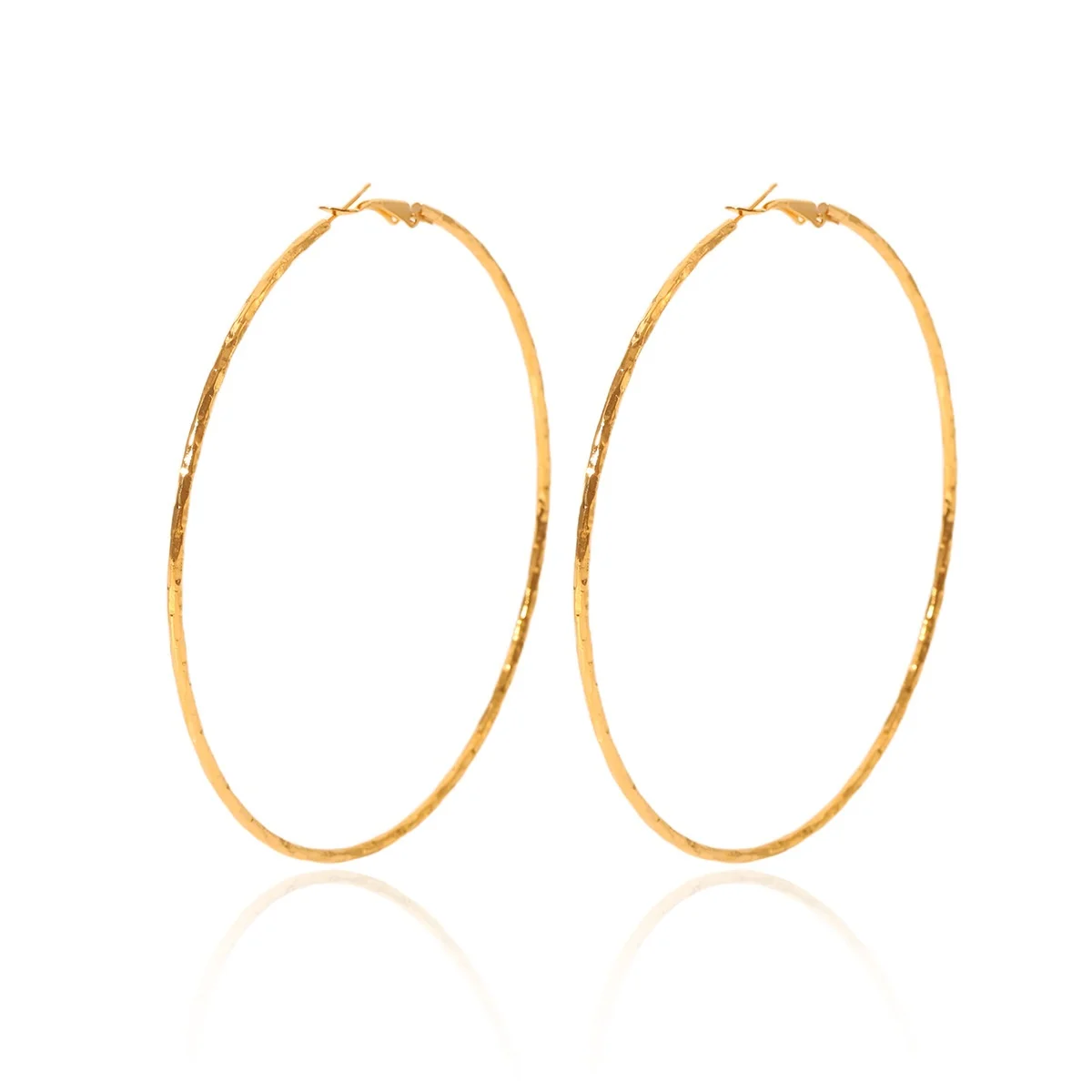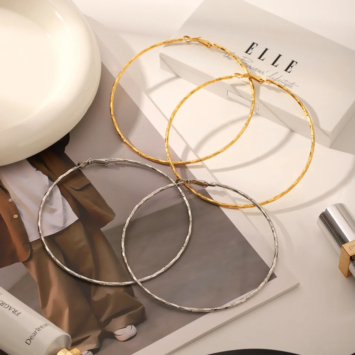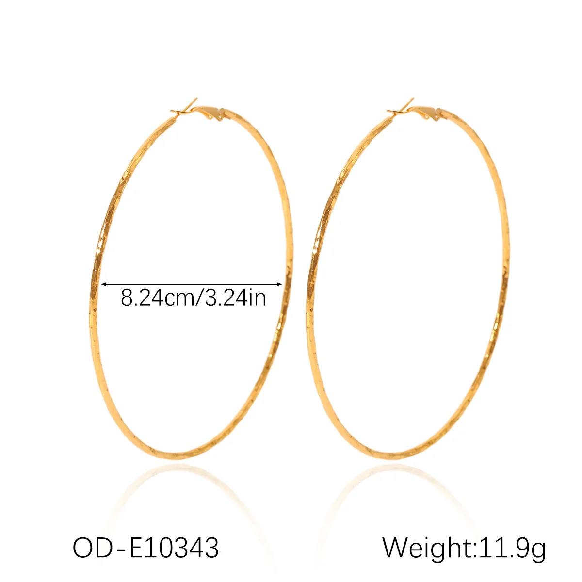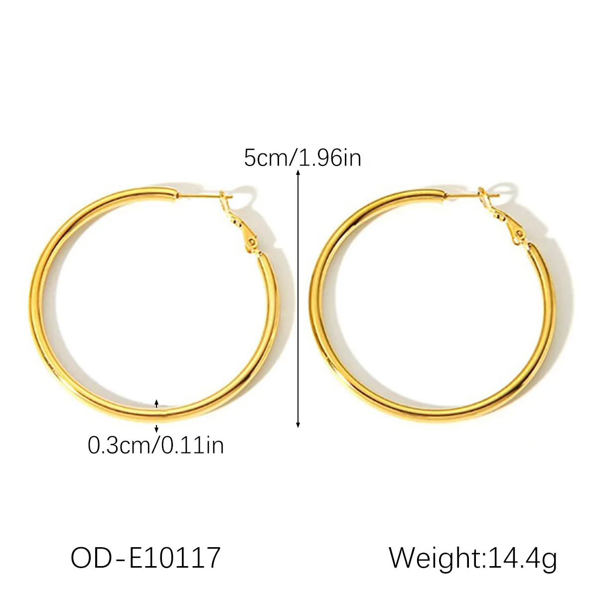 MW Fashion Hypoallergenic Tarnish Free Waterproof Stainless Steel Large 18k Gold Plated Flat Big Hoops Earrings Stainless Steel