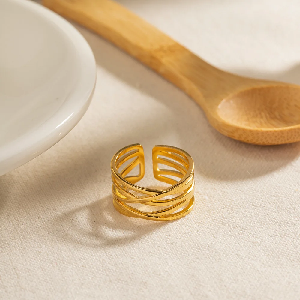 MW Women's Adjustable Minimalist Multi-Layer Line Fashion Jewelry 18K Gold-Plated Stainless Steel Waterproof Ring