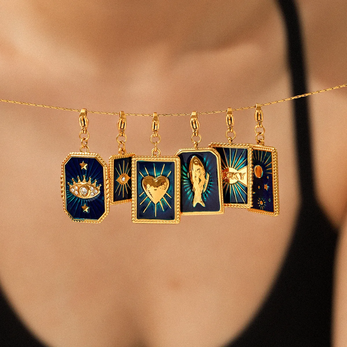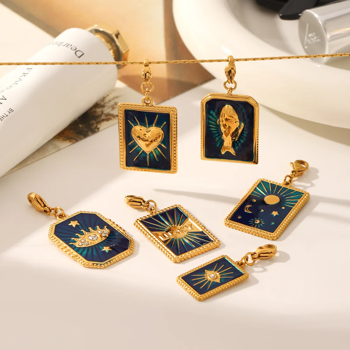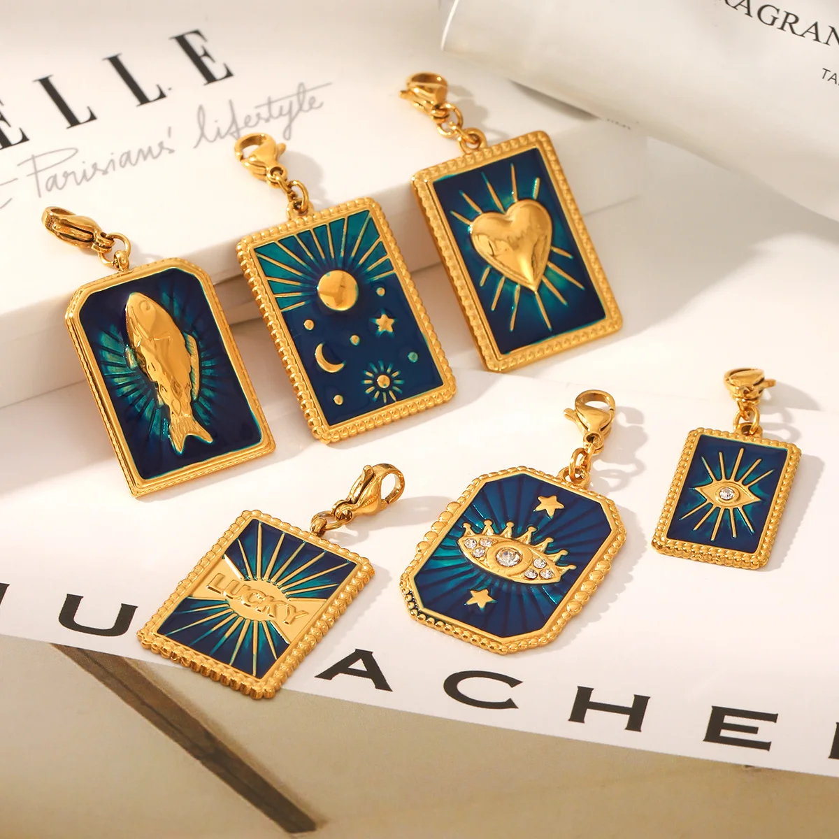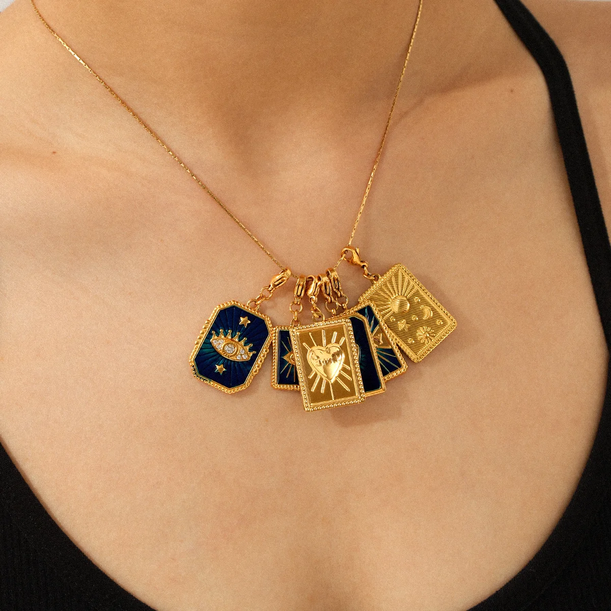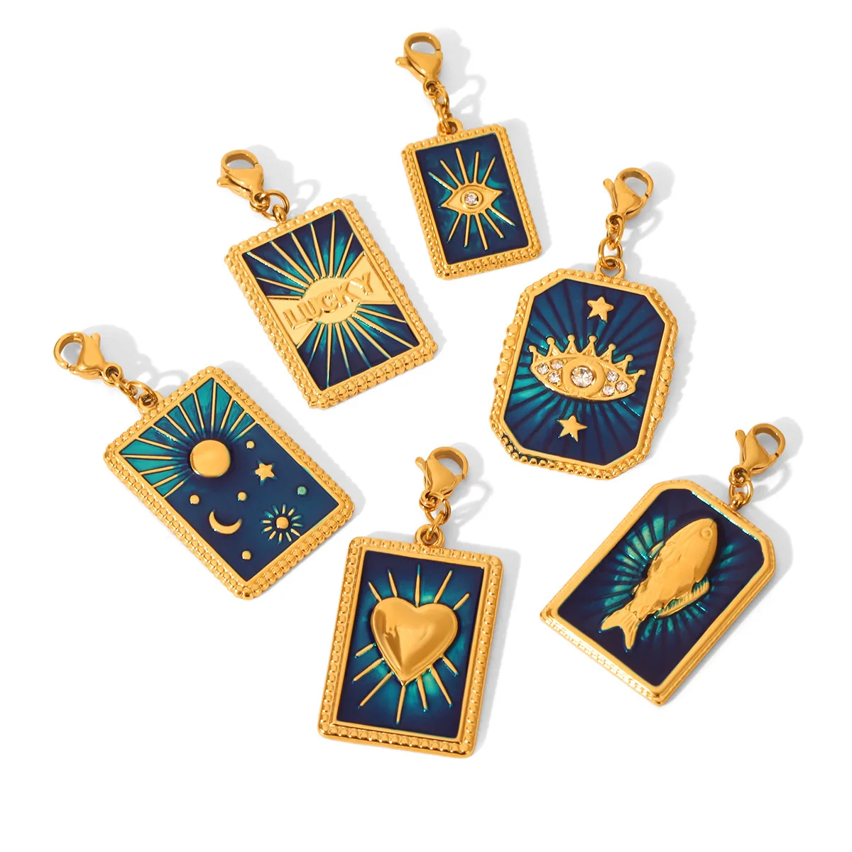 MW Wholesale Children's Stainless Steel Zircon 18K Gold Plated DIY Accessories Oil-Drip Stars Moon Heart Devil's Eye Charms