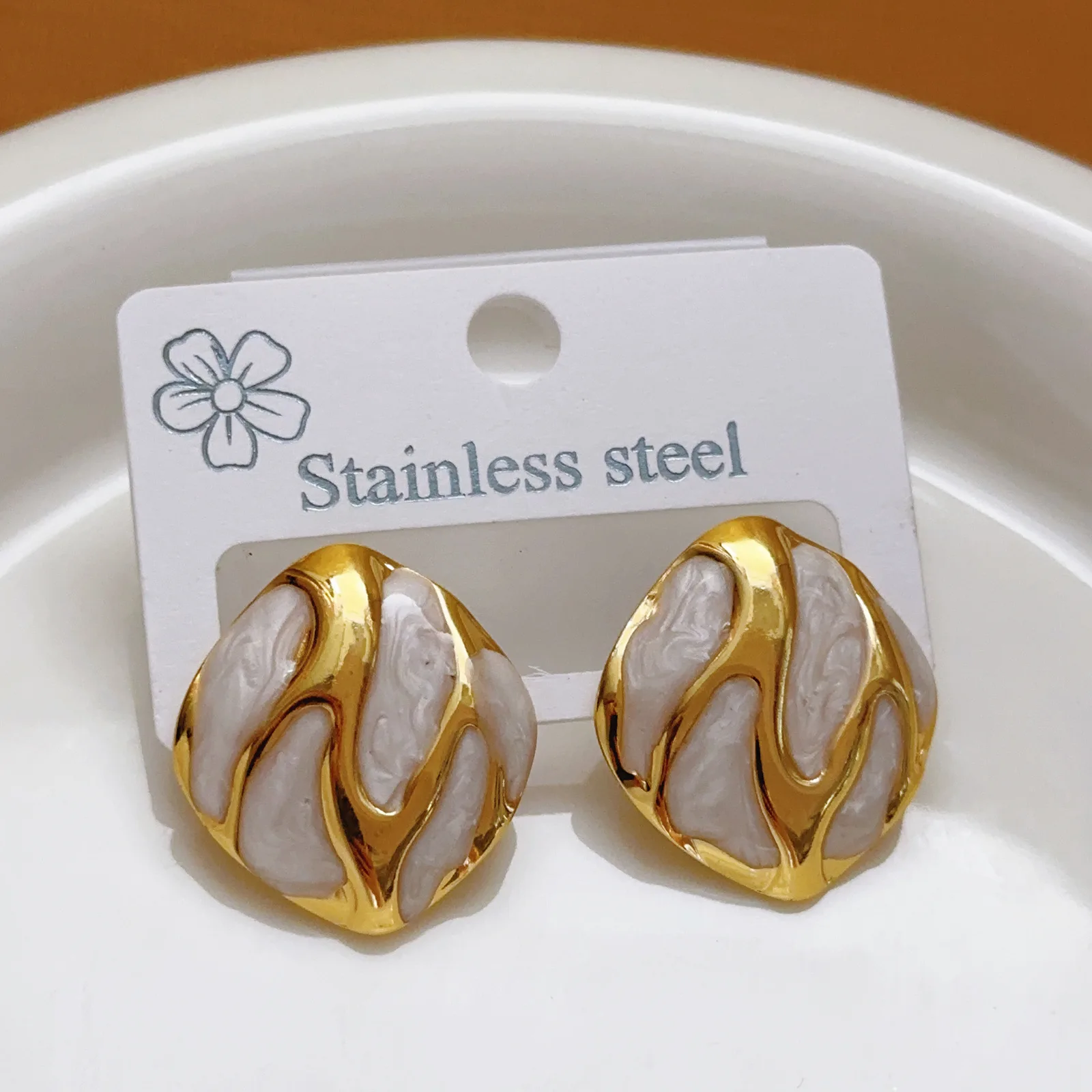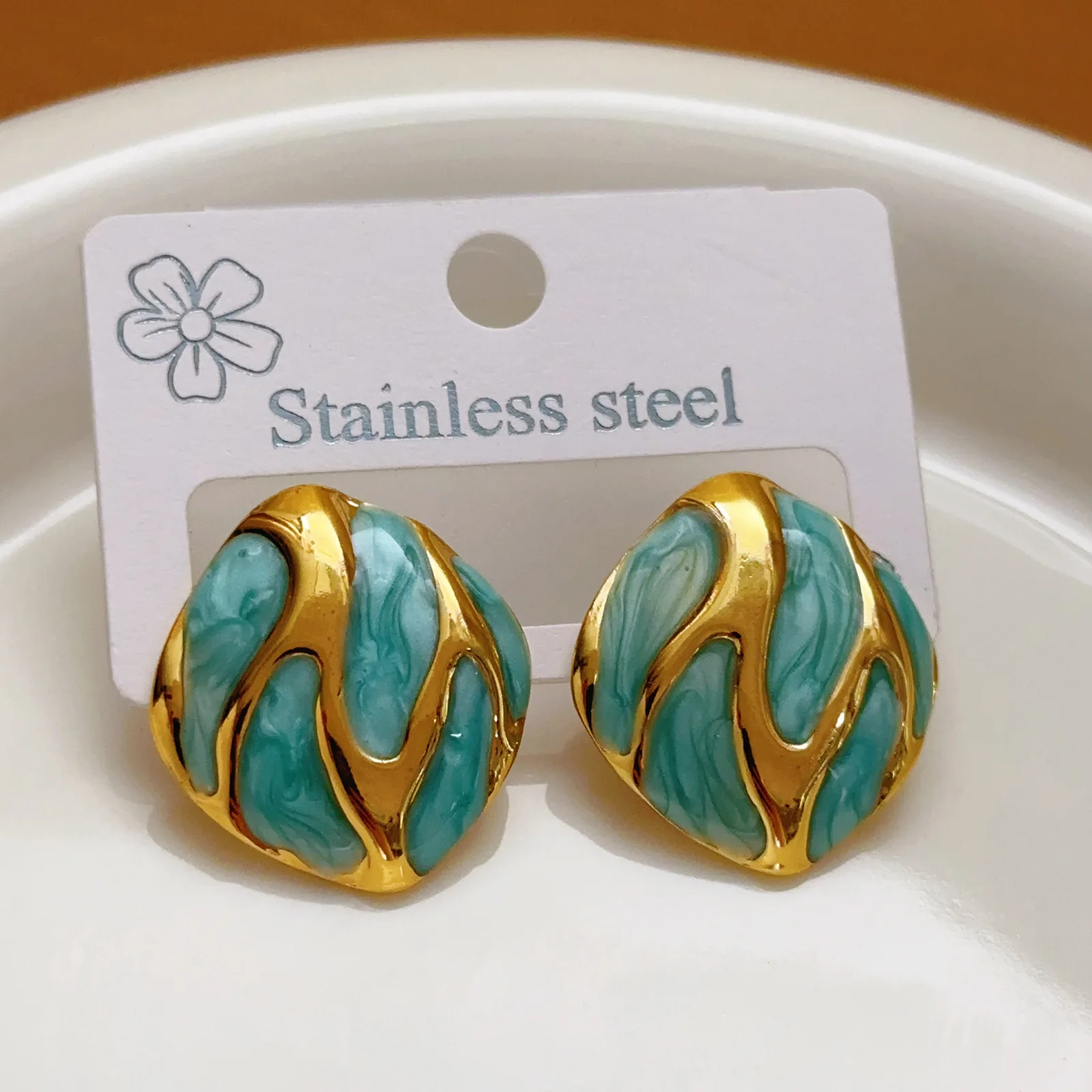 MW Fashionable Irregular 18K Gold Plated Stainless Steel Oval Oil-drop Earrings Colorful Geometric Earrings Jewelry for Women