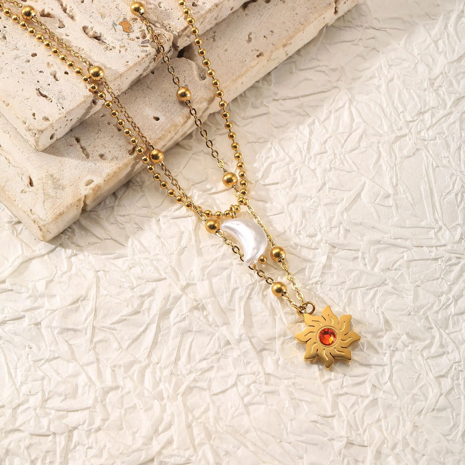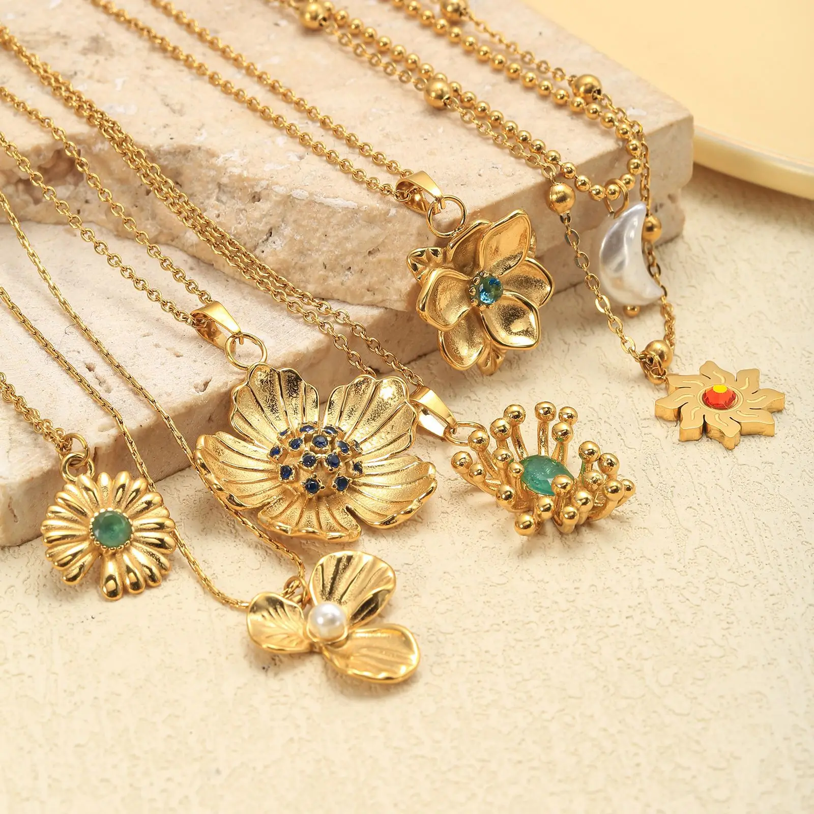 MW Flower Retro Sunflower Zircon Light Luxury Stainless Steel Real Gold Plating Women's Palace Style Daisy Pendant