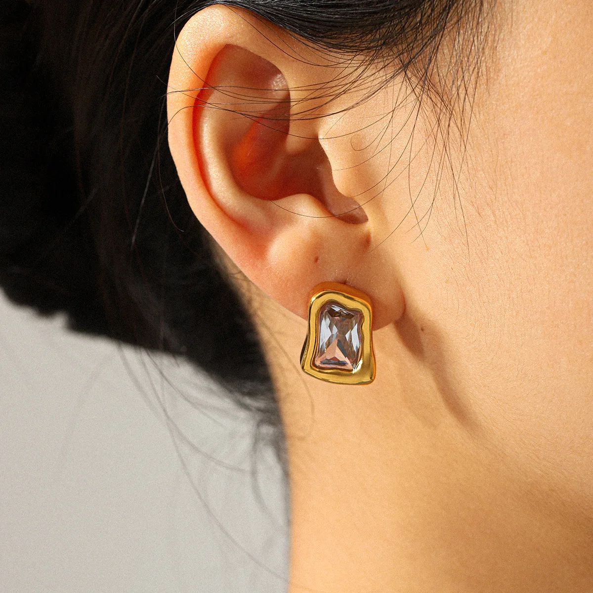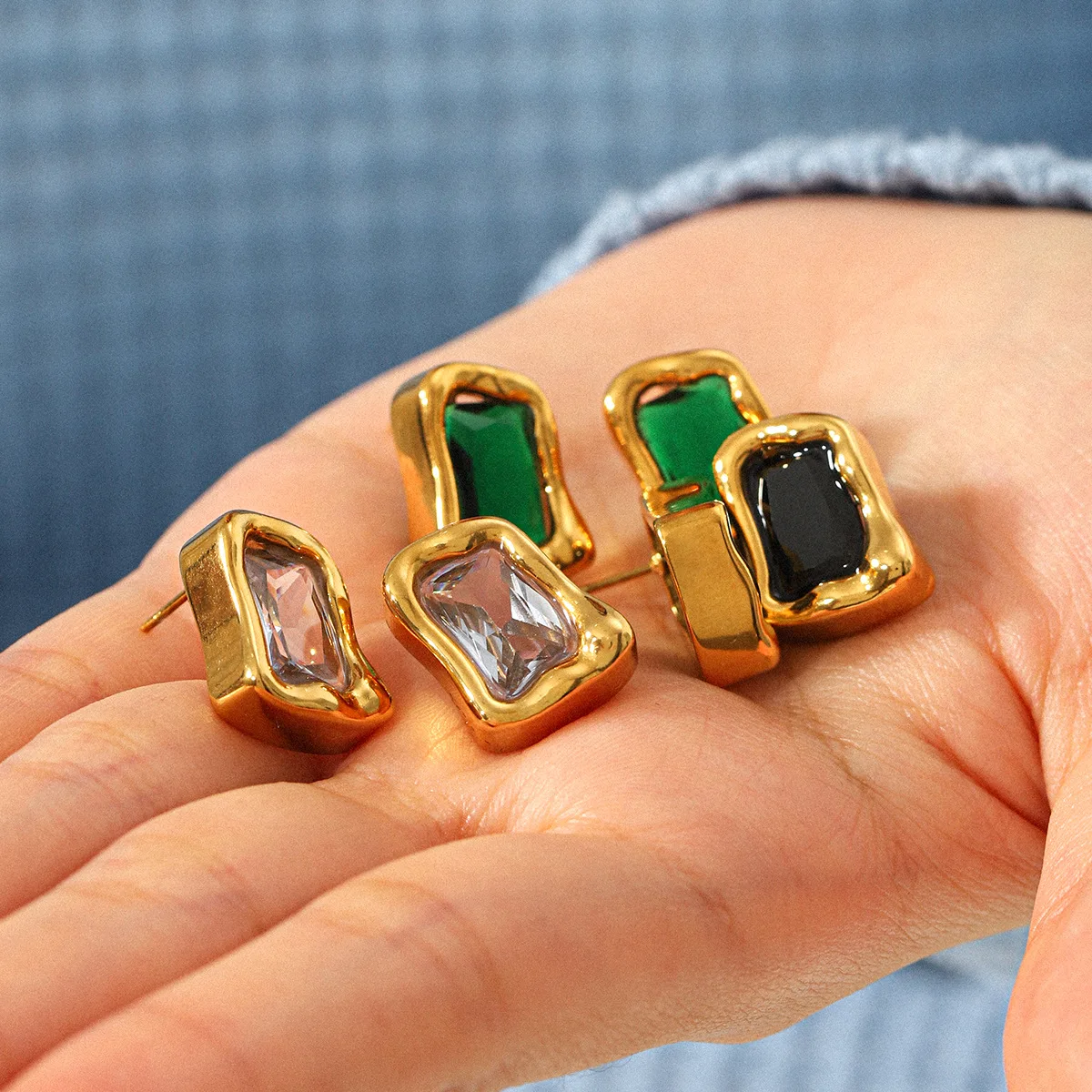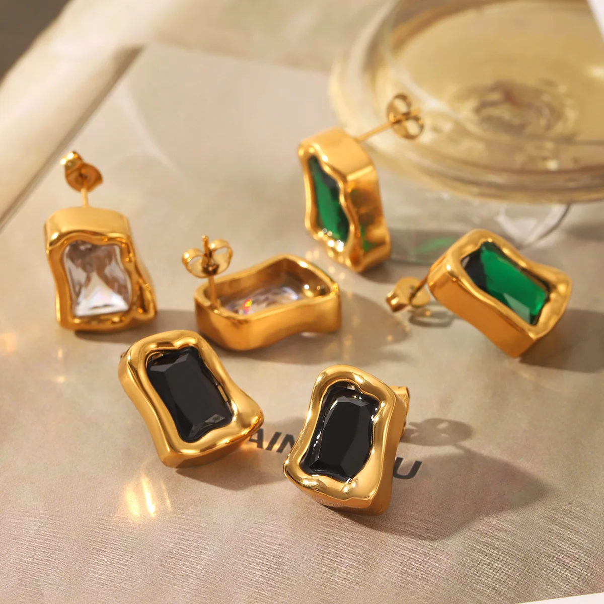 MW Classic Zirconia Earring 18K Gold Plated Stainless Steel Fashion Irregular Rectangle Black Green White Zirconia Earrings
