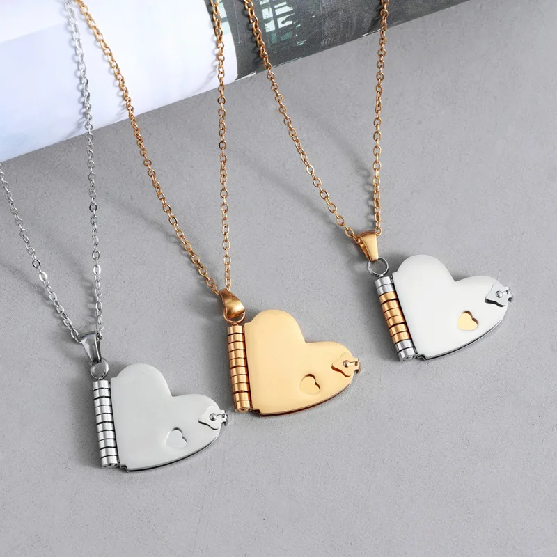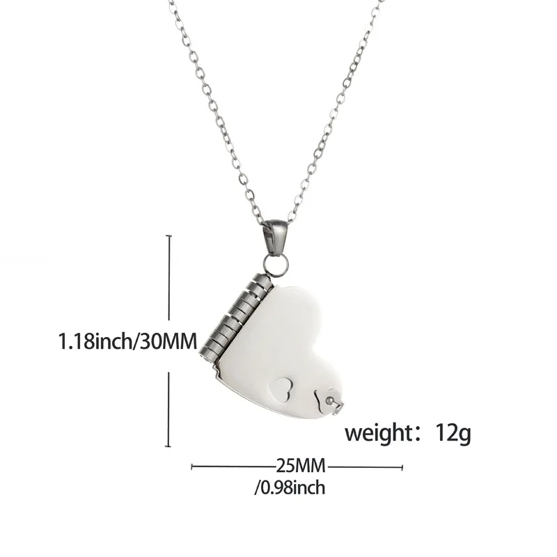 MW Stainless Steel Heart-Shaped Love Book Pendant Necklace Unisex Sporty Bamboo Chain Light Luxury