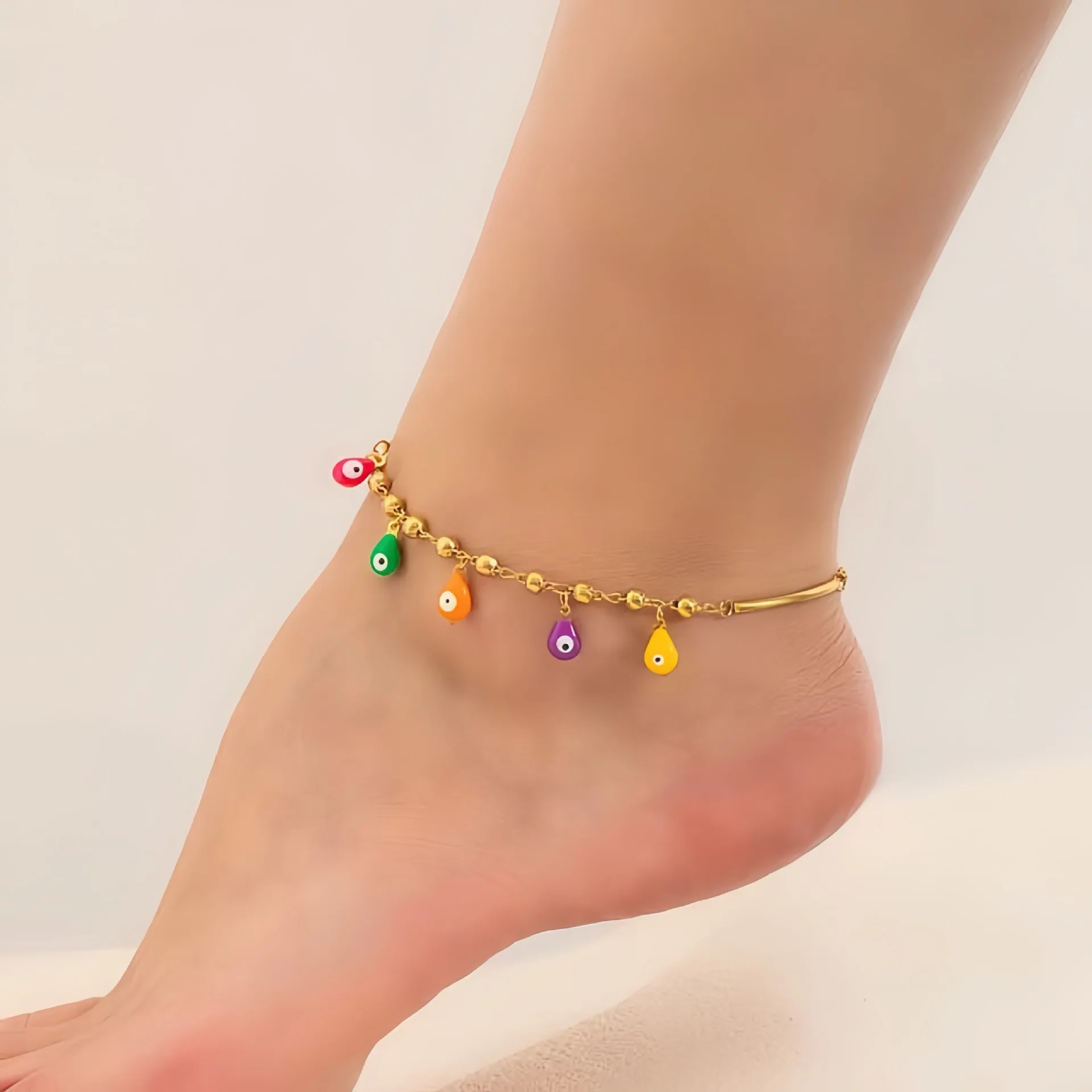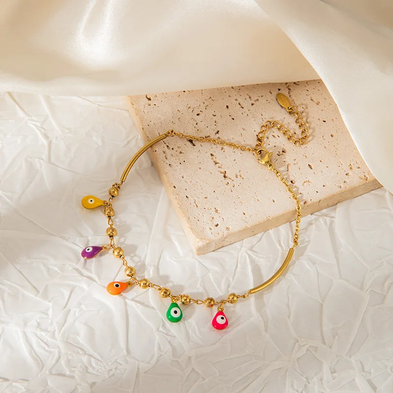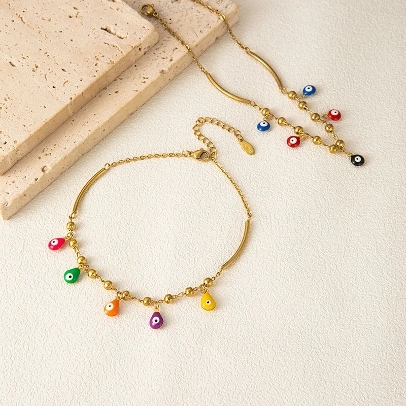 MW European American Fashion Temperament Stainless Steel Multi-color Anklet Women's Marine High-end Cross-border Sexy Foot