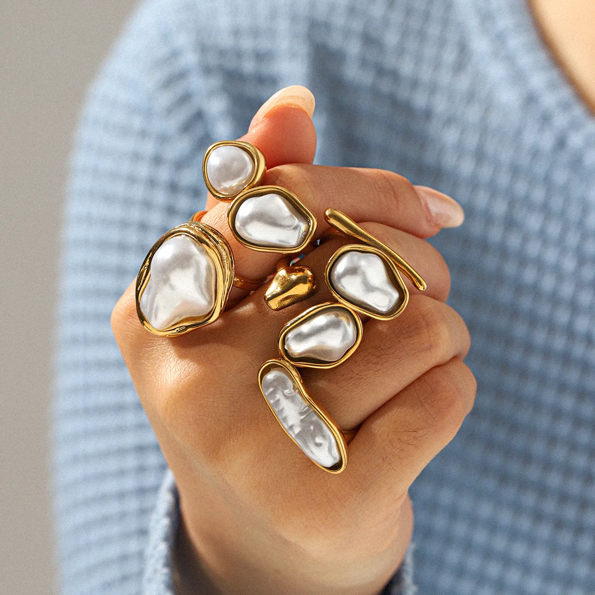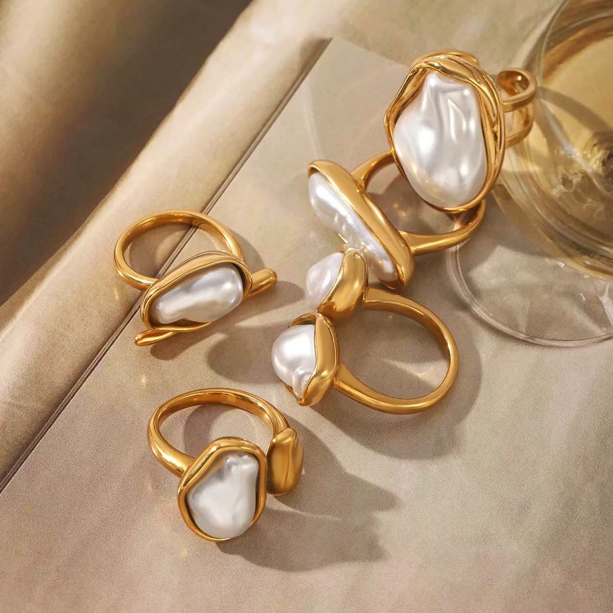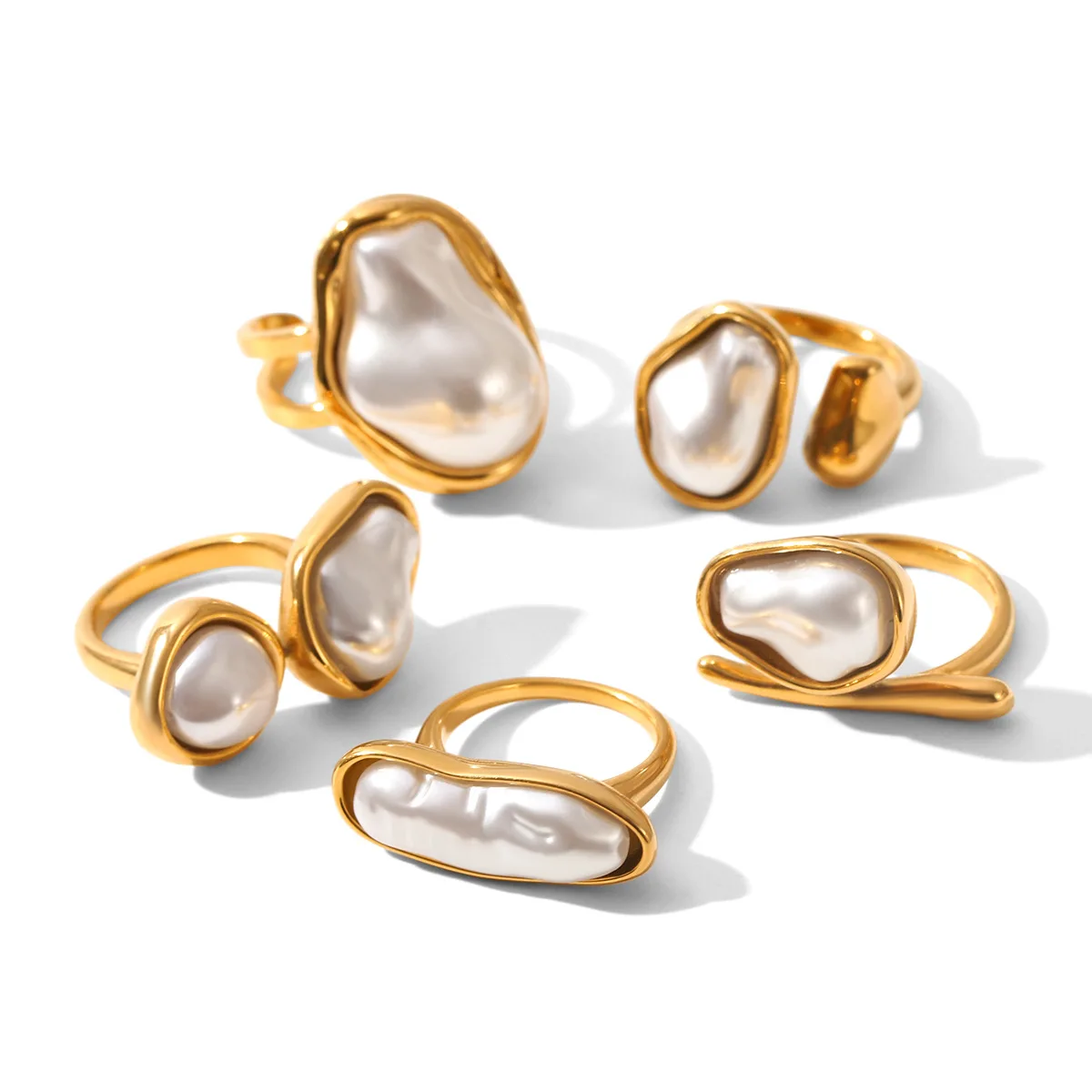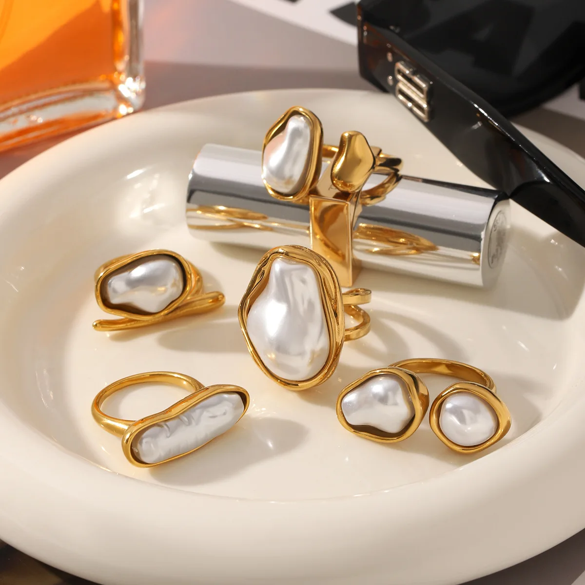 MW New Arrival Baroque Simulated Pearls Open Ring 18K Gold Plated Stainless Steel Adjustable Ring for Women Jewelry