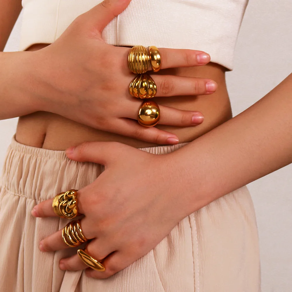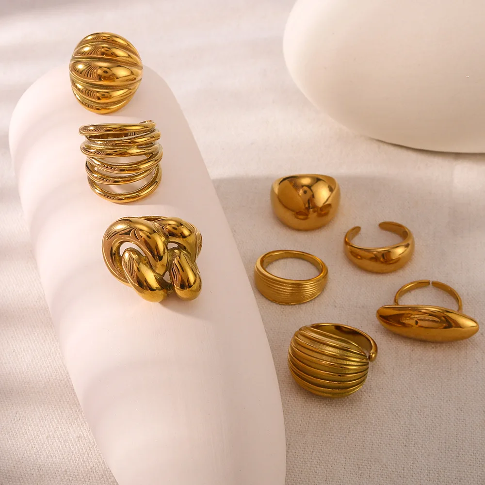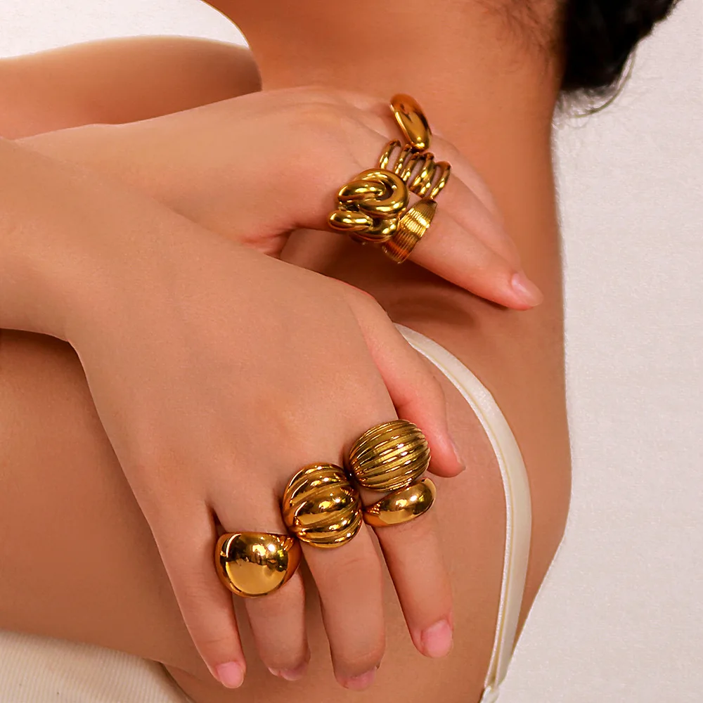 MW New Hot Sales 18K Gold Chunky Baguette Open Finger Knuckle Ring Ball Fried Dough Twists Winding Irregular Style Fashion Ring