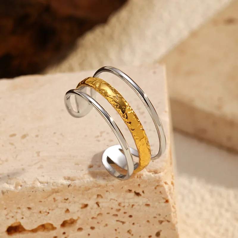 MW Hot Selling Certified Stainless Steel Opening Ring Glossy Waterproof Gold With Silver Adjustable Rings for Women