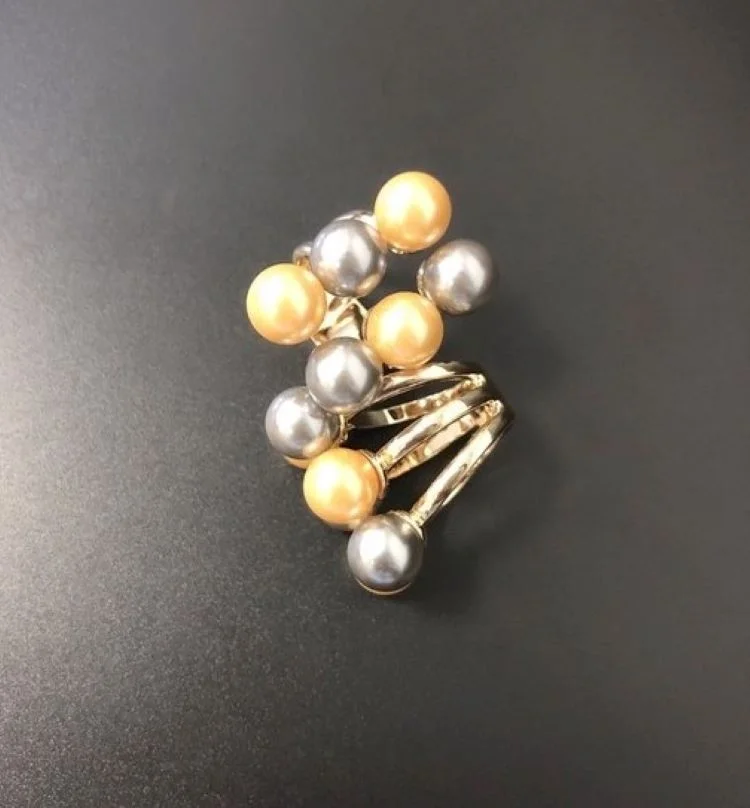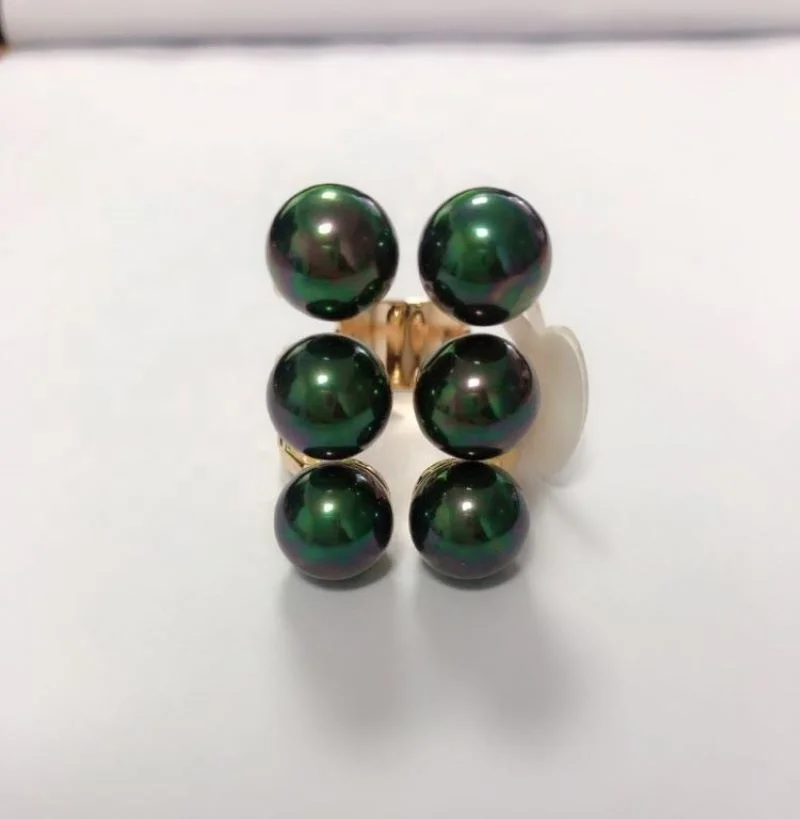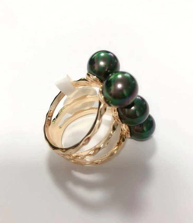 Customized 18k Gold Plated Samoan Ring , Tribal Hawaiian Black Pearl Ring Jewelry, Bohemian 6 Pearls Ring