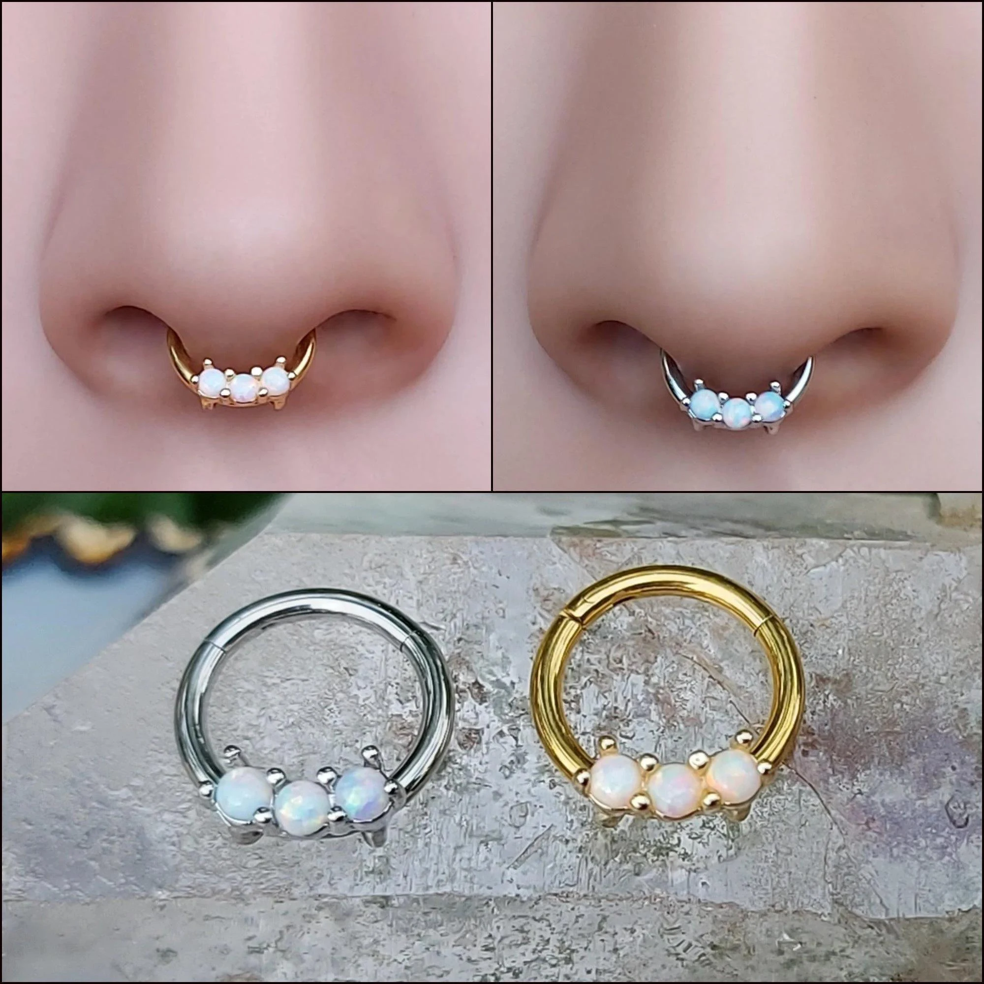 Wholesale Metal G23 Titanium Body Ring Hinged Septum Piercing Nose Ring Steel Opal Septum for Women