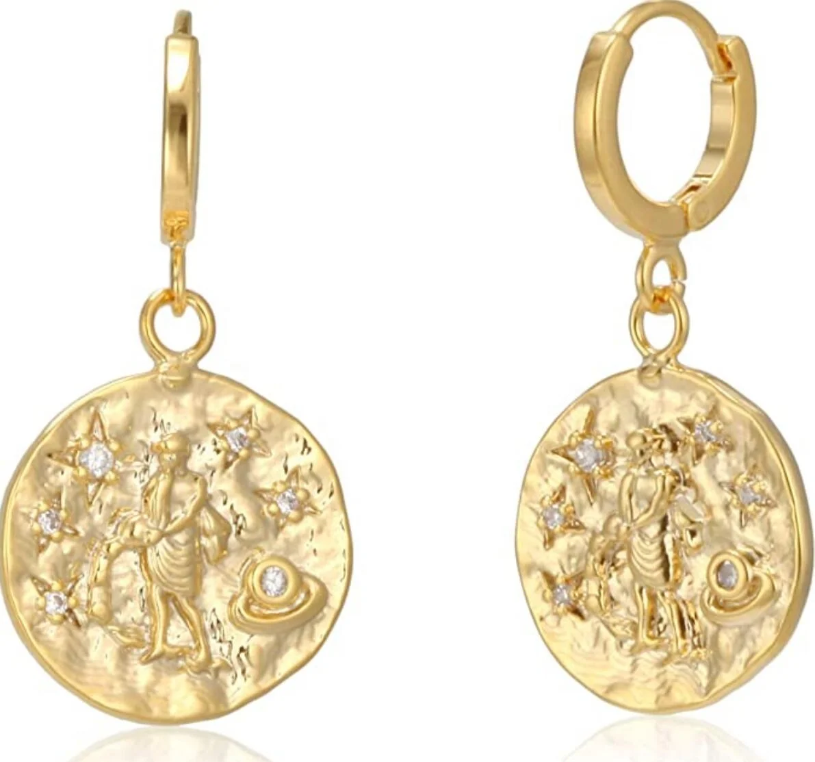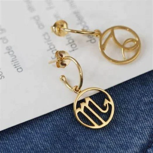 Minimalist Gold Plated Earrings Hoop Women 925 Sterling Silver Custom Zodiac Jewelry Hoop Earrings