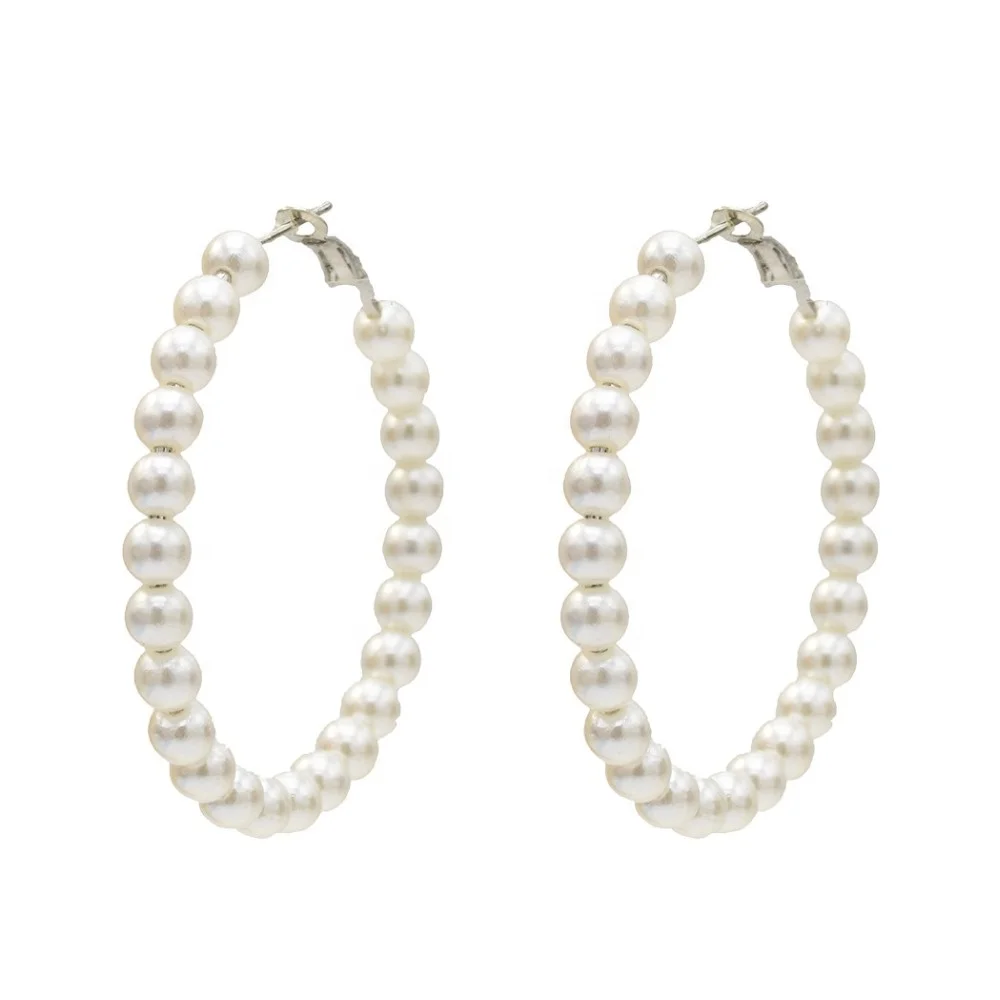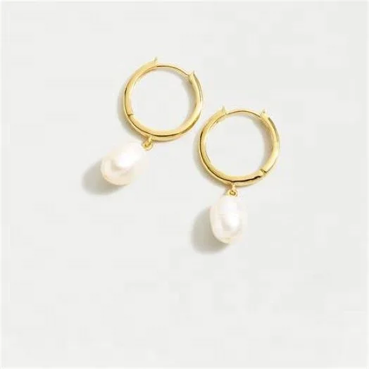 Full Custom 925 Sterling Silver Hoop Earrings with Pearl Minimalist Women Pearl Hoop Earrings