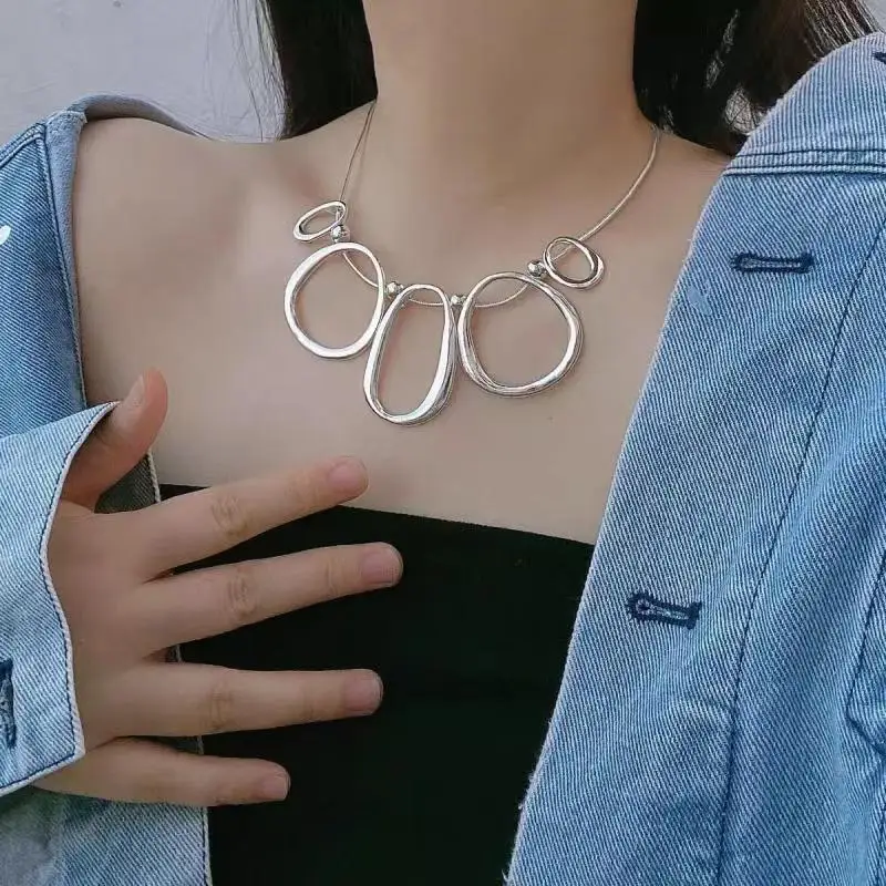 Customized Bohemian Style Snake Bone Chain Minimalist Geometric Circle Necklace Fashion Jewelry for Woman