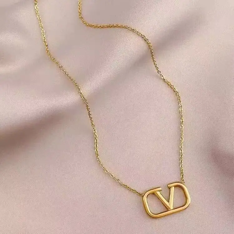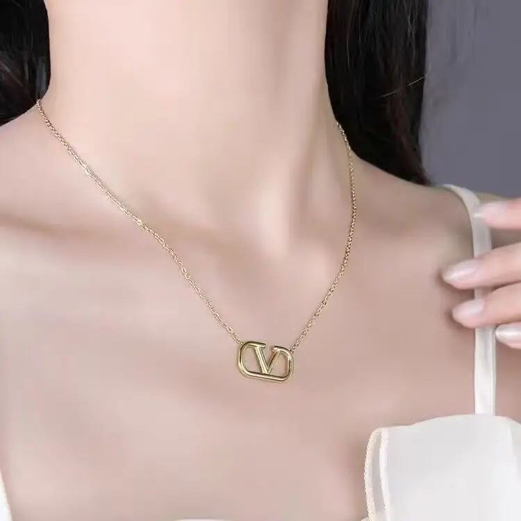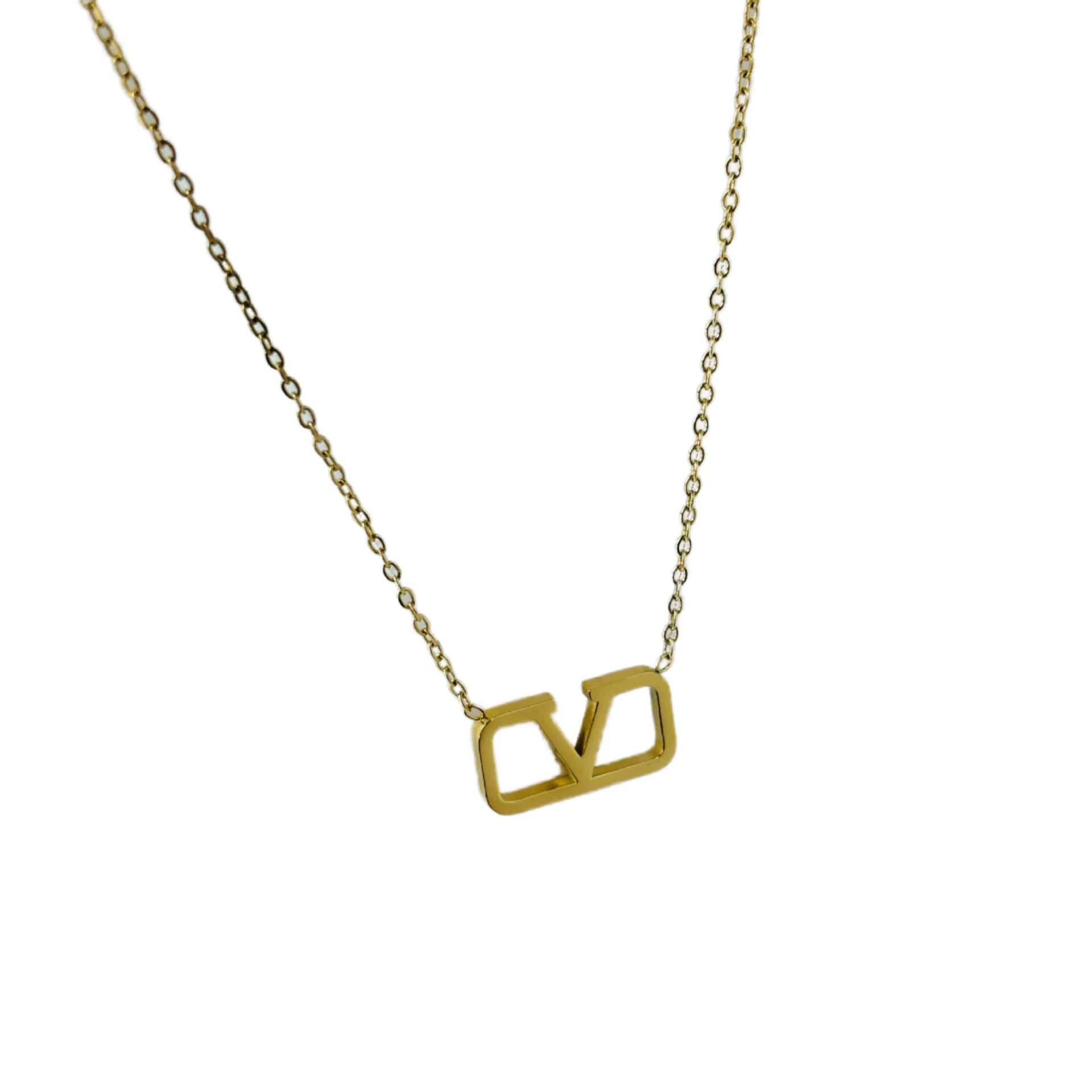 Wholesale Stainless Steel Necklace Gold PVD Plated Letter Pendant Waterproof Collarbone Chain Classic Geometric Heart Pattern