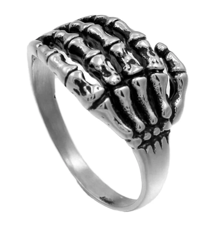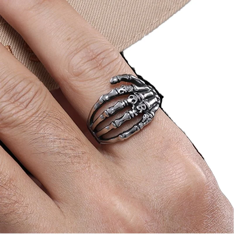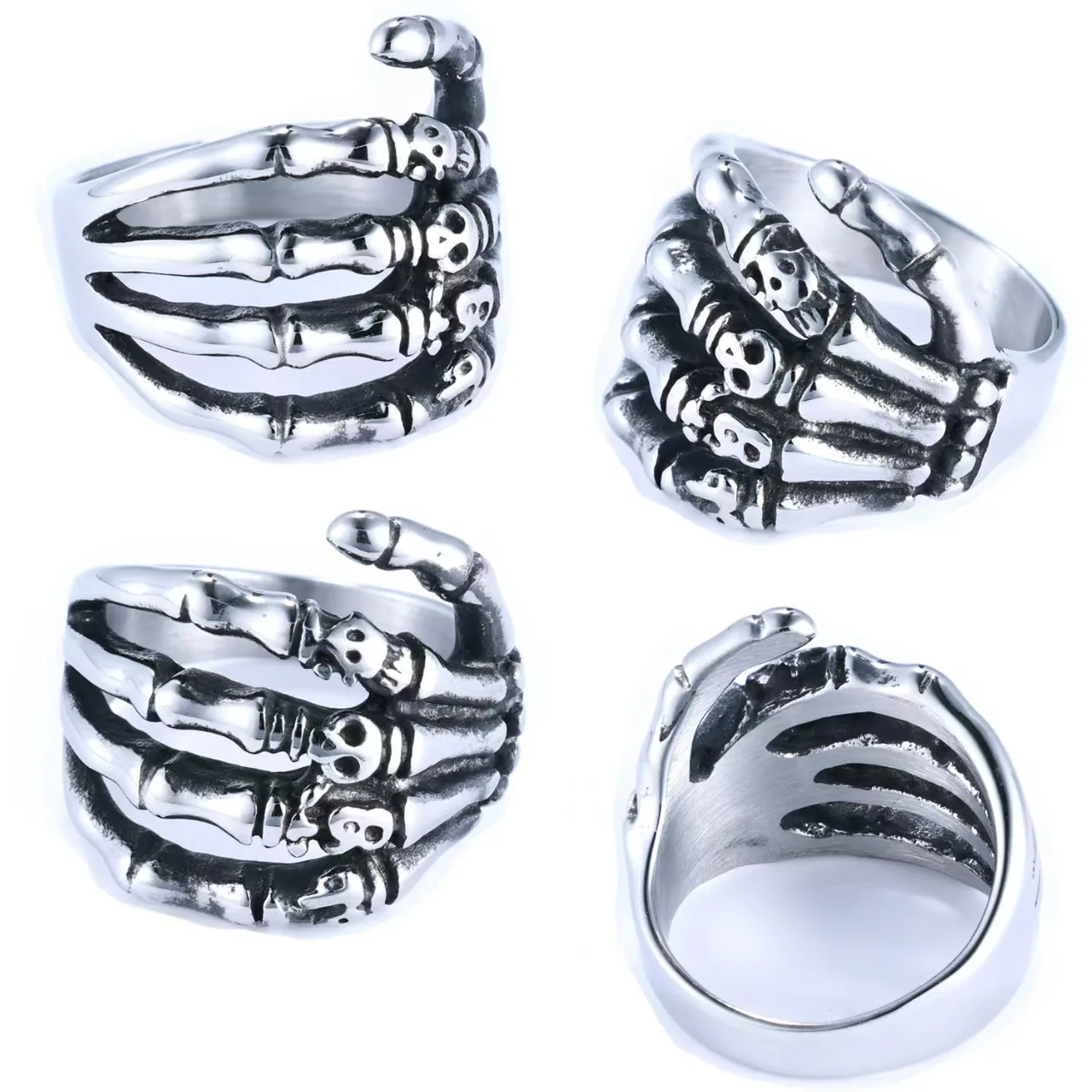 Customized Stainless Steel Hand Ring - Bold and Unique for Gift. a Skull Design on the Palm.Size 11 for the Ring Finger.