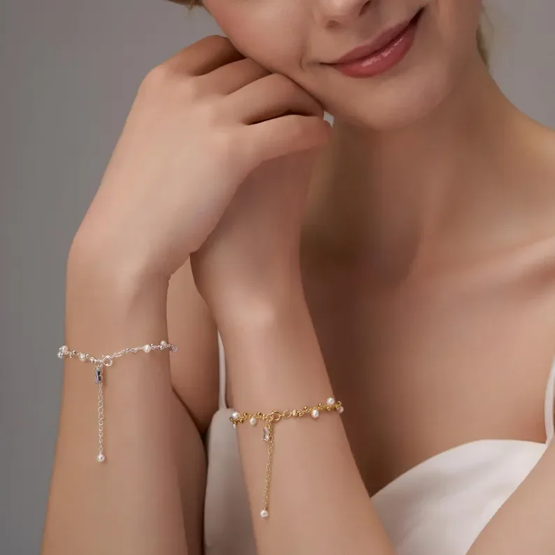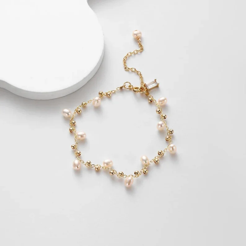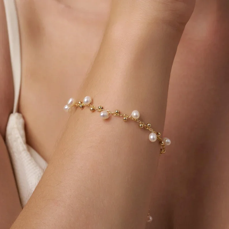 Custom Jewelry Simple Design Waterproof Stainless Steel Gold Plating Bracelets Women Real Pearl Bead Bracelet Pearl Jewelry